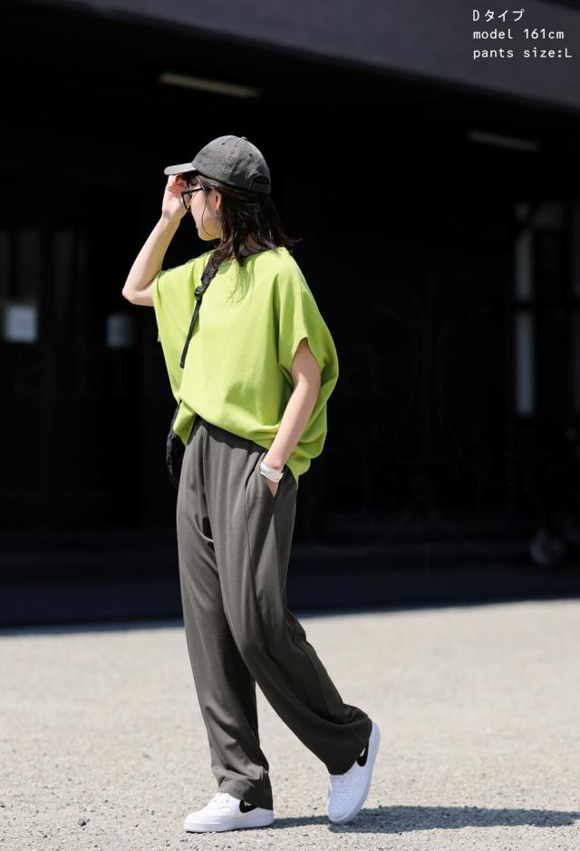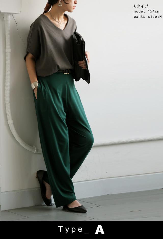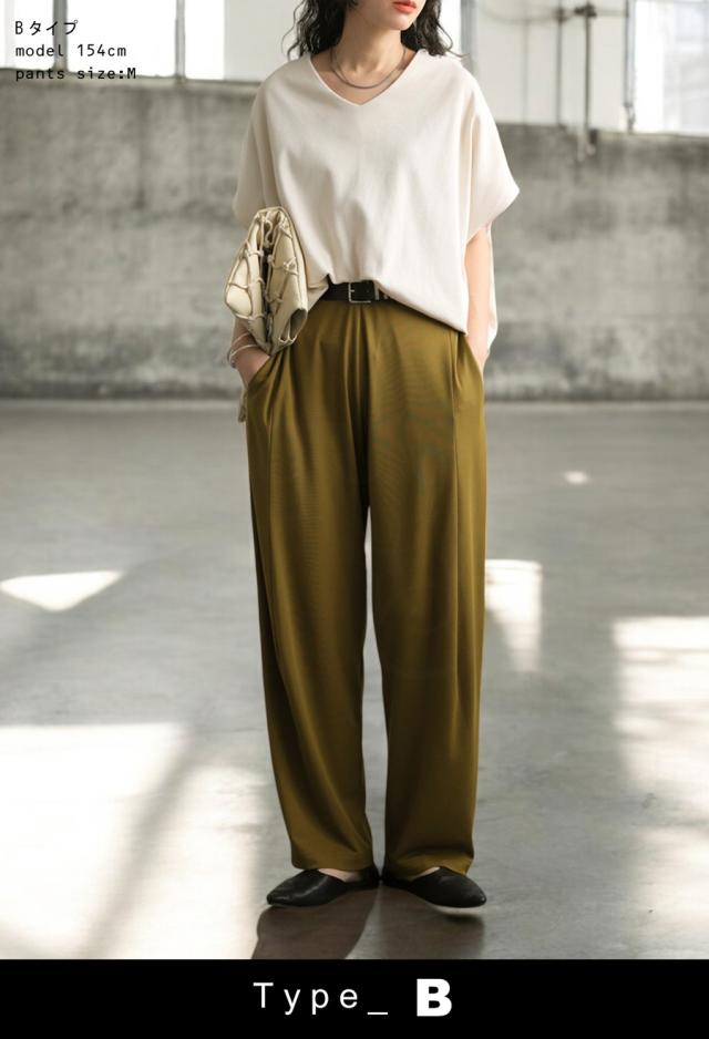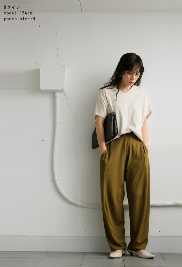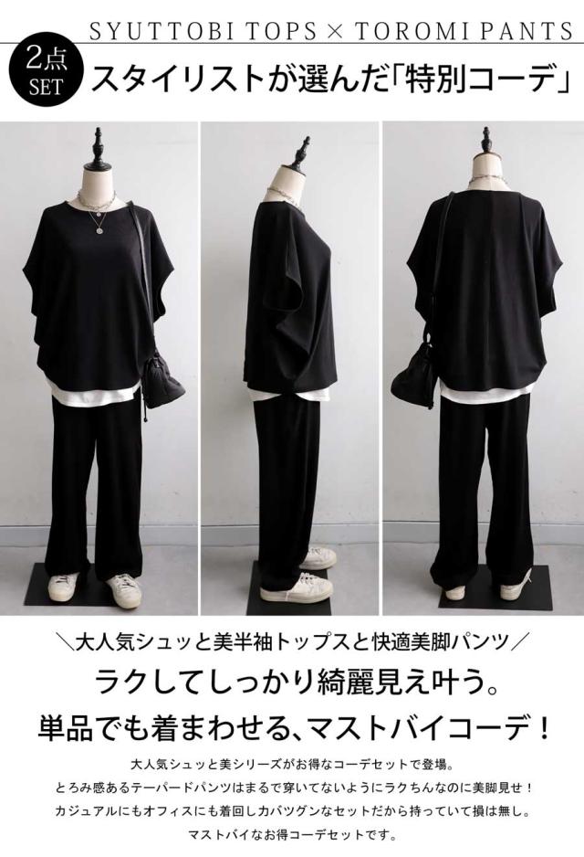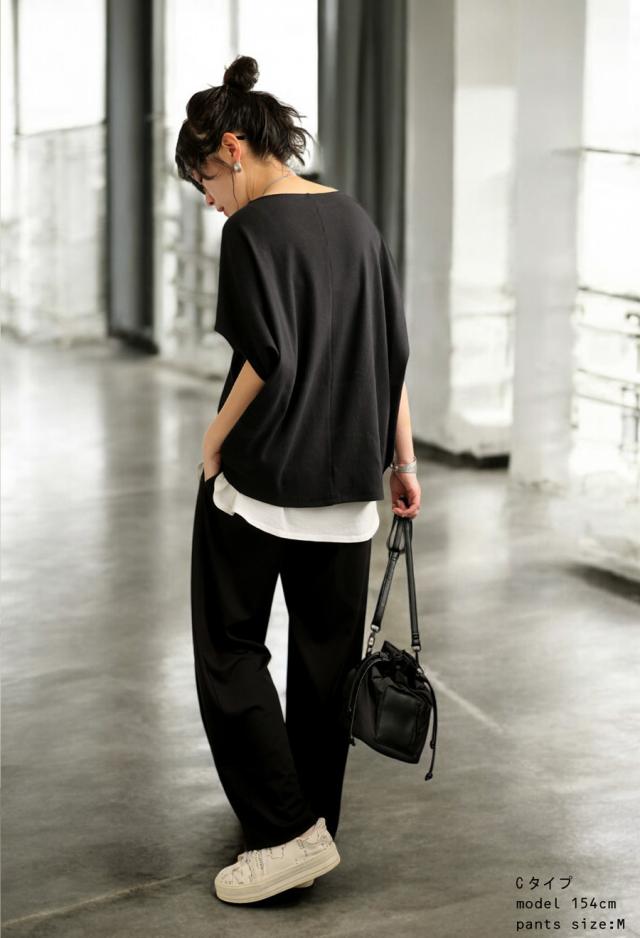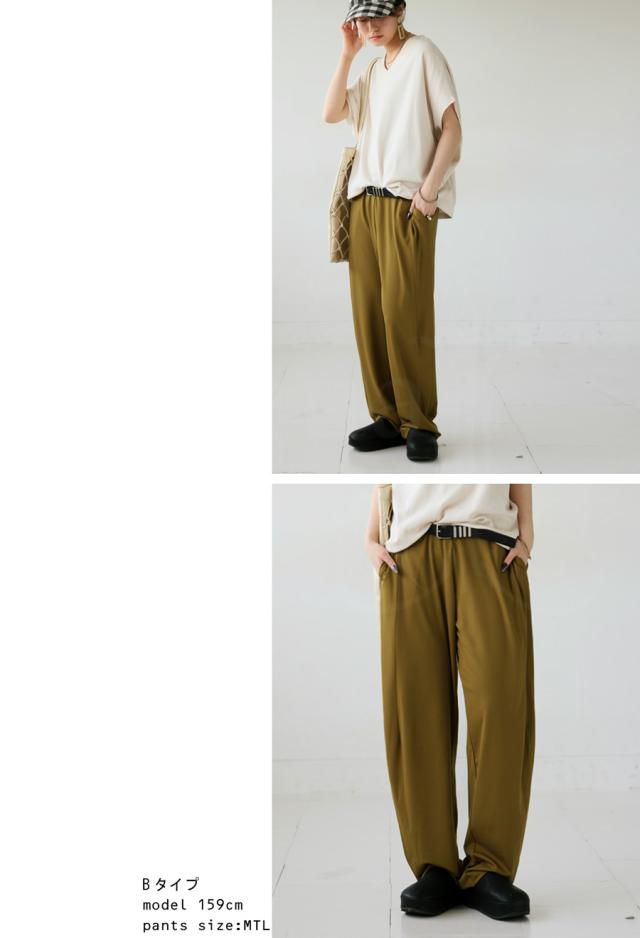 code-00041 シュッと美シリーズ トップス 半袖 ボートネック Vネック 無地 Tシャツ パンツ ボトムス ロング ストレート 落ち感 ポケット付き ラフ 内紐 ストレッチ プルオーバー