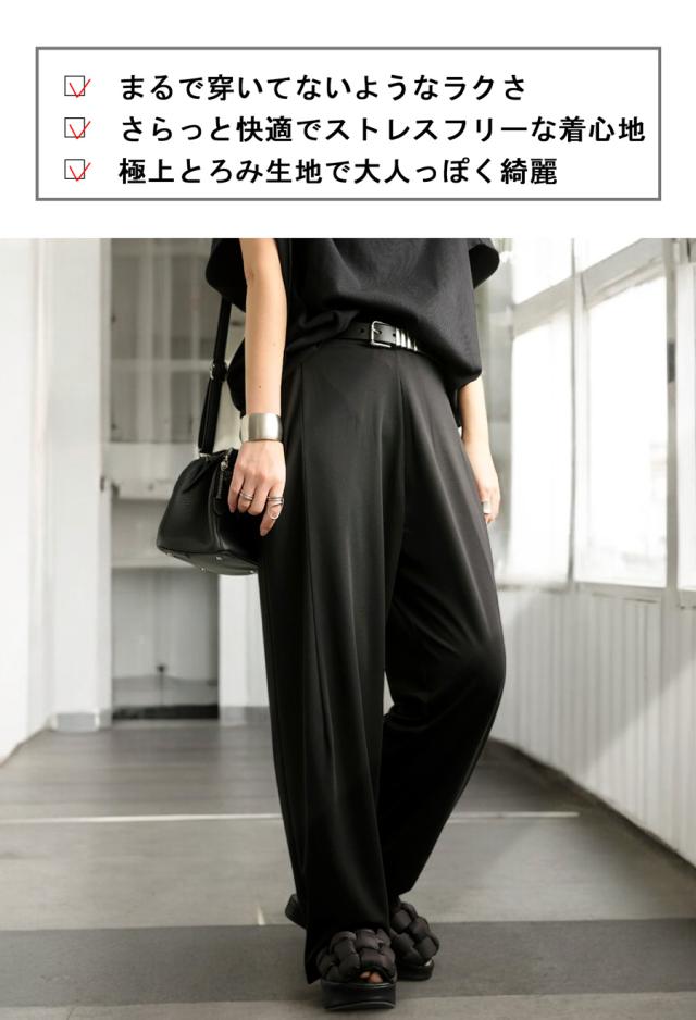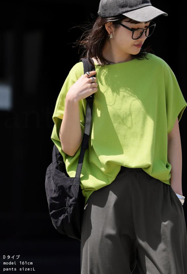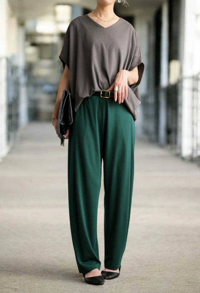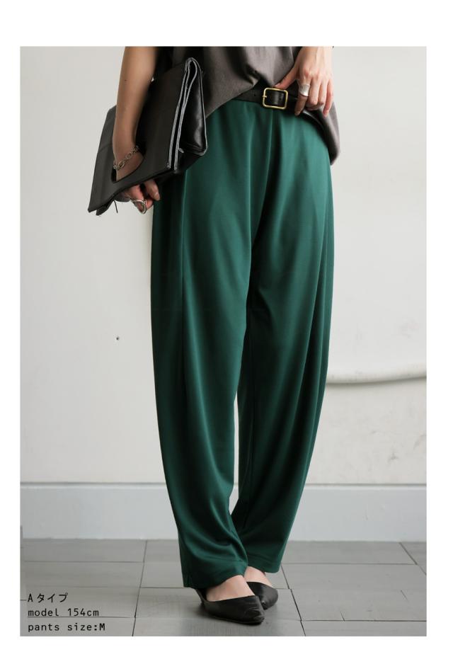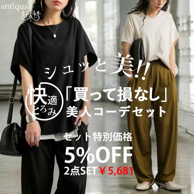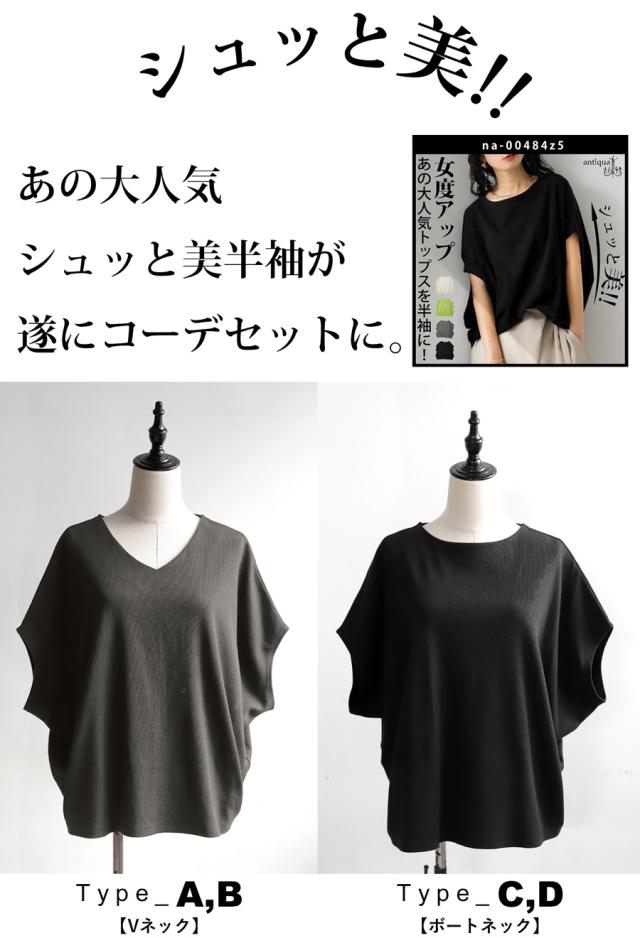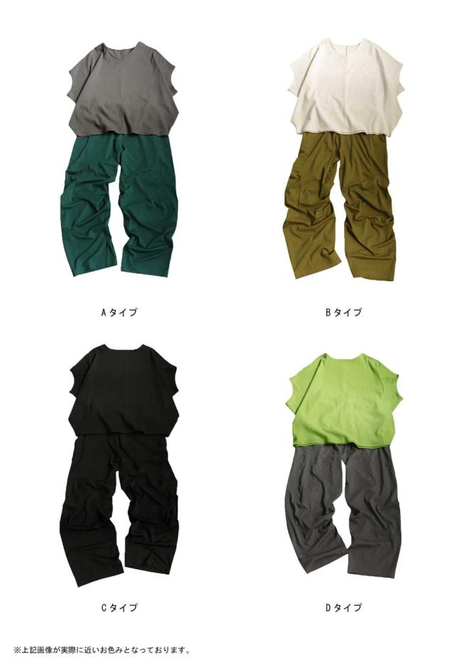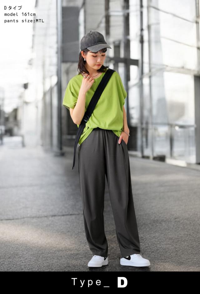 code-00041 シュッと美シリーズ トップス 半袖 ボートネック Vネック 無地 Tシャツ パンツ ボトムス ロング ストレート 落ち感 ポケット付き ラフ 内紐 ストレッチ プルオーバー