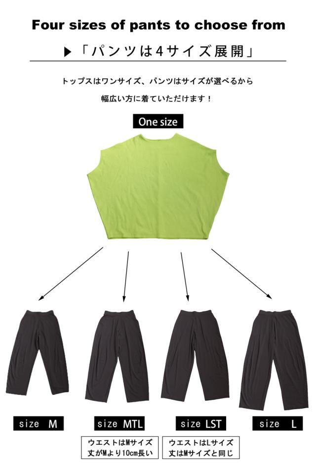 パンツはM/MTL/LST/Lの4サイズから選べるので、体型や好みに合わせてジャストな着こなしが可能です。