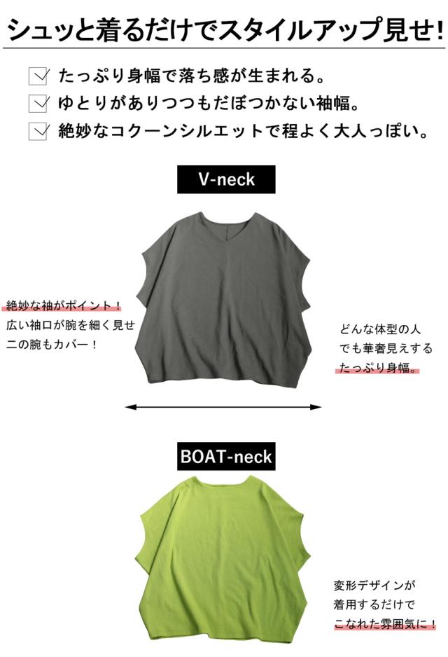 袖丈は二の腕を自然に隠す絶妙な長さで、身幅が広めのコクーンシルエットが体型カバーを叶えます。