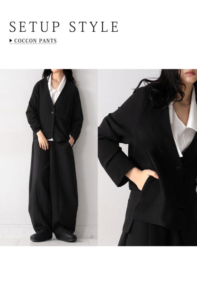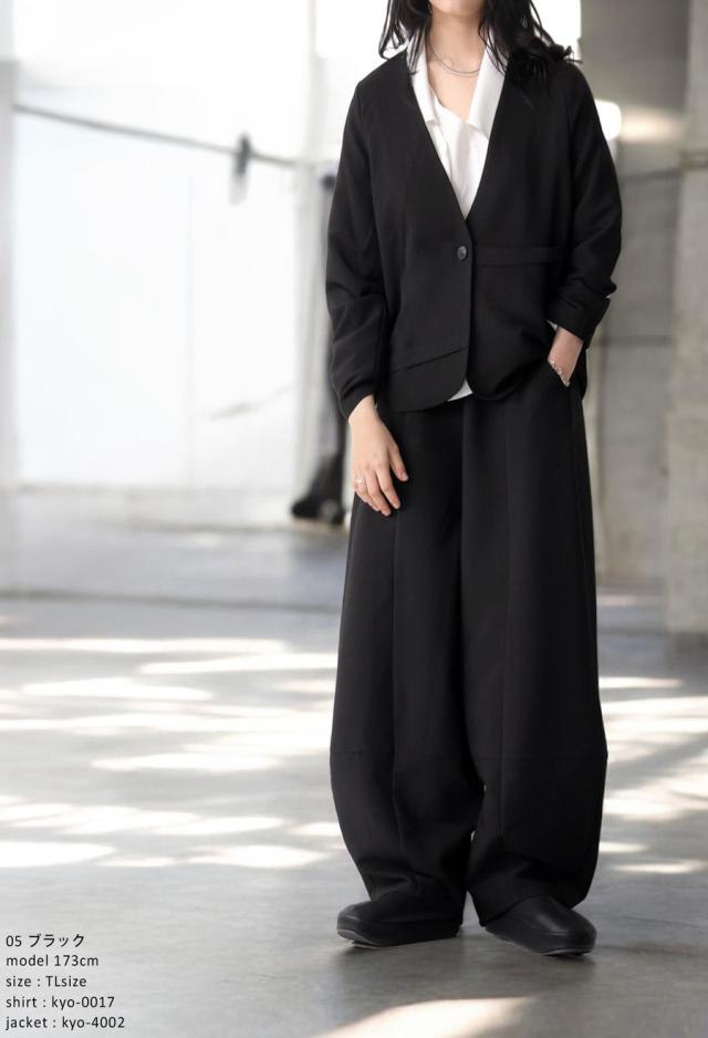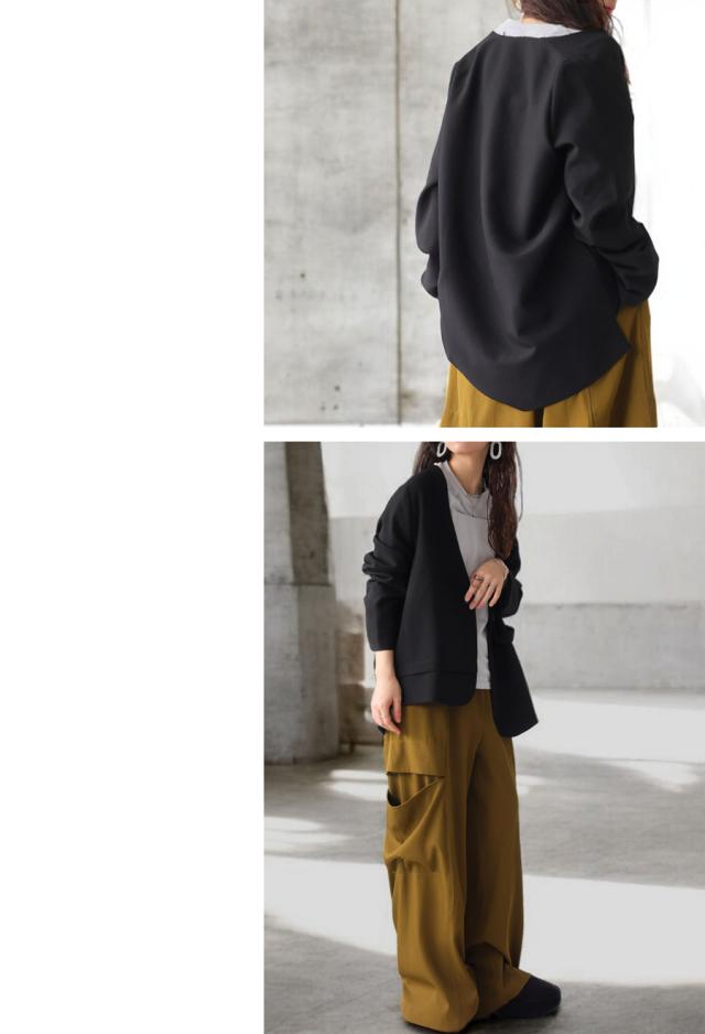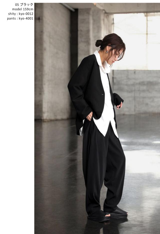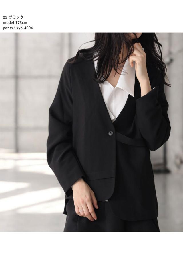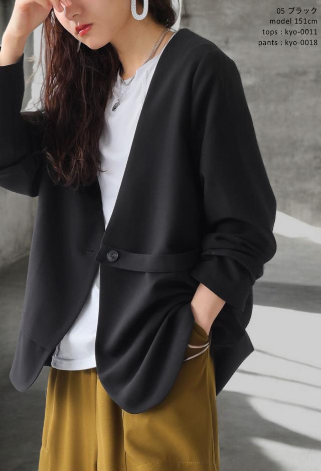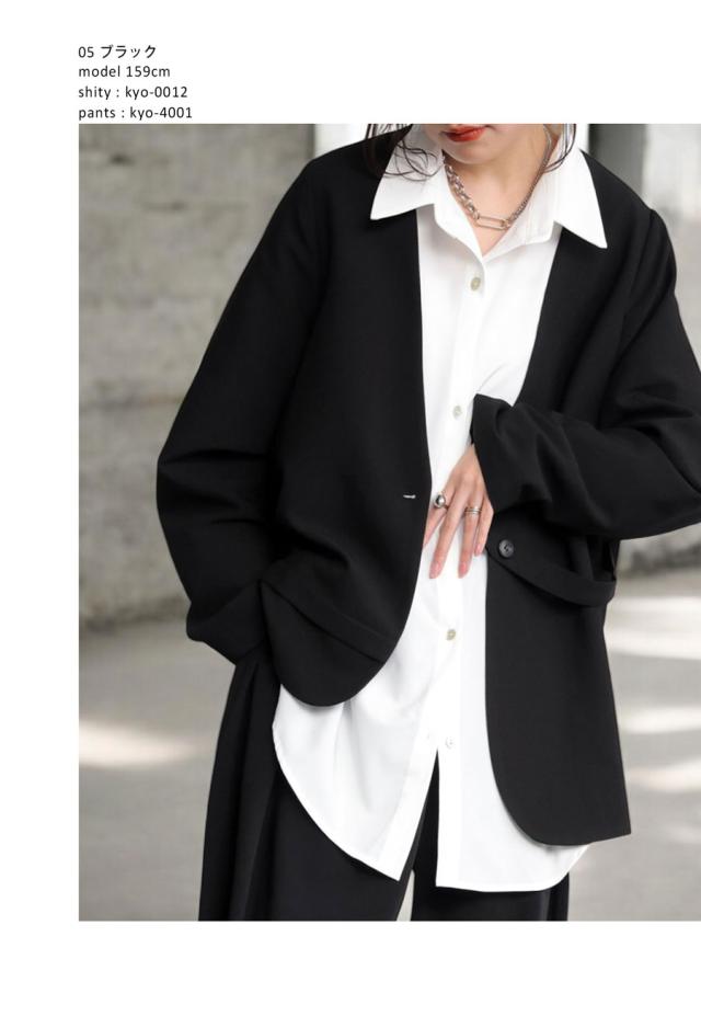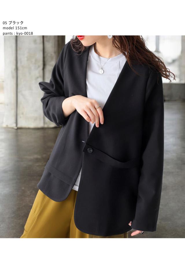 kyo-4002 アウター 長袖 ノーカラー 無地 羽織り セットアップ 前開き ボタン ポケット付き ゆったり きれいめ 上品 高級感 華奢見え 細見え リラックス 楽ちん 大きめ シンプル