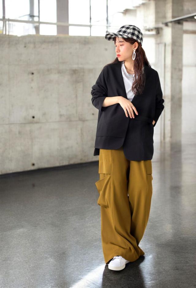 モダンな表情を生み出すアシメデザインジャケット。