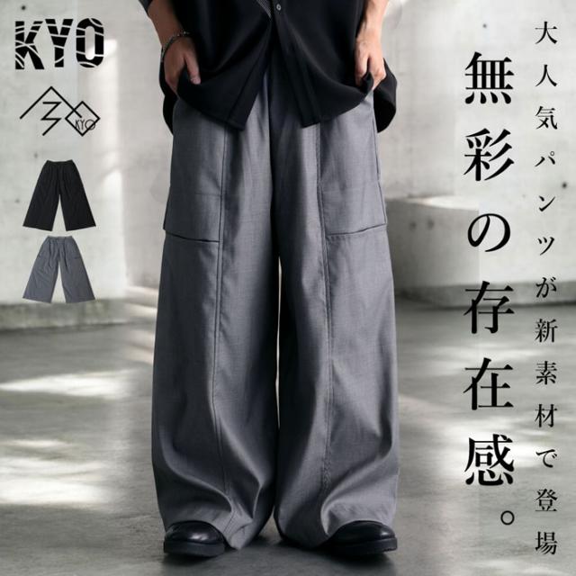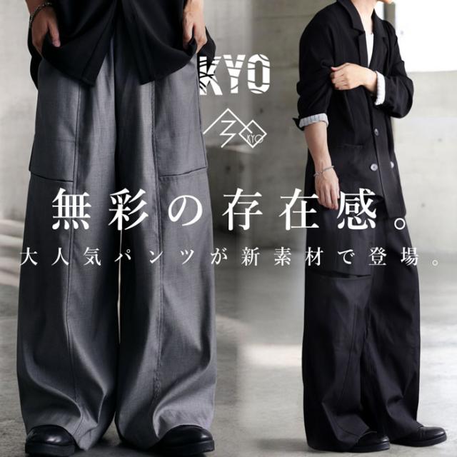 kyo-4014z ワイドパンツ スーツ ロング 大きめポケット おしゃれ ワイド ウエストゴム 楽ちん 上質素材 美脚 高見え きれいめ モード カジュアル 着痩せ 細見え 通勤