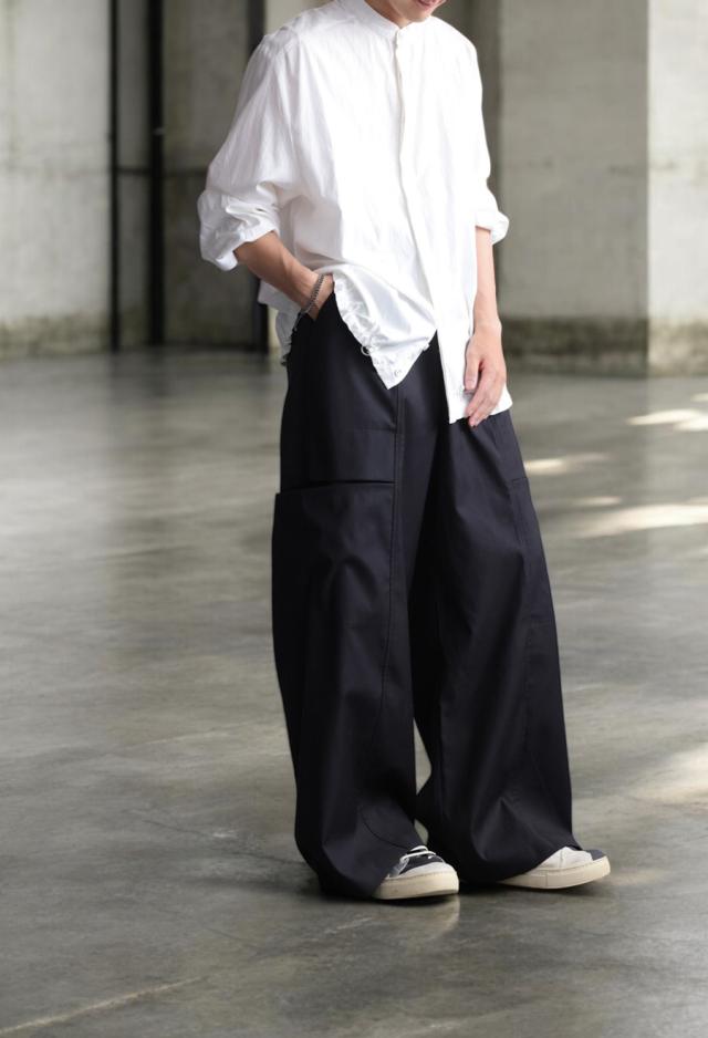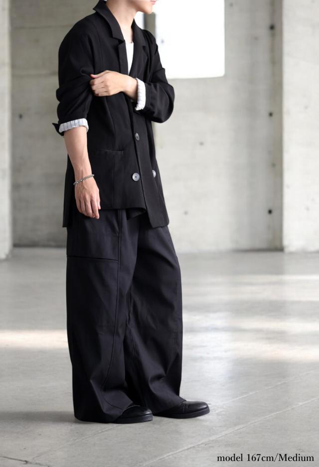 全体的にワイドなシルエットながら、広がりすぎず、洗練されたモードな雰囲気を演出します。