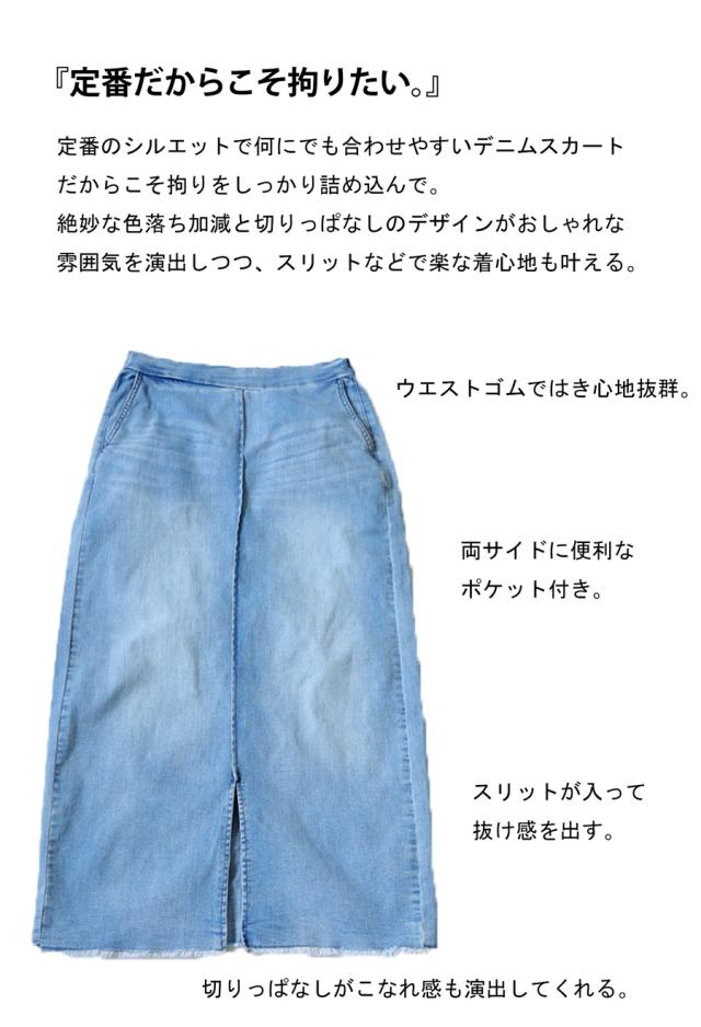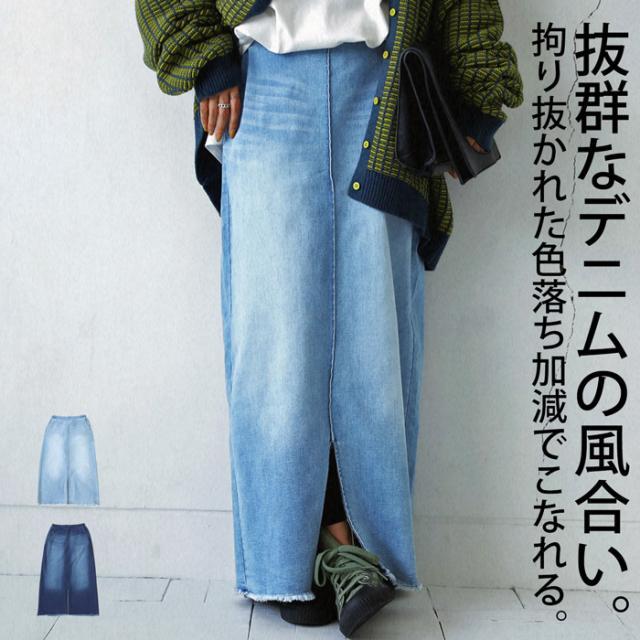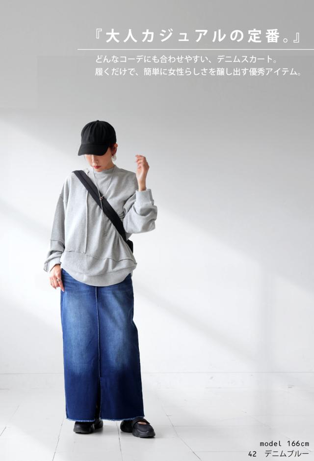 【検索ワード】デニムスカート スカート レディース ボトムス ロング デニム 綿混 ロングスカート マキシ丈 切りっぱなし フリンジ 伸縮 ストレッチ ストレッチデニム ヴィンテージ感 フロントスリット スリット Iライン ストレート 後ろゴム ゆったり 動きやすい antiqua アンティカ 大人 おしゃれ 10代 20代 30代 40代 50代 60代 春 夏 秋 冬 オールシーズン お洒落 カジュアル かわいい かっこいい あんてぃか