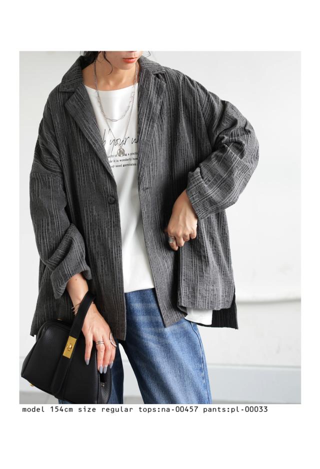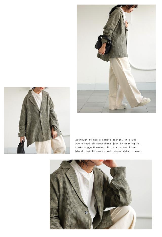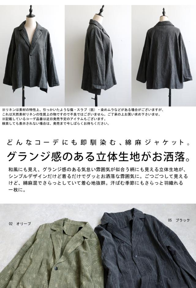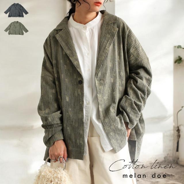 my-00019 トップス 長袖 きれいめ テーラード テーラードジャケット 上品 セットアップ 羽織り 前開き ゆったり 綿麻 コットン リネン 綿 麻 ナチュラルぽこぽこ 凹凸 立体感