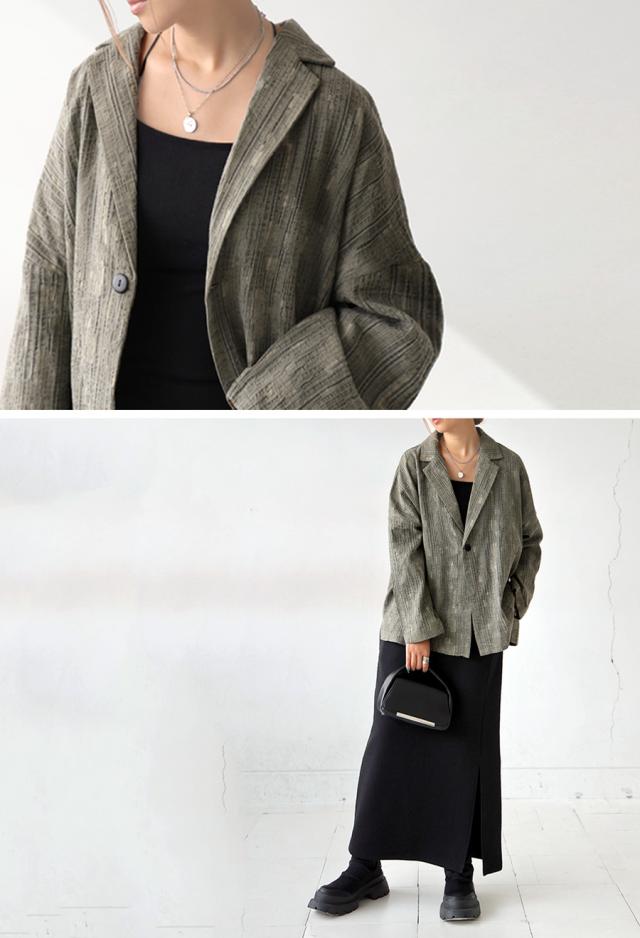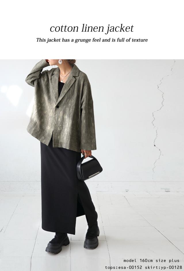 グランジ感のある気怠い雰囲気がお洒落な綿麻素材のジャケット。