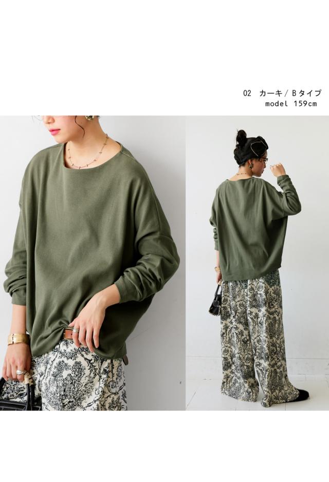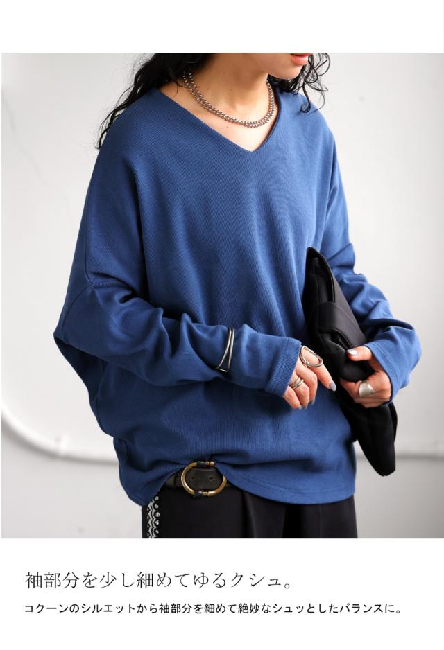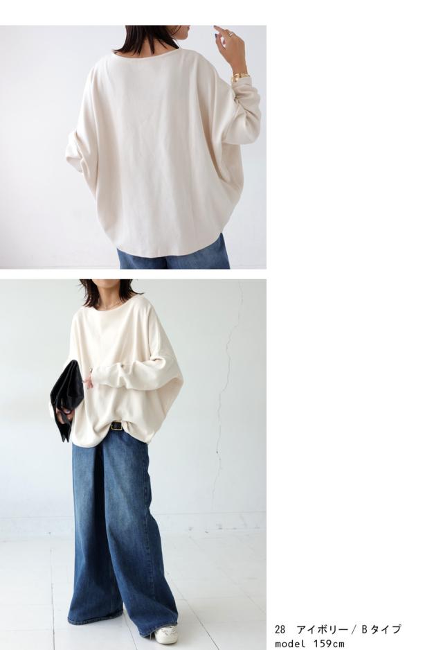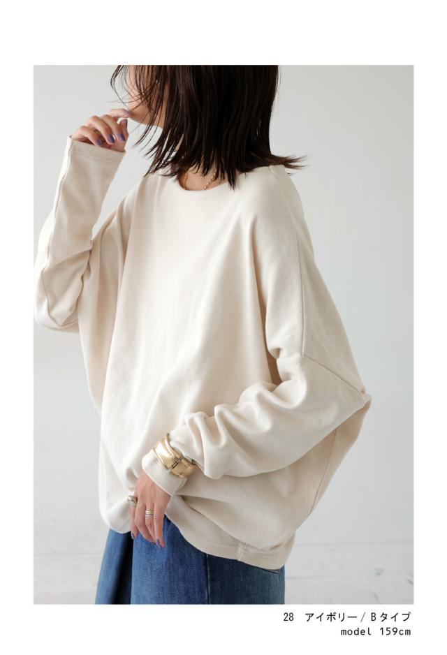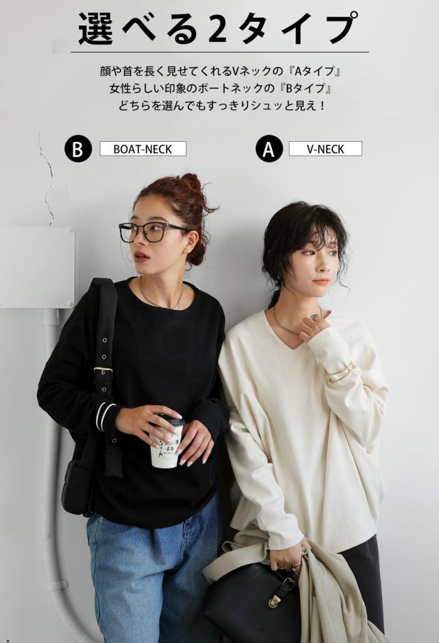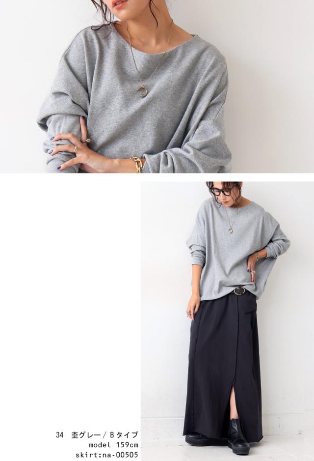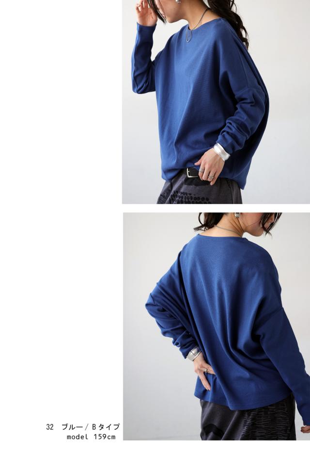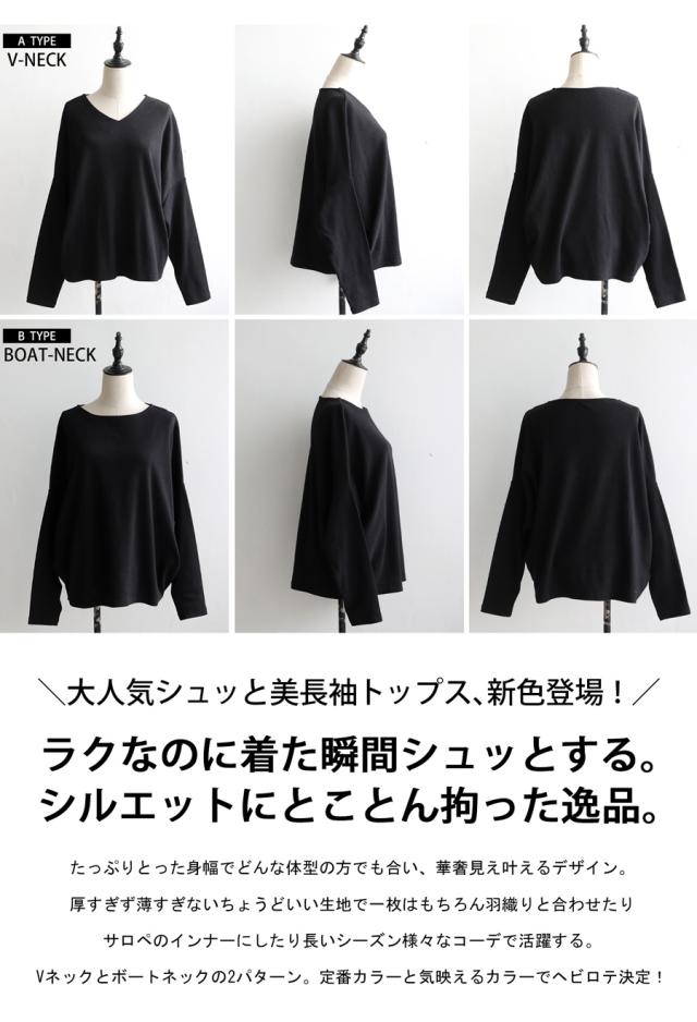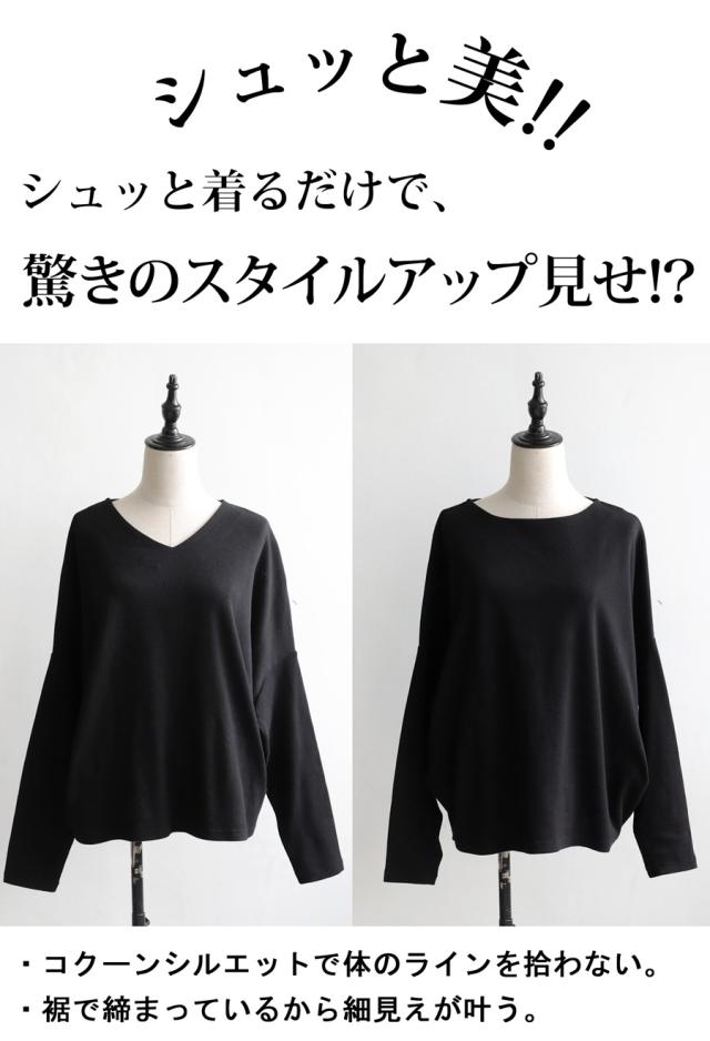na-00476z7 トップス 長袖 ドルマン 変形 ボートネック Vネック 綿混 無地 リブ ストレッチ プルオーバー ゆったり タイプ展開 コクーントップス 体型カバー ラクしてキレイ 大きめ