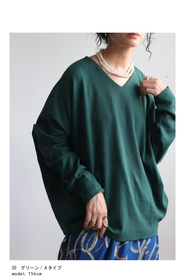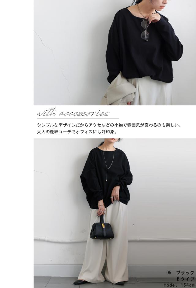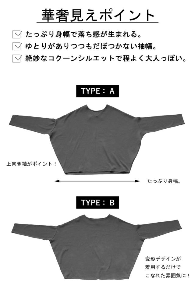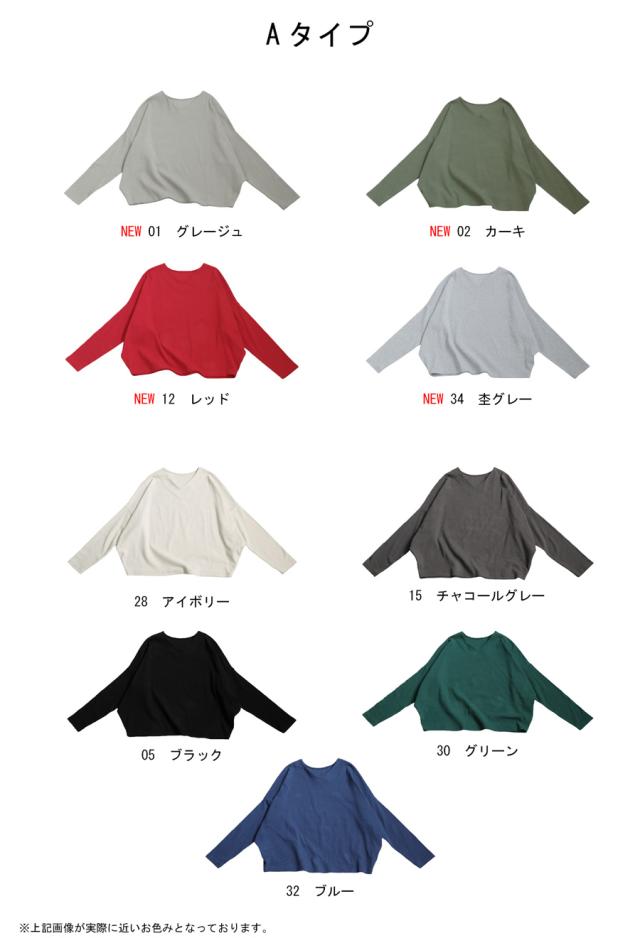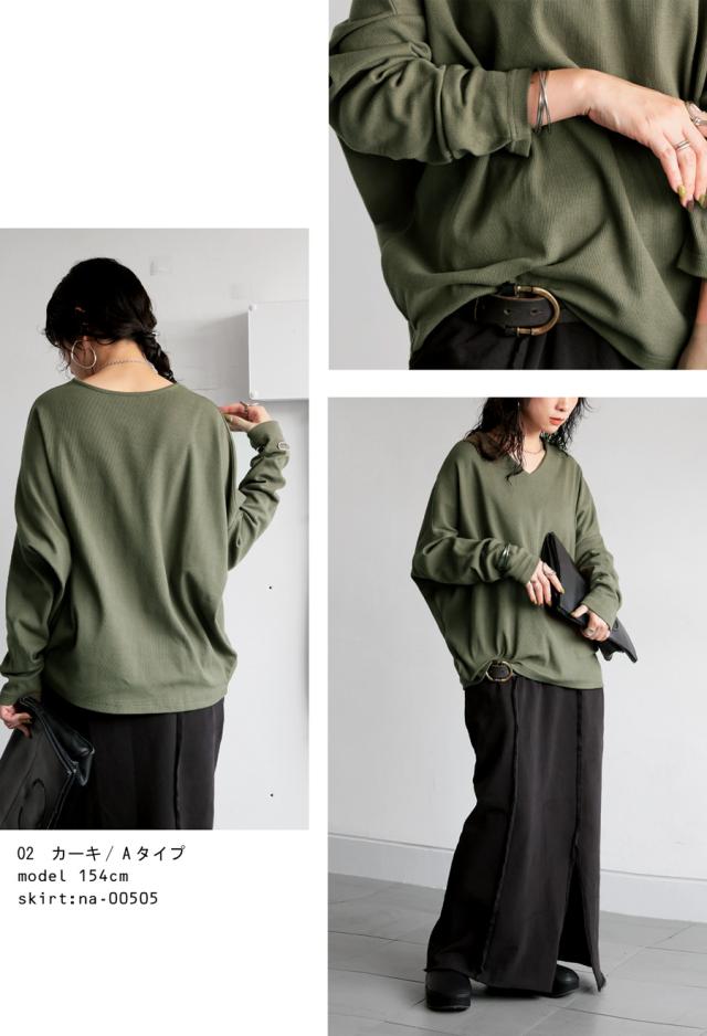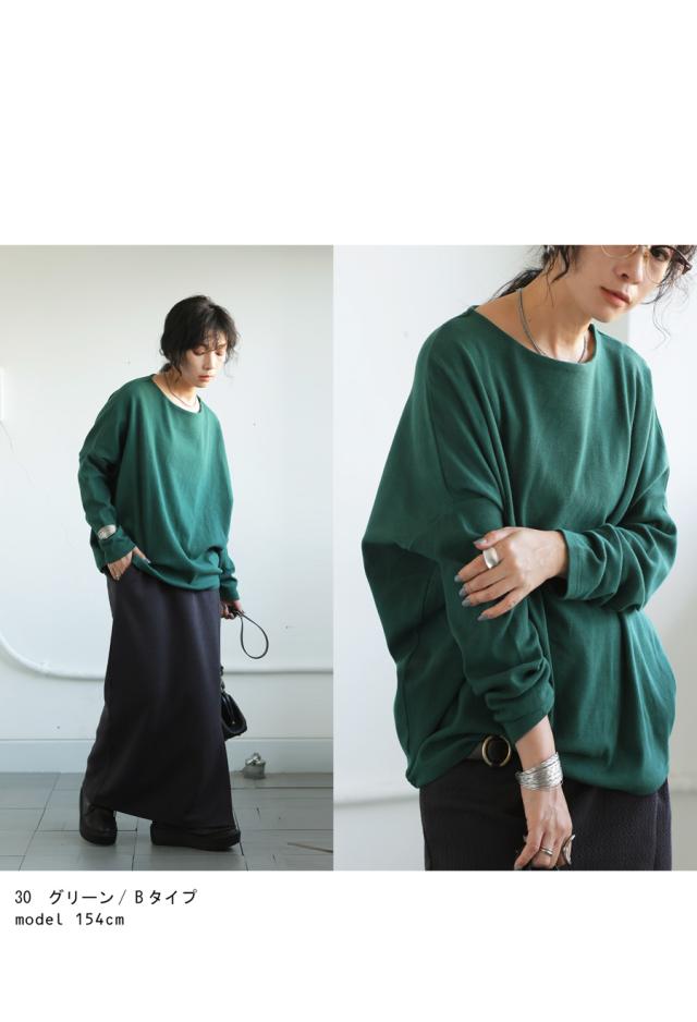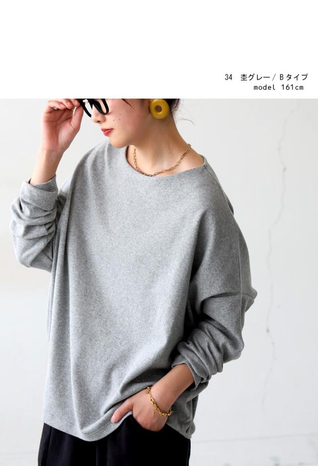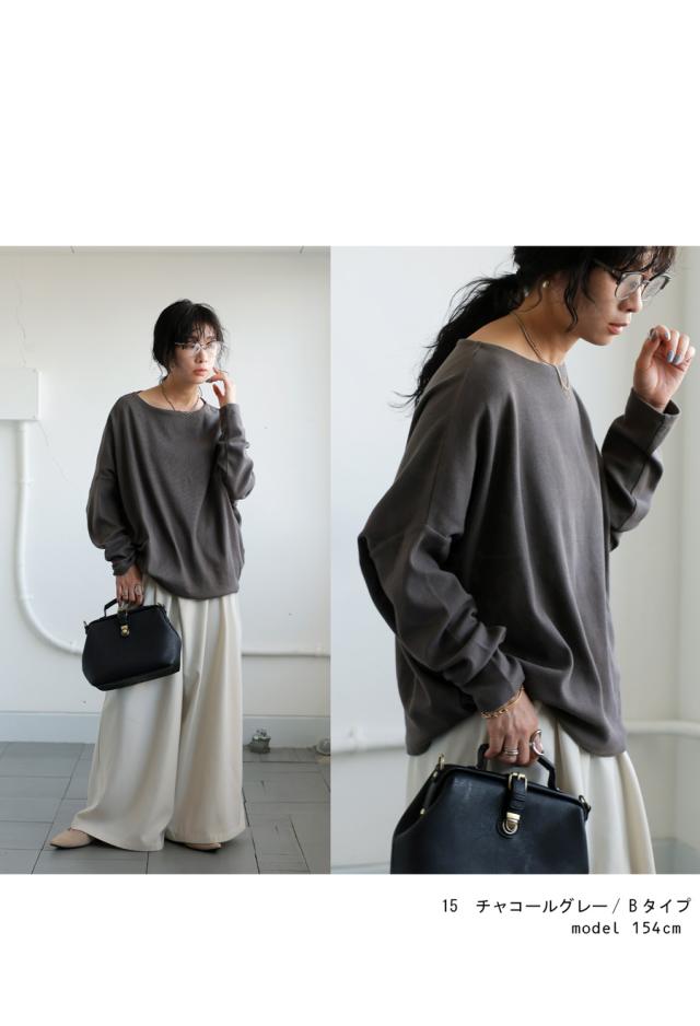 na-00476z7 トップス 長袖 ドルマン 変形 ボートネック Vネック 綿混 無地 リブ ストレッチ プルオーバー ゆったり タイプ展開 コクーントップス 体型カバー ラクしてキレイ 大きめ