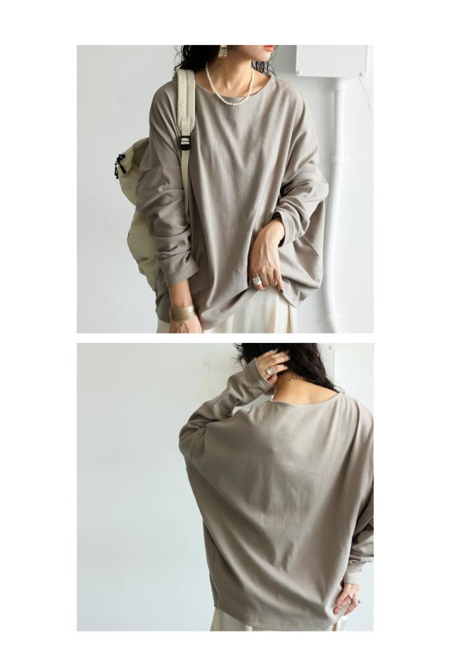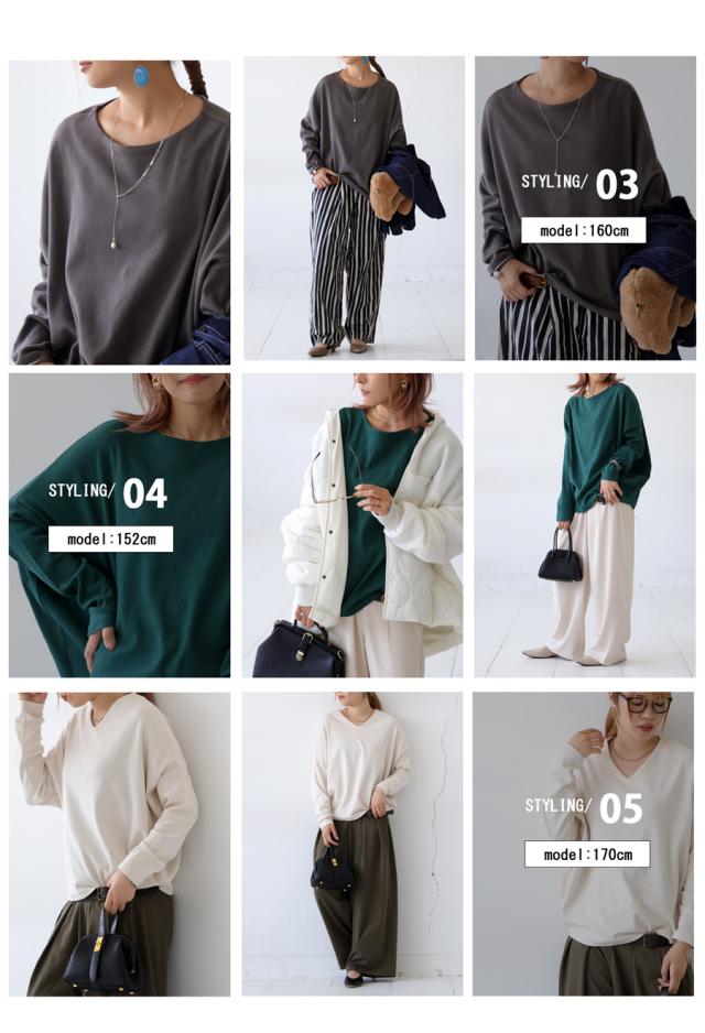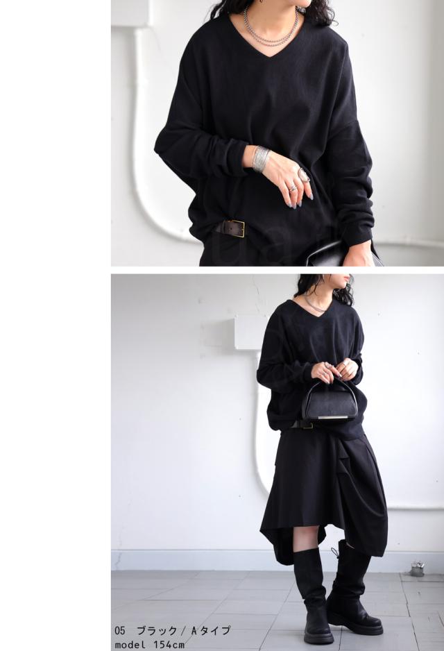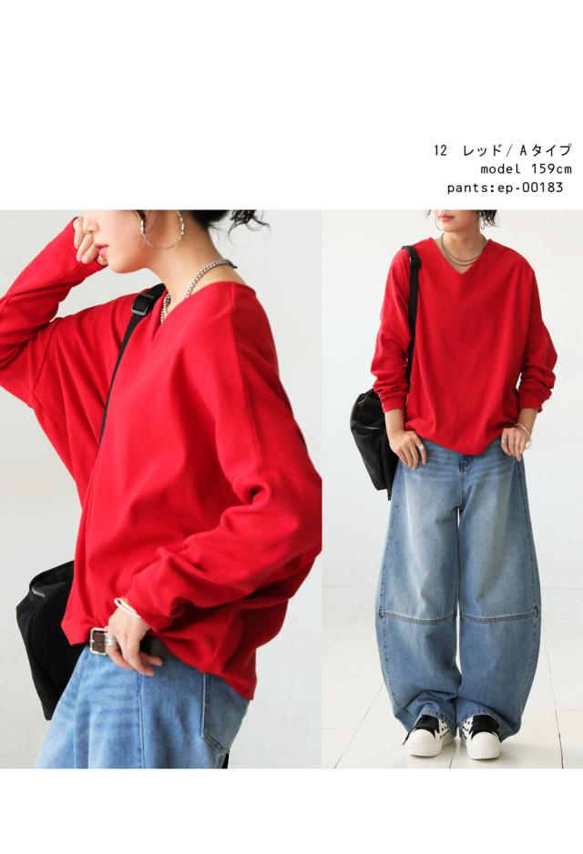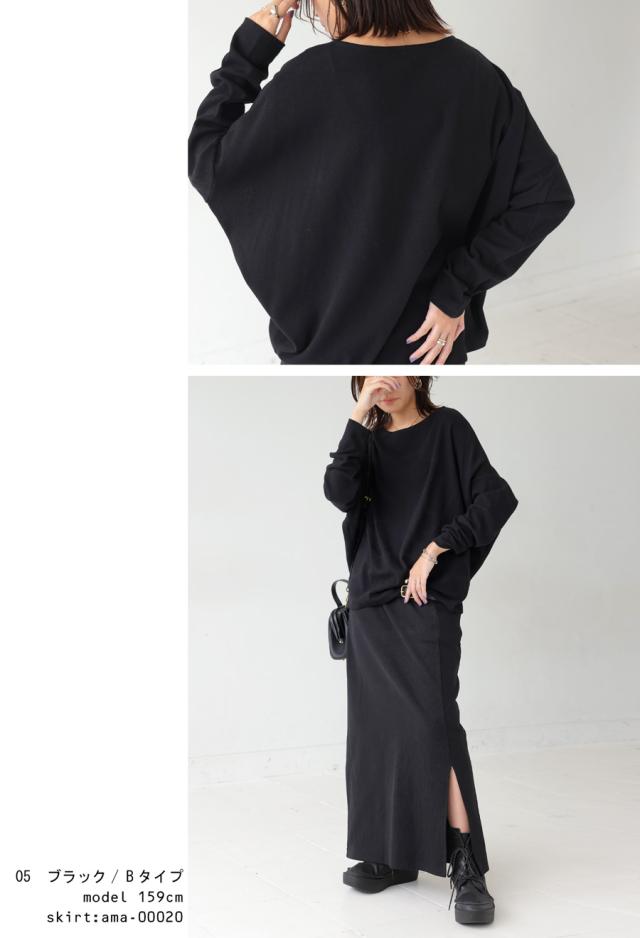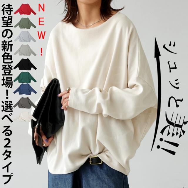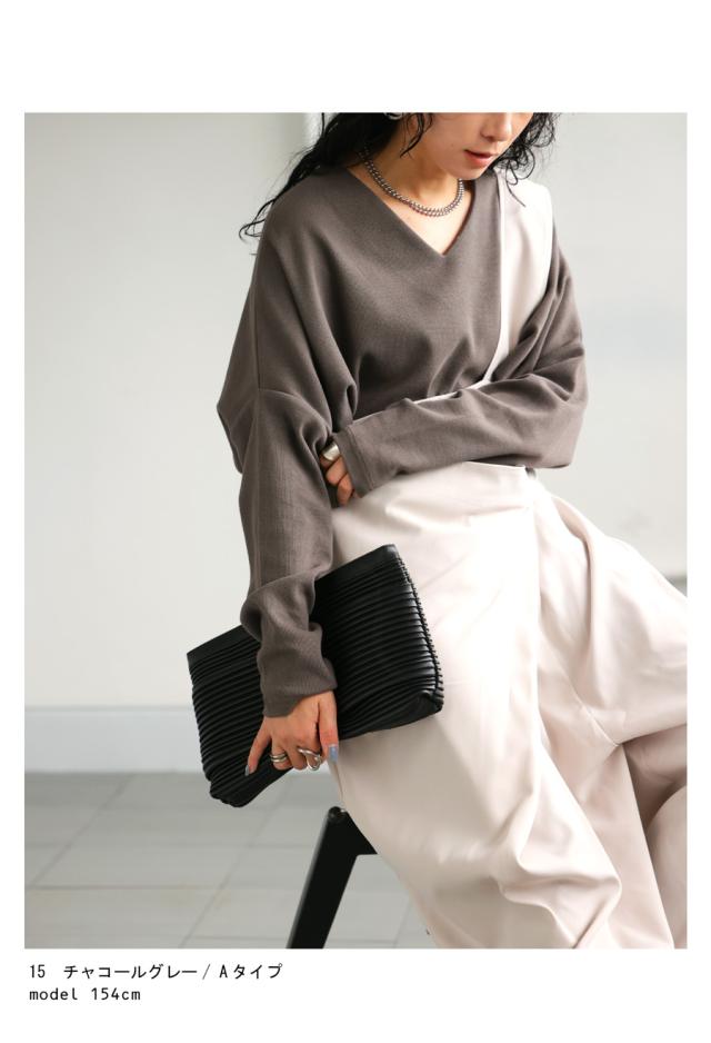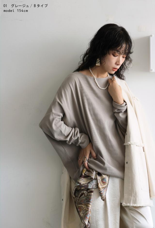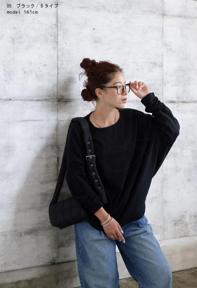 na-00476z7 トップス 長袖 ドルマン 変形 ボートネック Vネック 綿混 無地 リブ ストレッチ プルオーバー ゆったり タイプ展開 コクーントップス 体型カバー ラクしてキレイ 大きめ