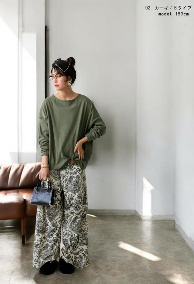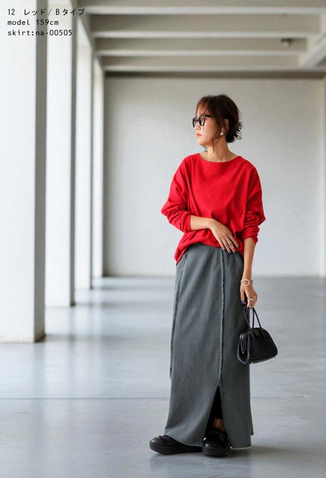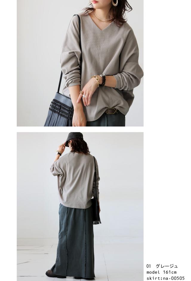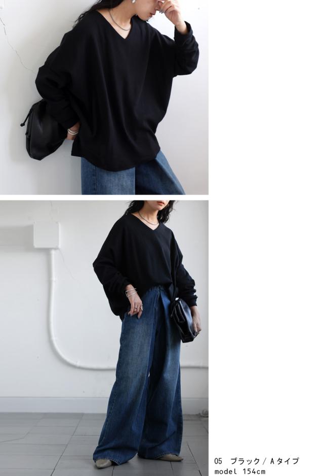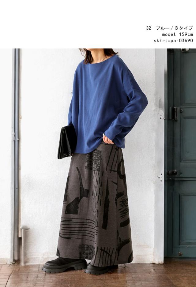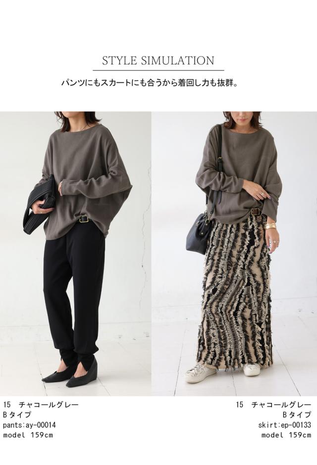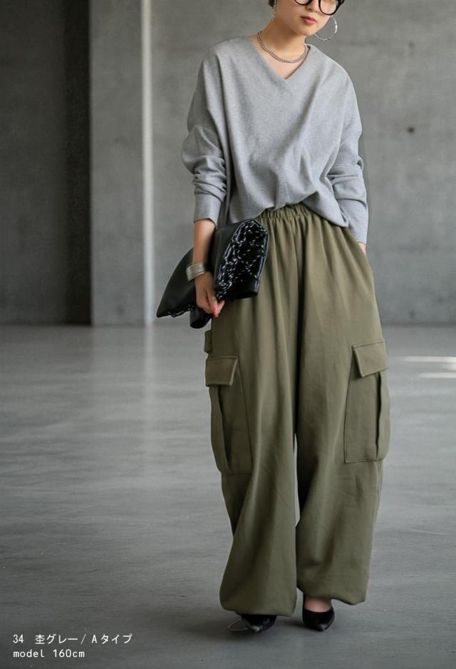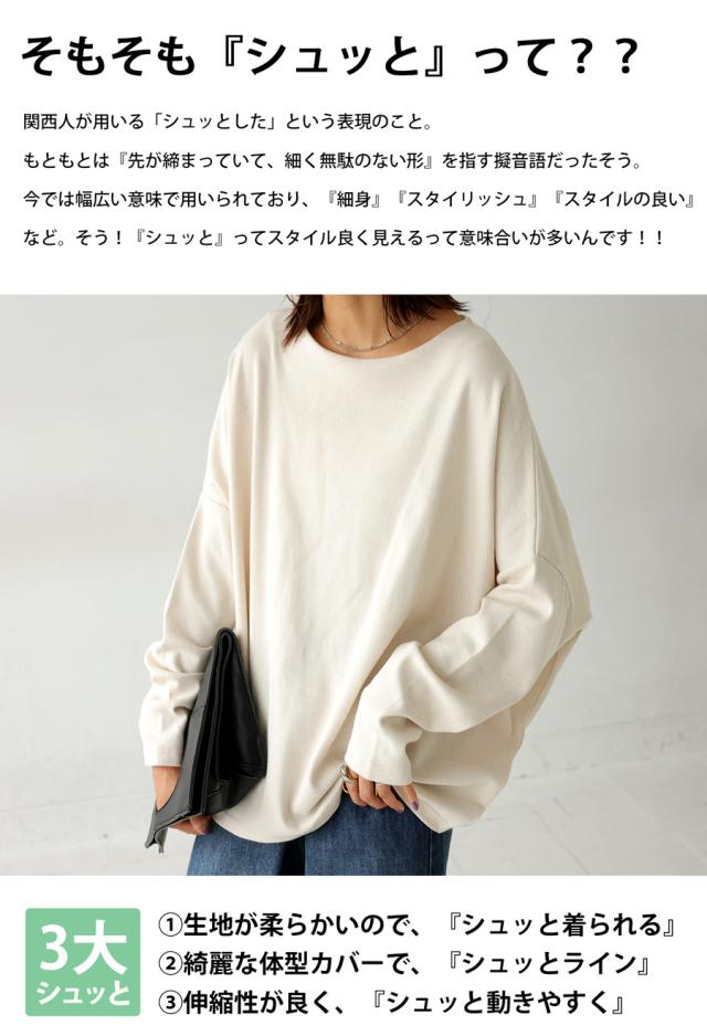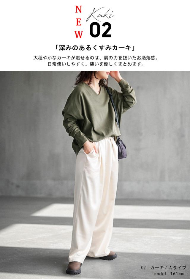 na-00476z7 トップス 長袖 ドルマン 変形 ボートネック Vネック 綿混 無地 リブ ストレッチ プルオーバー ゆったり タイプ展開 コクーントップス 体型カバー ラクしてキレイ 大きめ