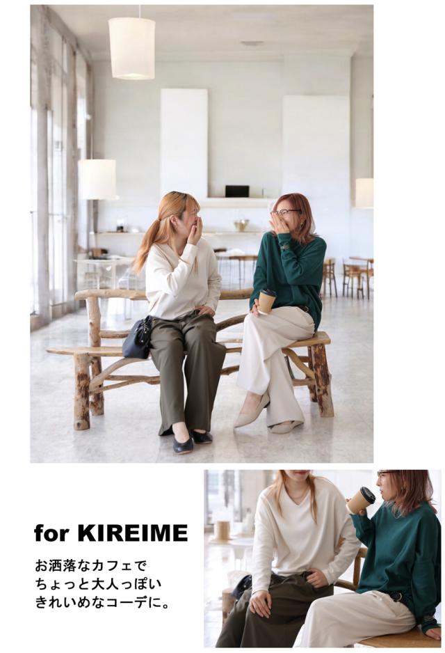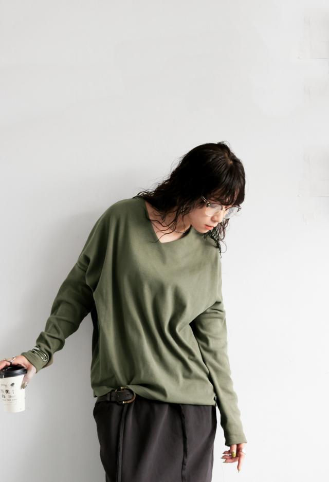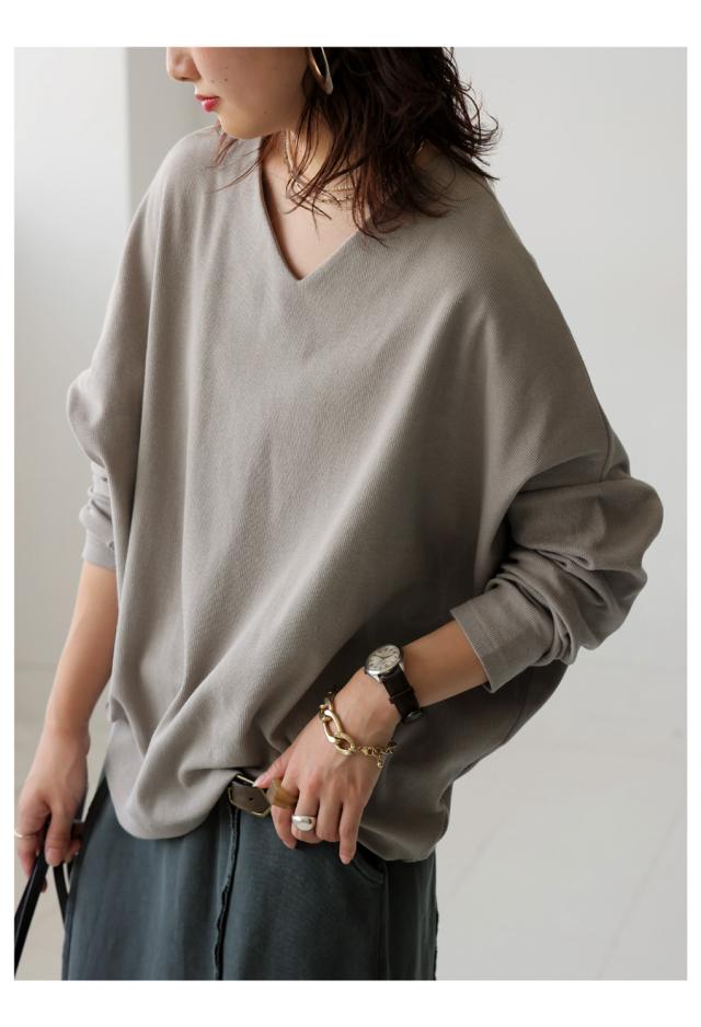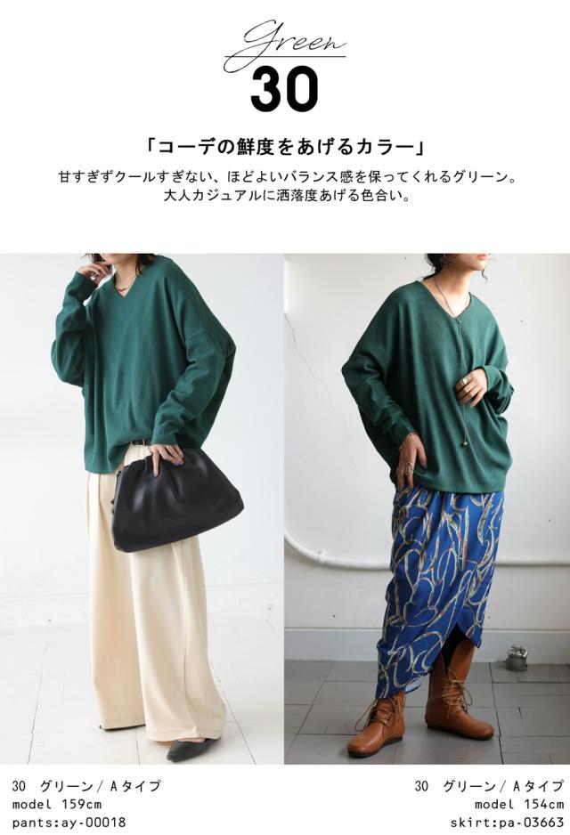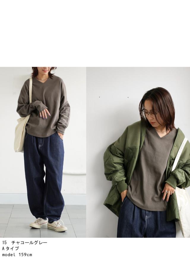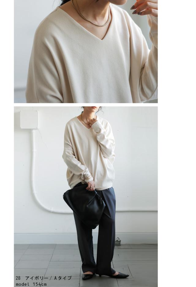 - Vネックですが開きすぎず着やすいです。中にタートルネックを合わせても良い感じ!ラグラン袖なのでゆとりもあるので◎