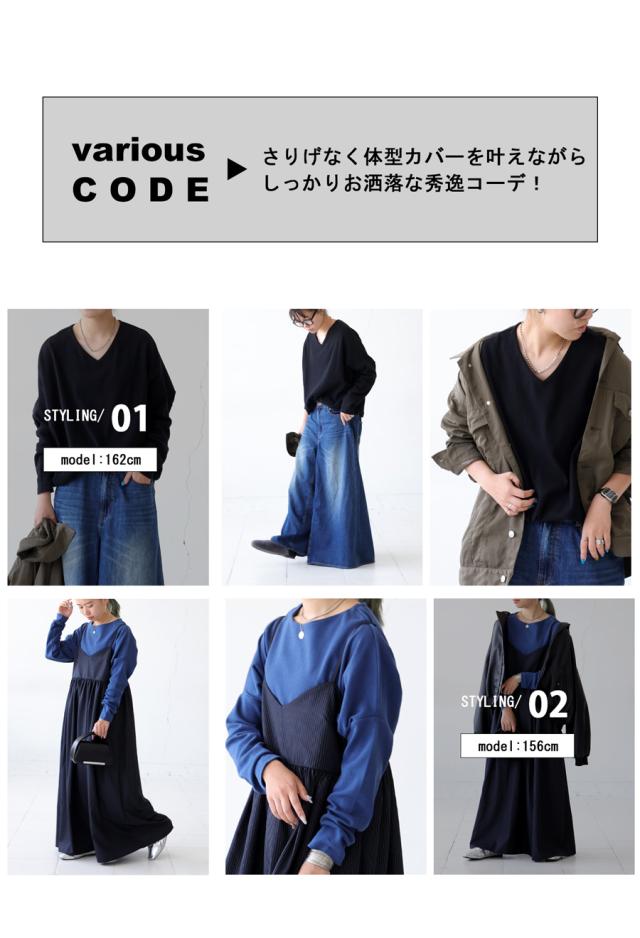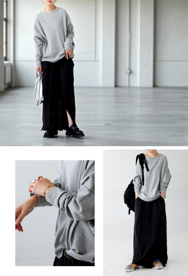 裾部分はリブでほんのり締まり、絶妙なメリハリをプラス。抜け感がありながらも細見えが叶います。