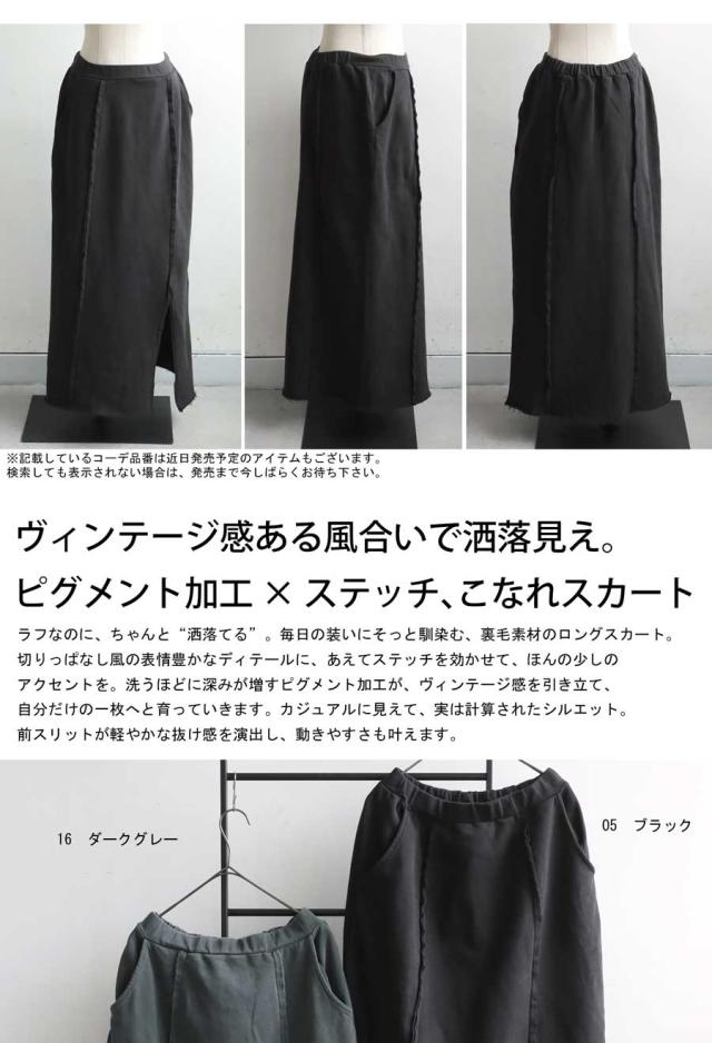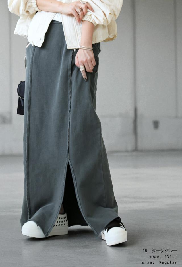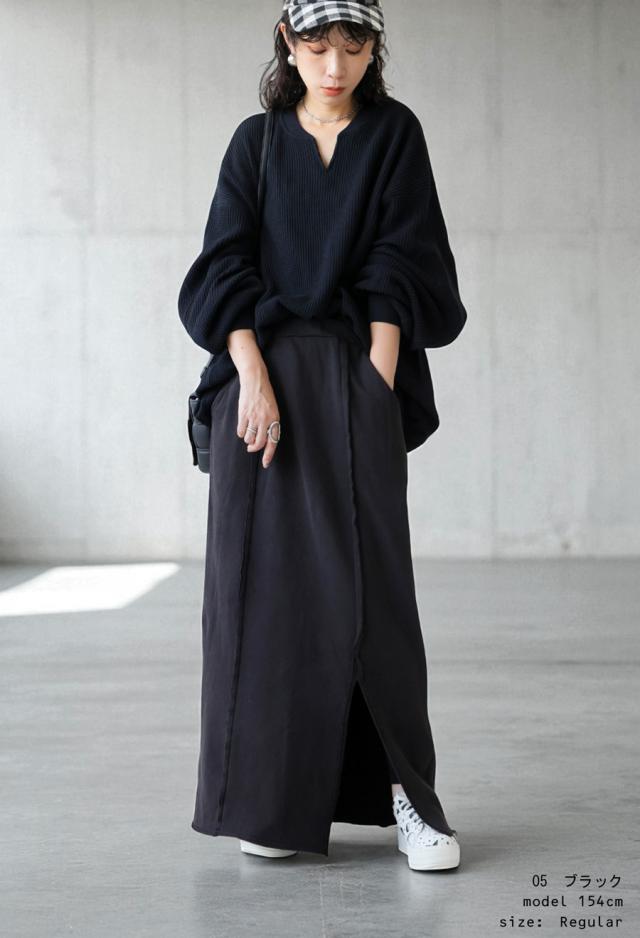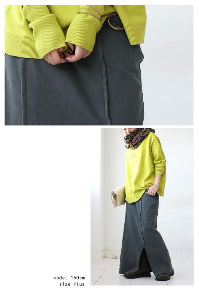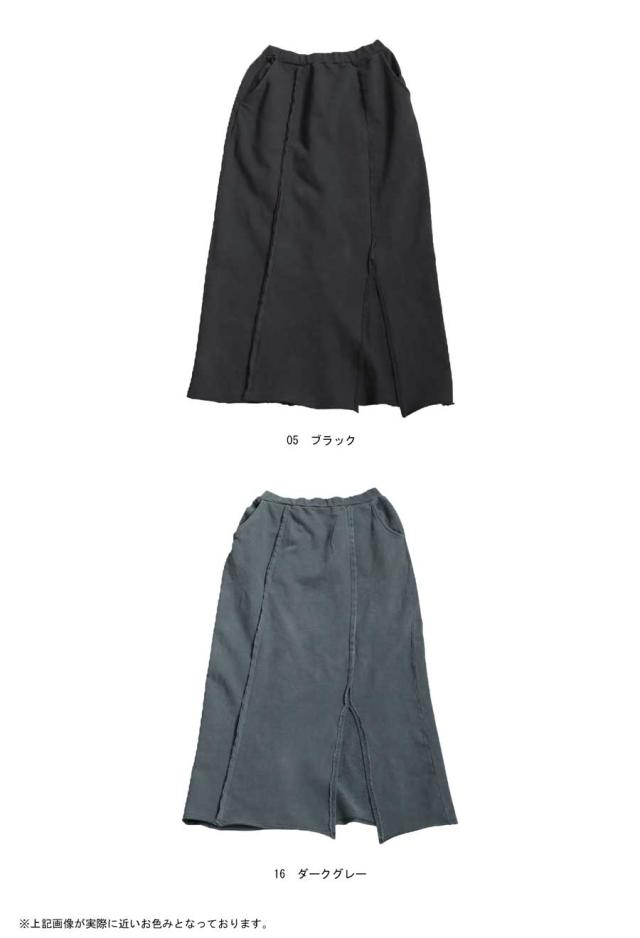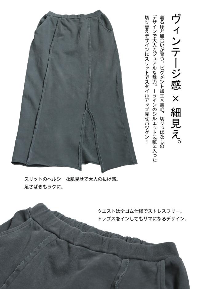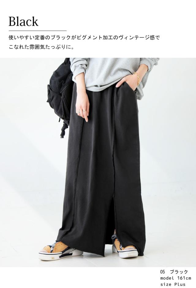 na-00505 ロングスカート スカート 裏毛 綿100% 綿 コットン ピグメント加工 ステッチ スリット ウエストゴム ポケット付き ヴィンテージ風 着回し ゆったり 体型カバー