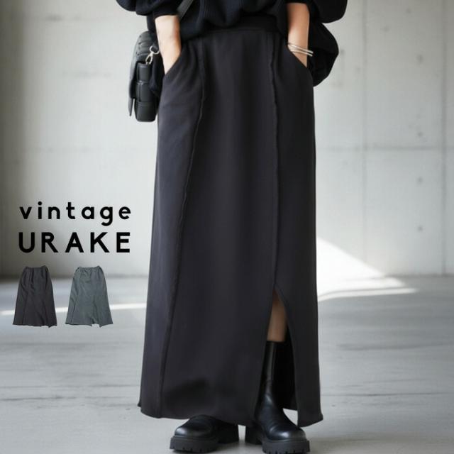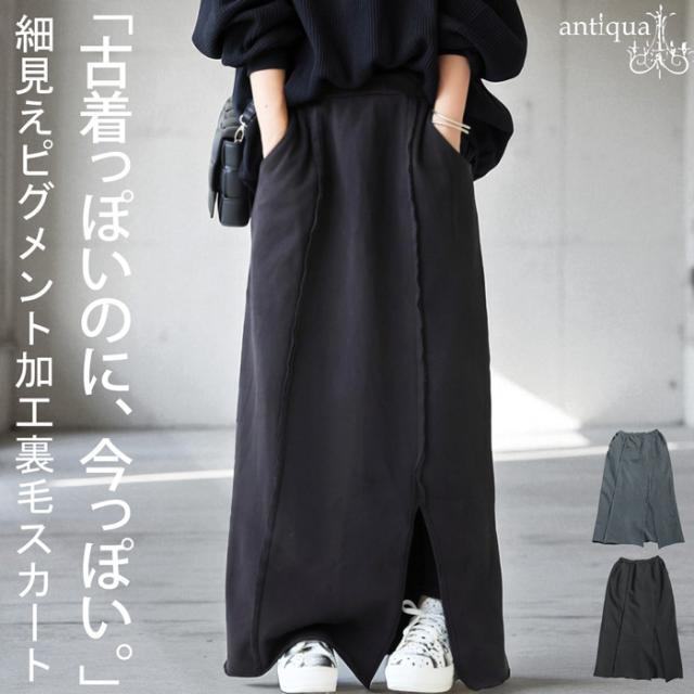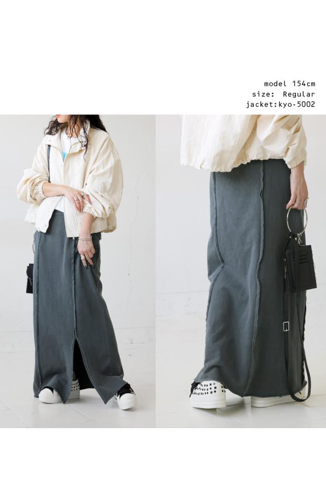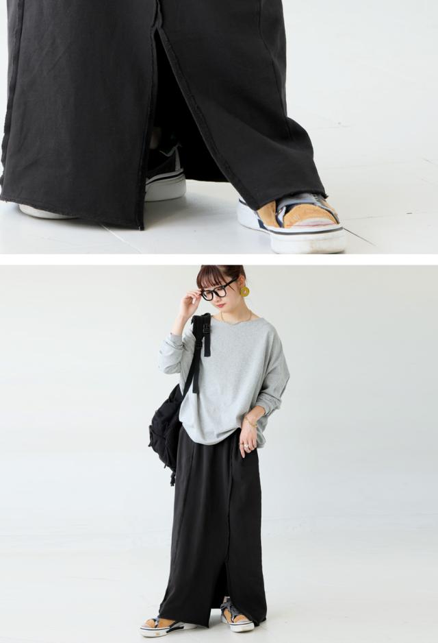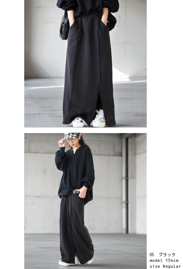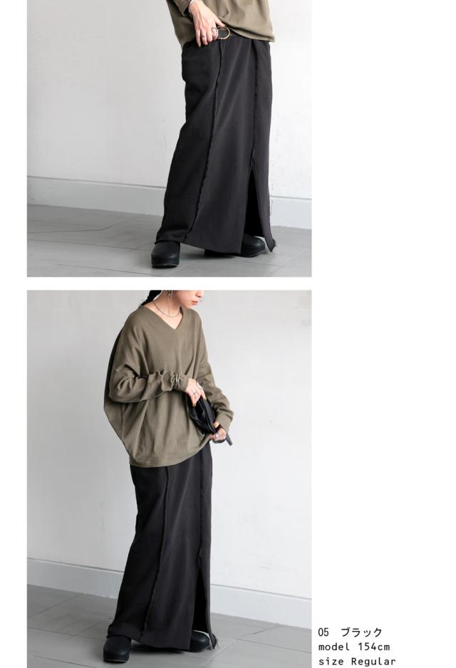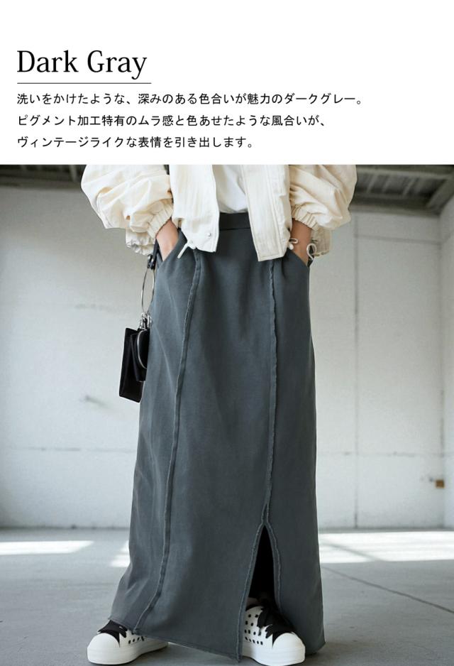 na-00505 ロングスカート スカート 裏毛 綿100% 綿 コットン ピグメント加工 ステッチ スリット ウエストゴム ポケット付き ヴィンテージ風 着回し ゆったり 体型カバー