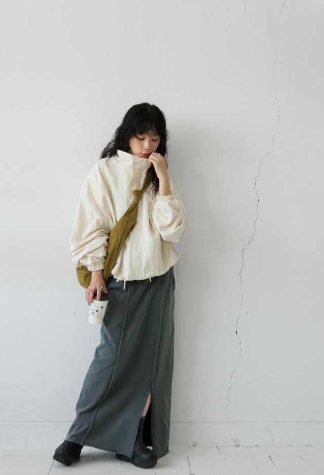 フロントに入ったスリットは、動きやすさだけでなく、足元に抜け感を与え、女性らしい雰囲気も演出してくれます。