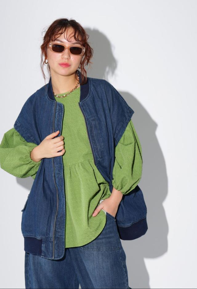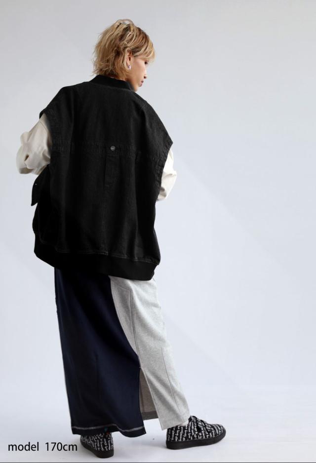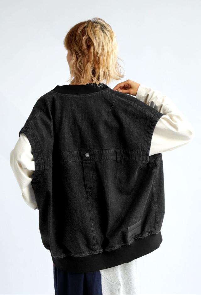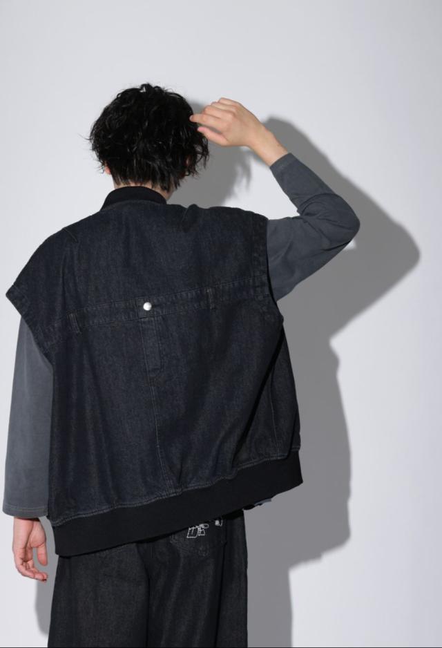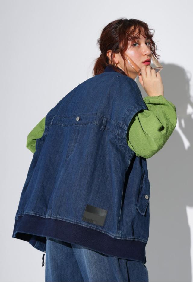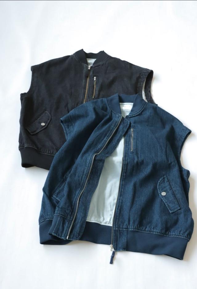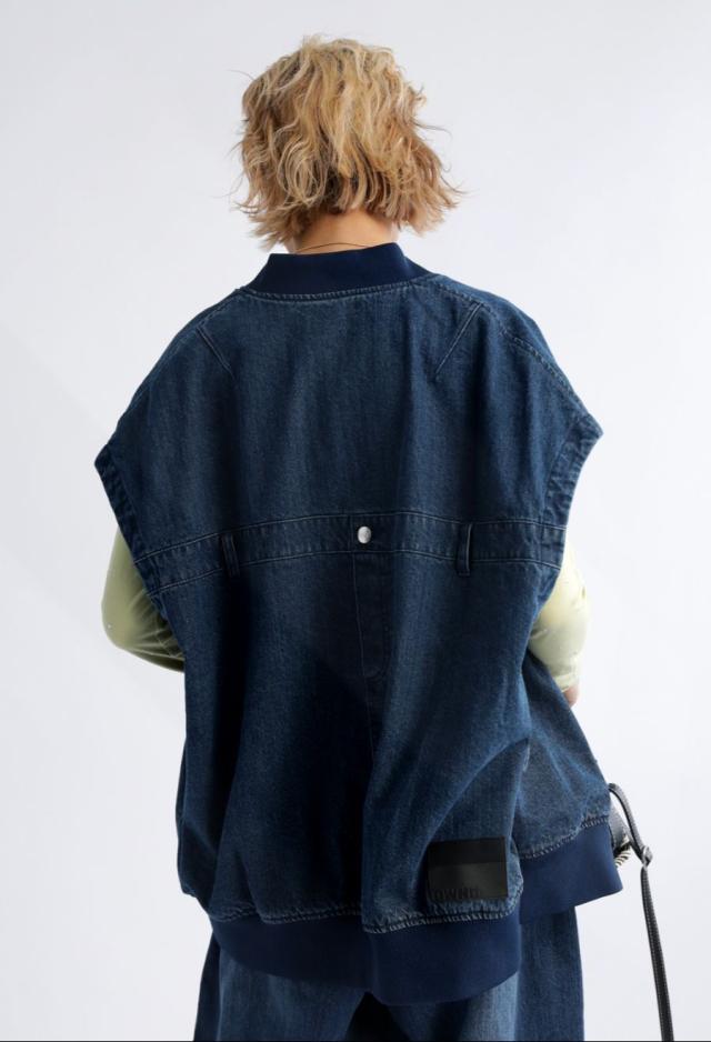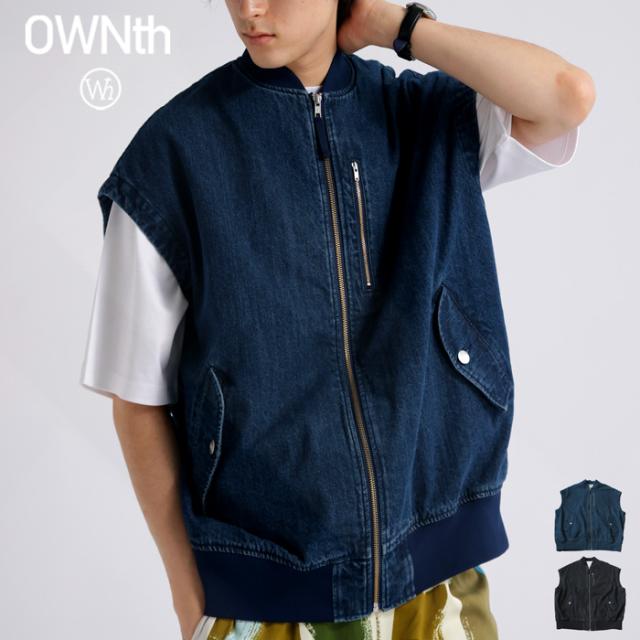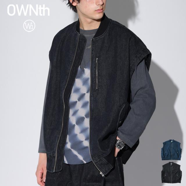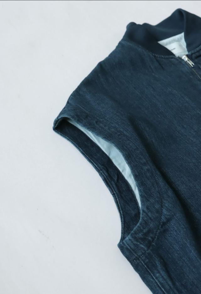 owt-0053z ノースリーブ デニム 綿100 綿 コットン シンプル カジュアル モード ストリート フラップポケット ロゴパッチ 経年変化 レイヤード トレンド ヴィンテージ アウター