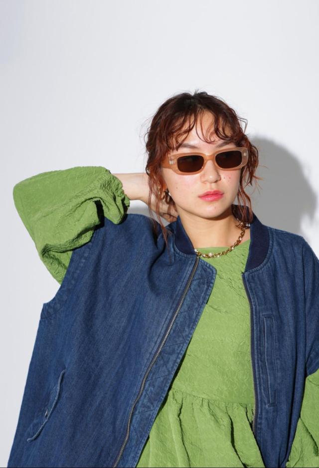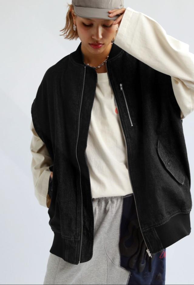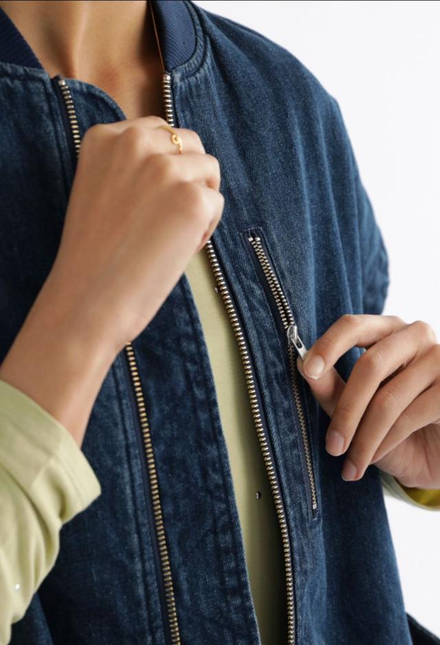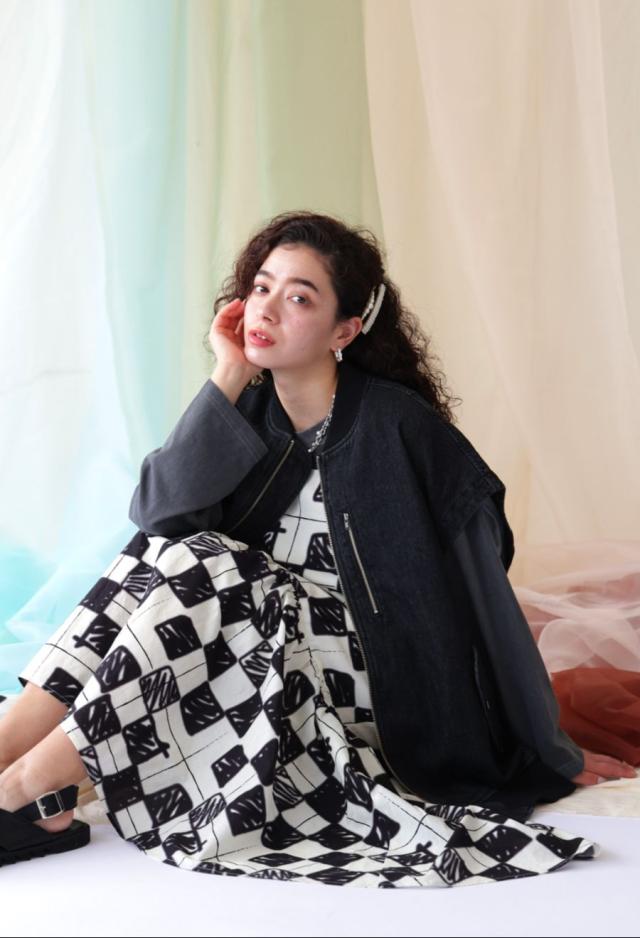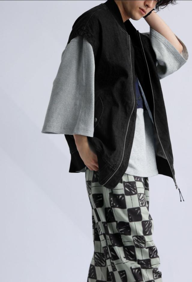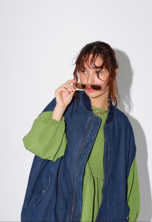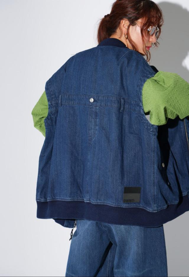 後見頃にはデニムパンツの前開きを模したディテールを採用し、遊び心のある個性派な形状に仕上げました。