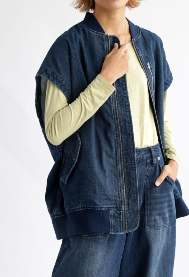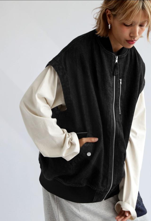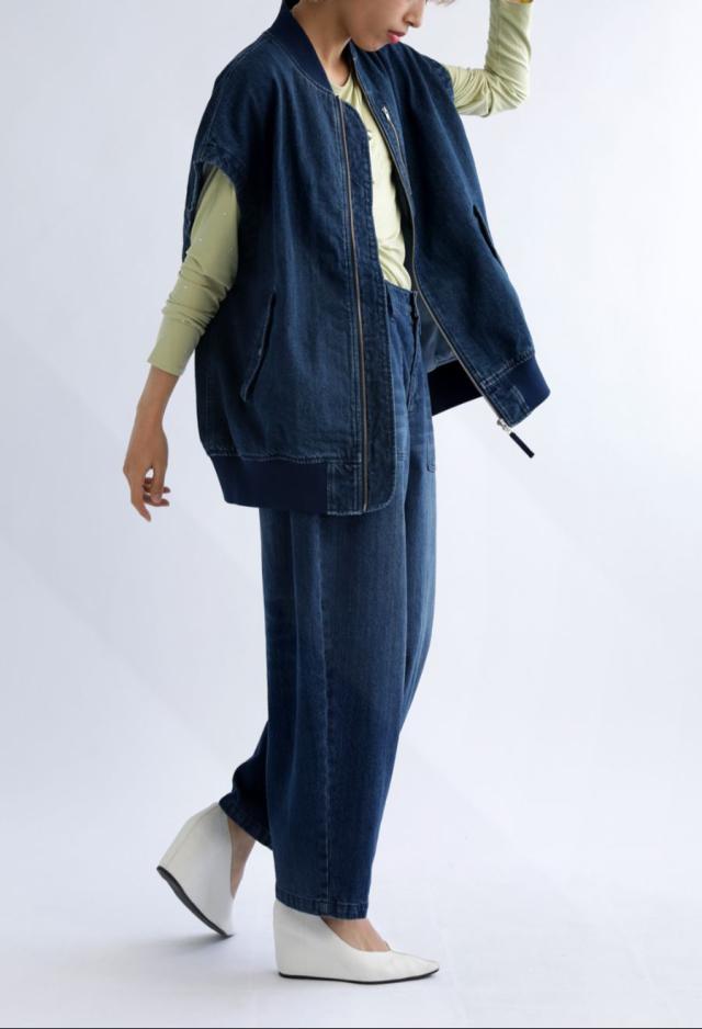シンプルな着こなしにプラスするだけで存在感を放つデニムベスト。