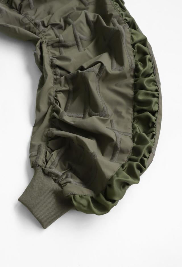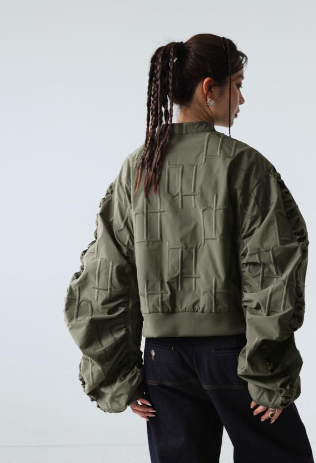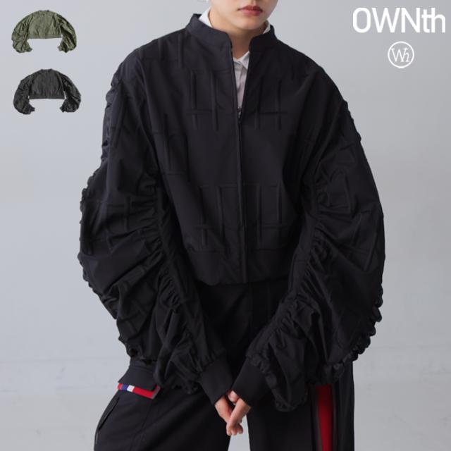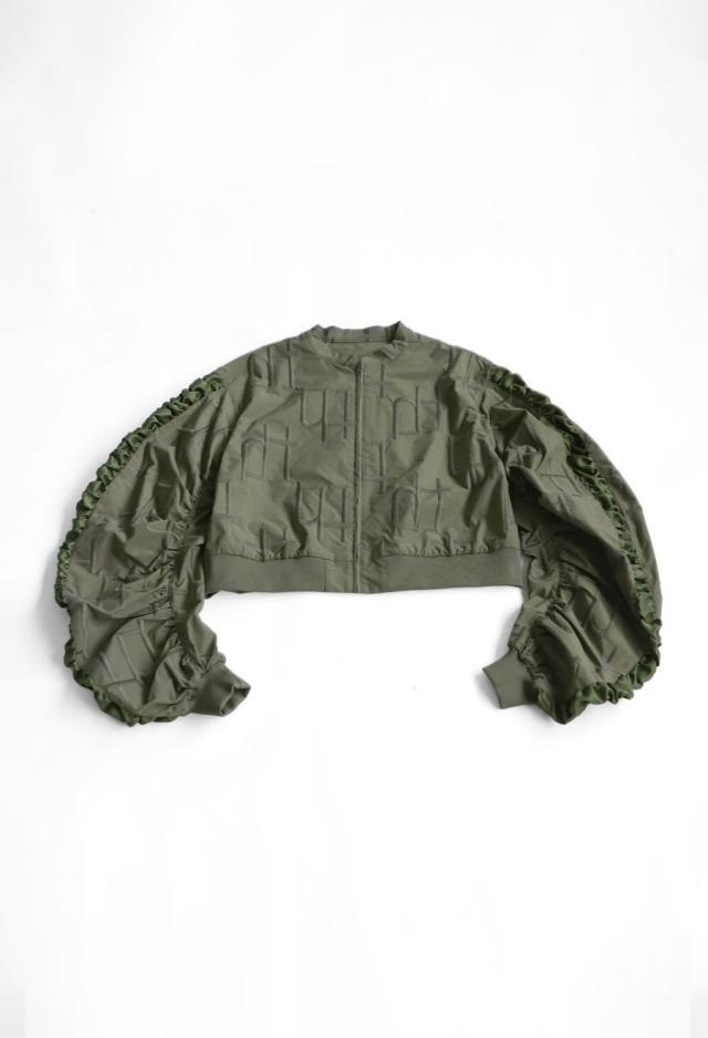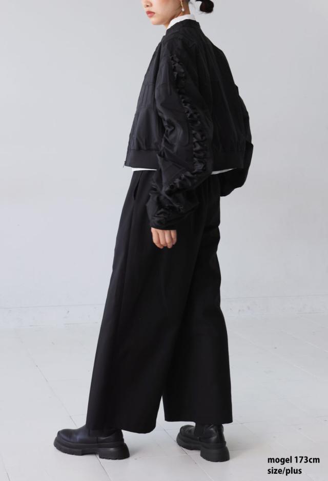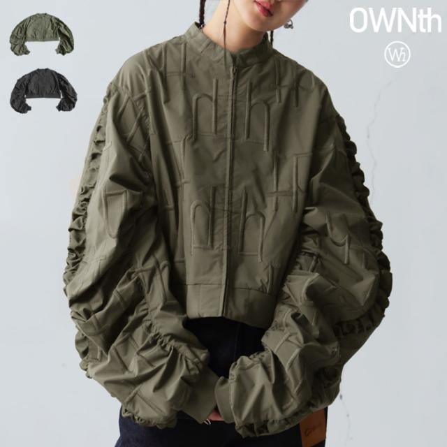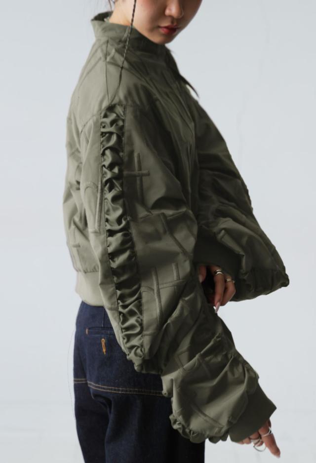 owt-0091 袖ギャザー ジップアウター モード 羽織り ミリタリースタイル 軽アウター ストリート フェミニン モード ショート丈 ジップアップ ファスナー 前開き 着回し