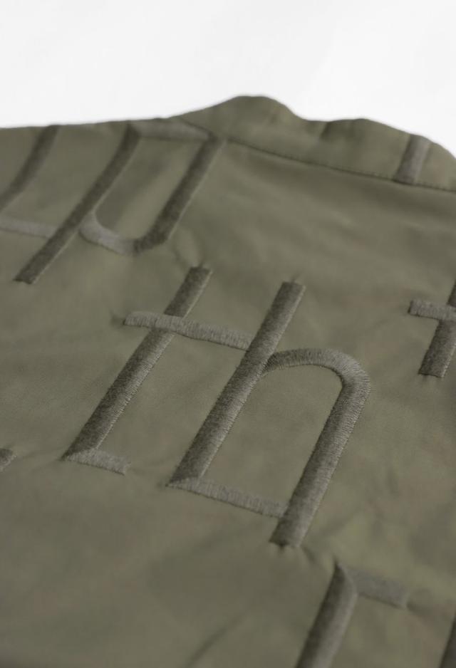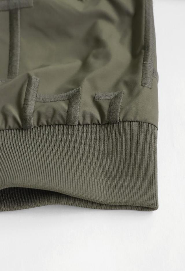 存在感のあるモノグラムデザインが目を惹く、ショート丈のノーカラーブルゾンです。