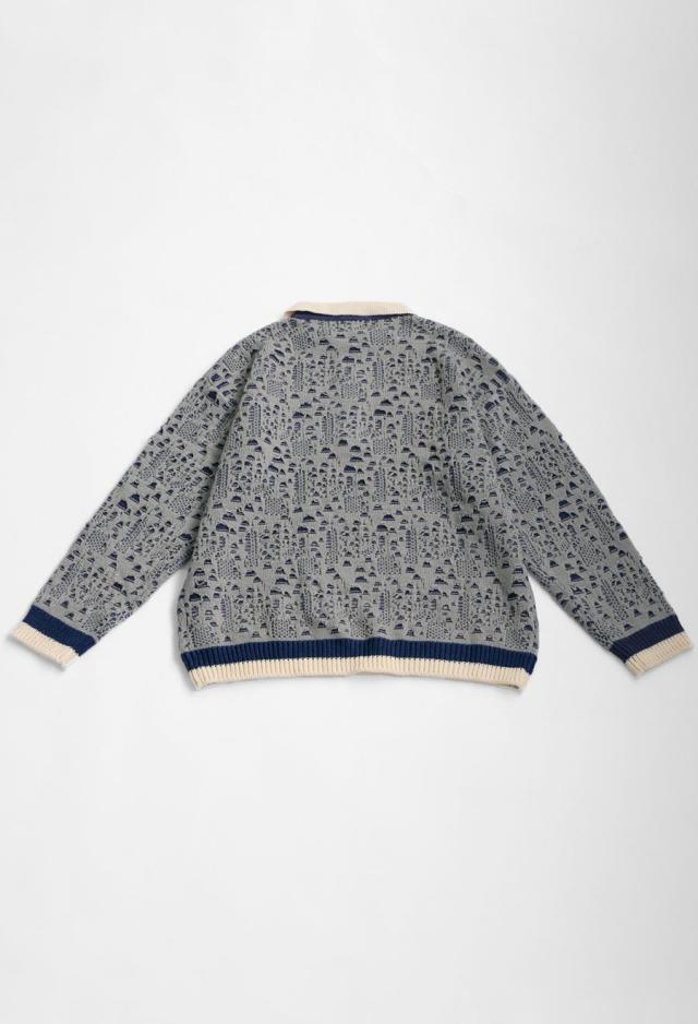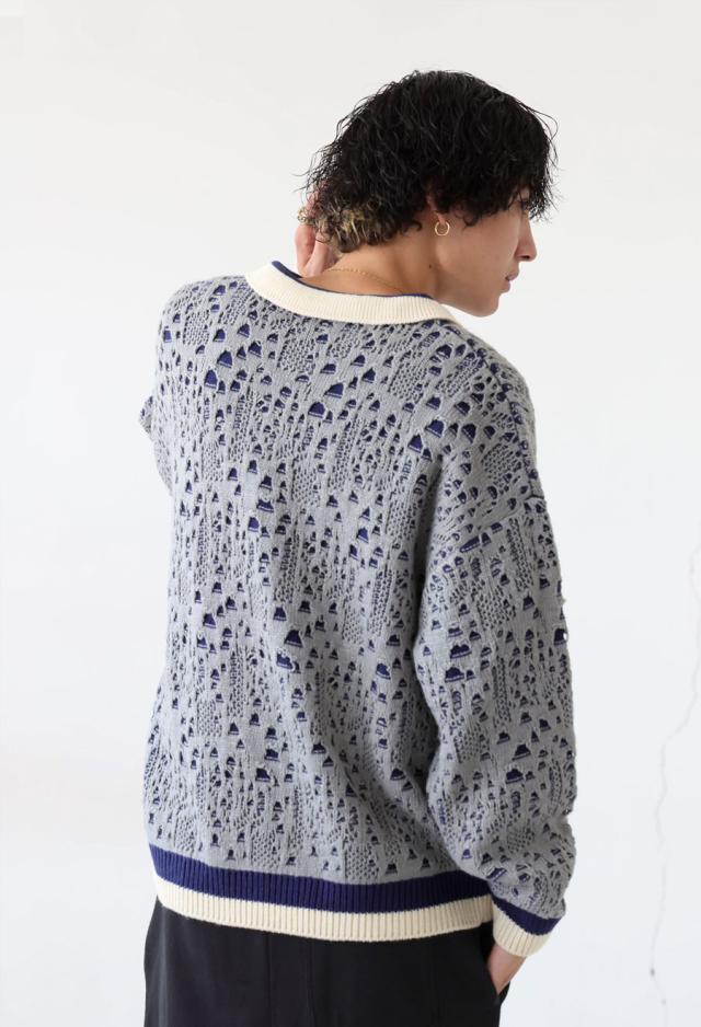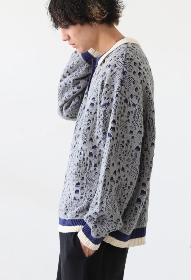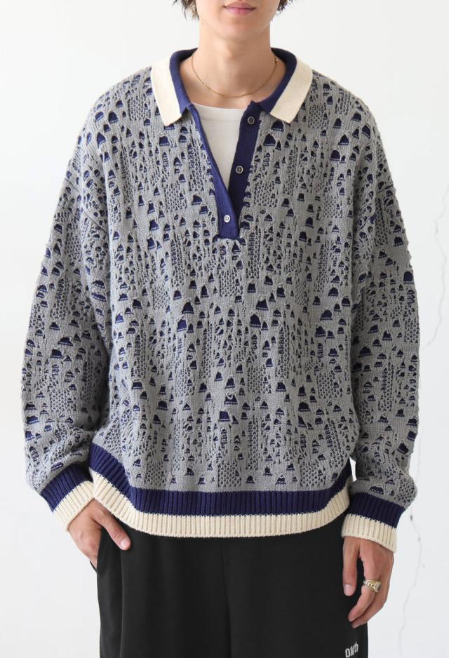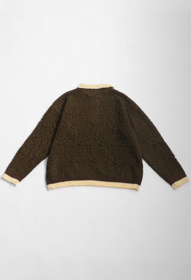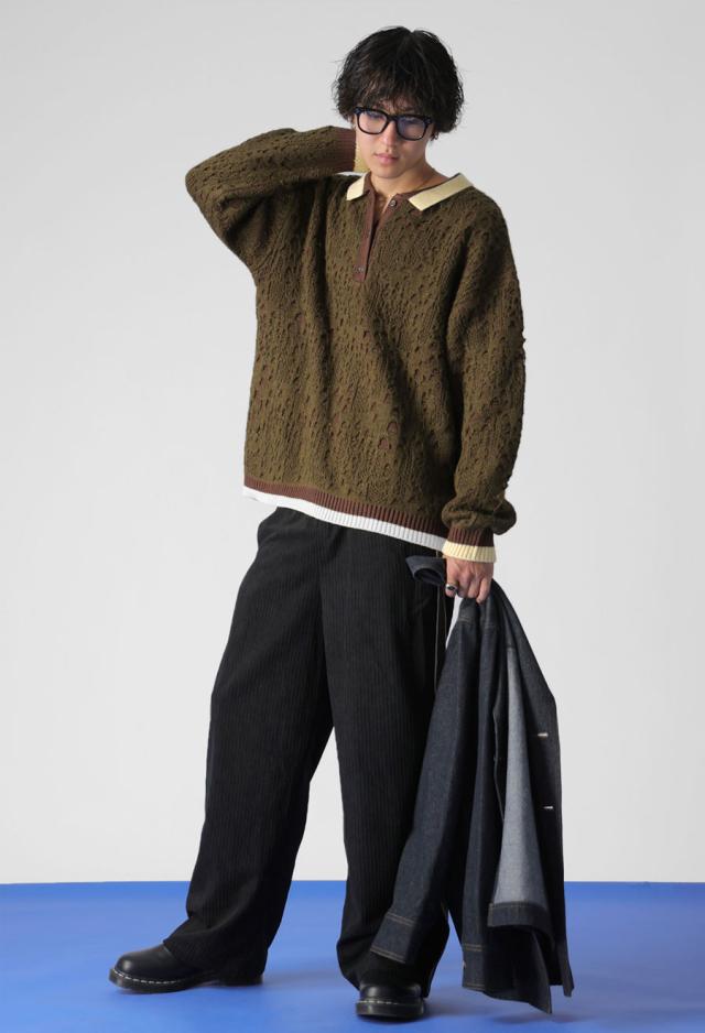 owt-0101z ポロニット トップス ポロシャツ ニット セーター ジャガードニット バイカラー 配色 ジャガード リブ ゆったり 透かし編み バイカラー レイヤード デザインニット