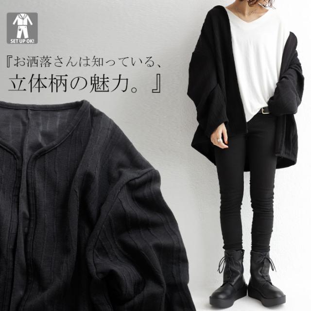 立体柄カーデ カーディガン レディース 長袖 送料無料・再入荷 メール便不可
