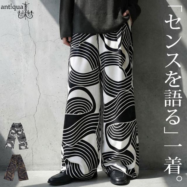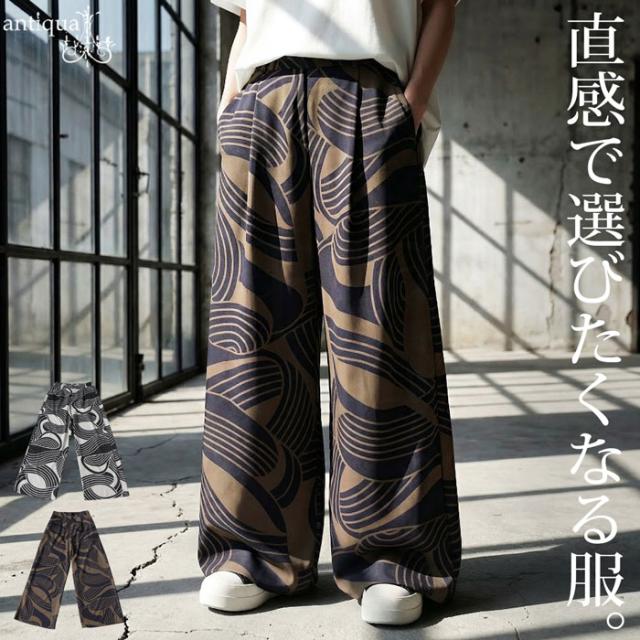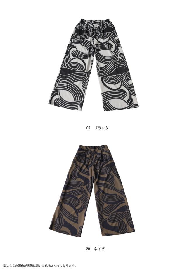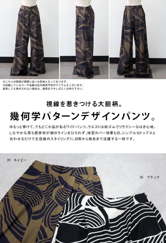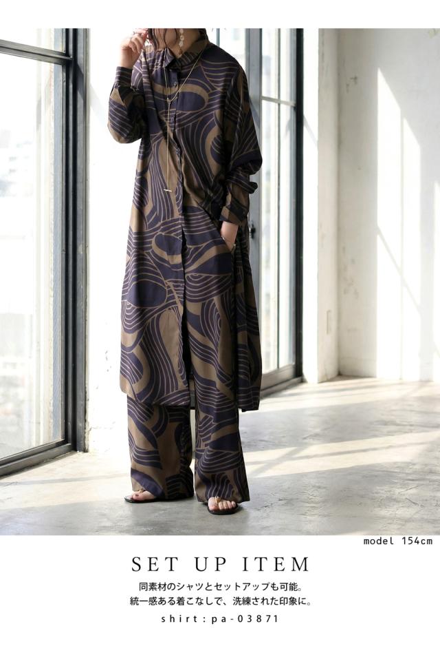 pa-03870 ボトムス パンツ ロングパンツ ワイド 幾何学 柄 総柄 柄パンツ セットアップ ゆったり 大きめサイズ 着痩せ 楽ちん 体型カバー 落ち感 シワになりにくい カジュアル