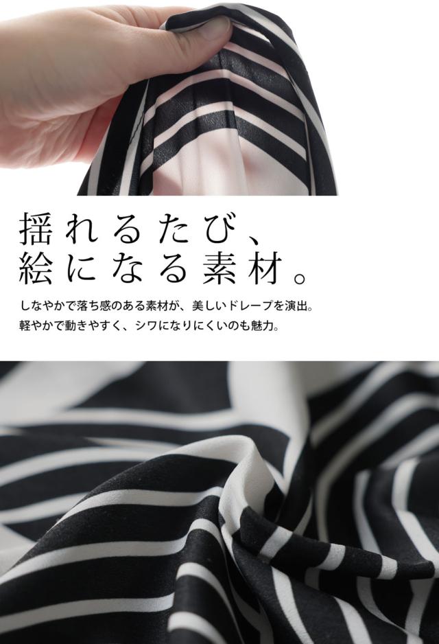落ち感のある柔らかな素材は、動くたびにドレープが美しく揺れ、軽やかな印象を演出します。