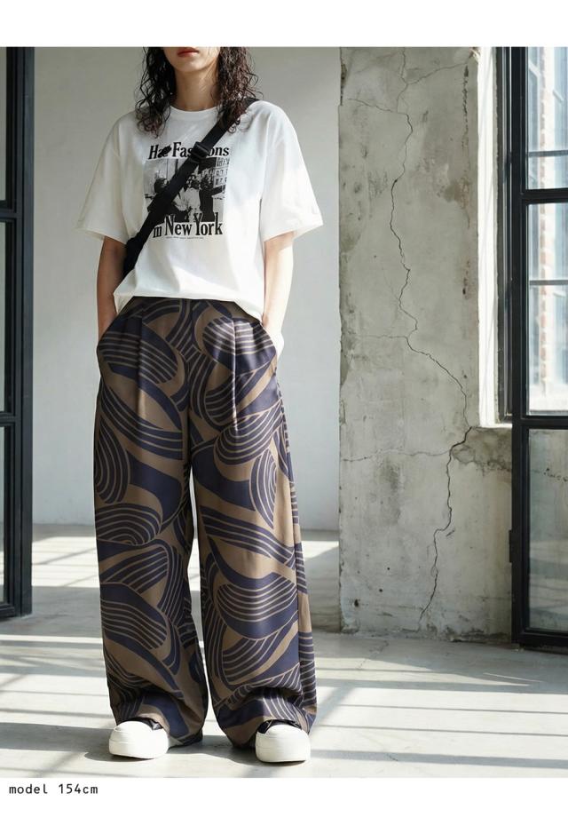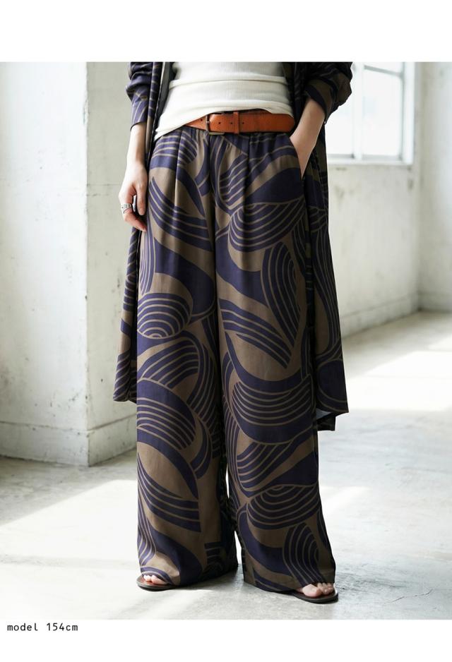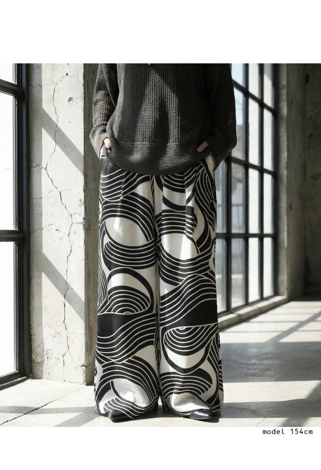 大胆な幾何学柄が視線を惹きつける、主役級のワイドパンツが登場しました。