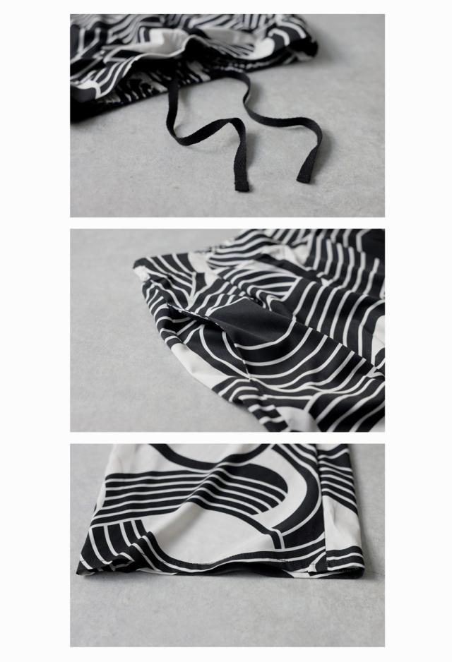 幾何学柄 ワイドパンツ レディース ロング ウエストゴム 送料無料・(50)メール便可 春新作