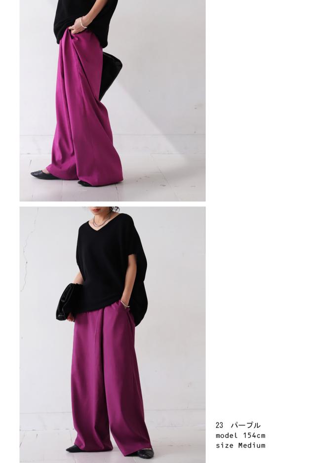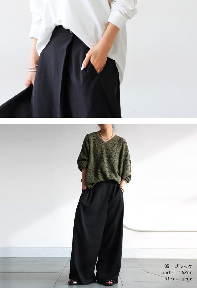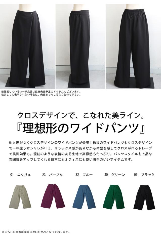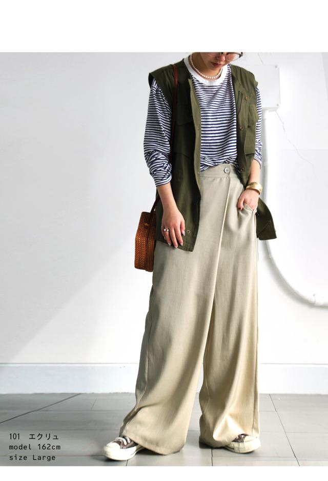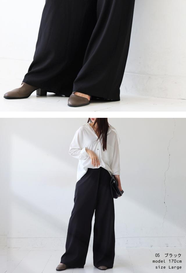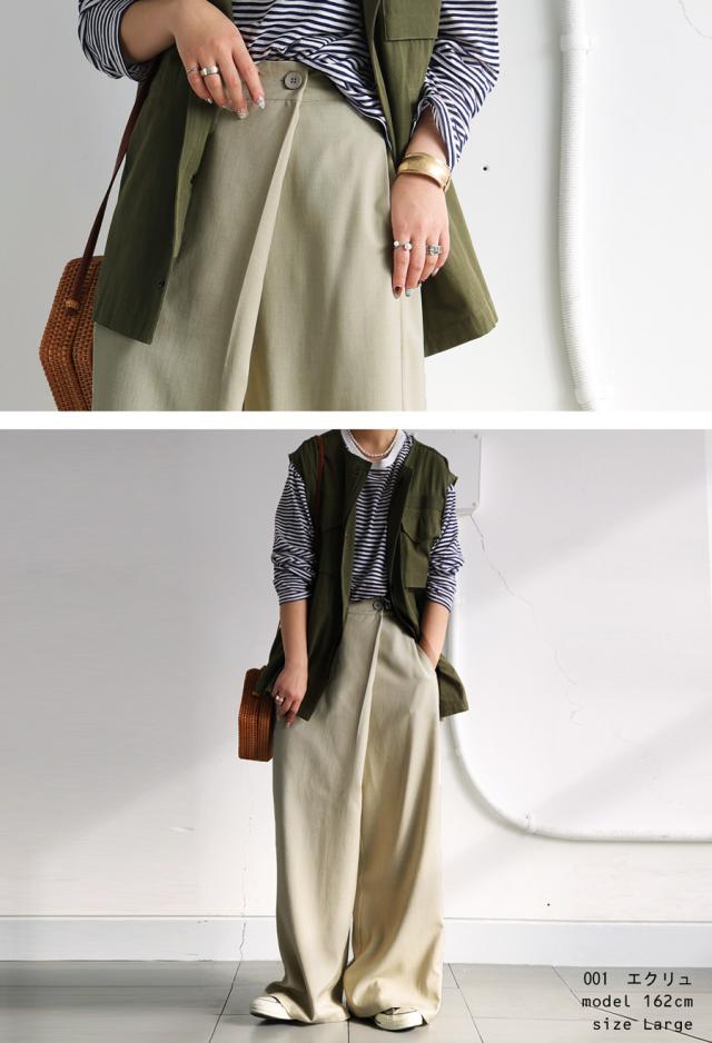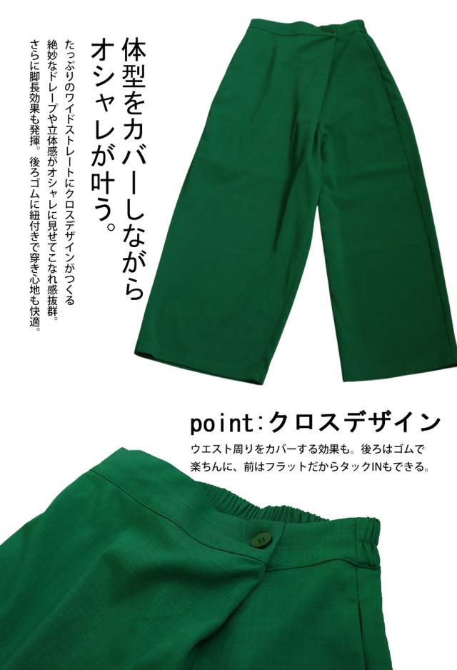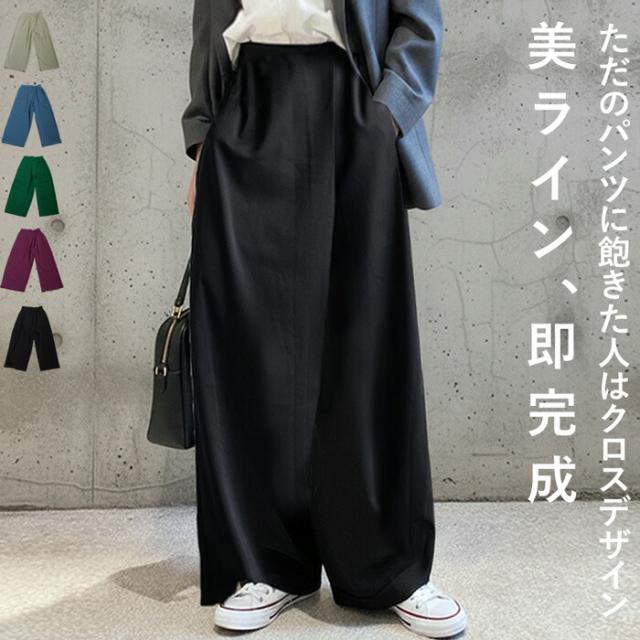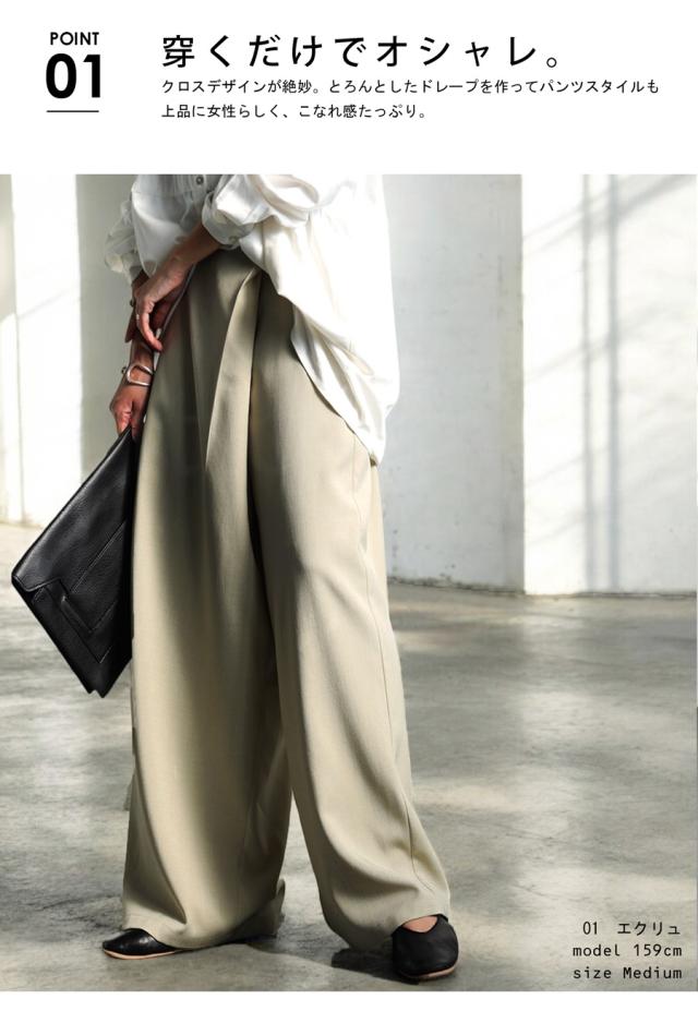 pk-01277 ロング クロスデザイン ワイドストレート ウエストゴム サイズ展開 Medium Large ポケット付き 裏地付き ゆったり シンプル きれいめ 上品 高級感 体型カバー