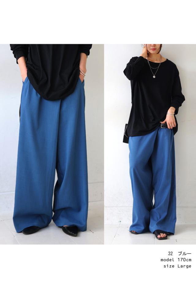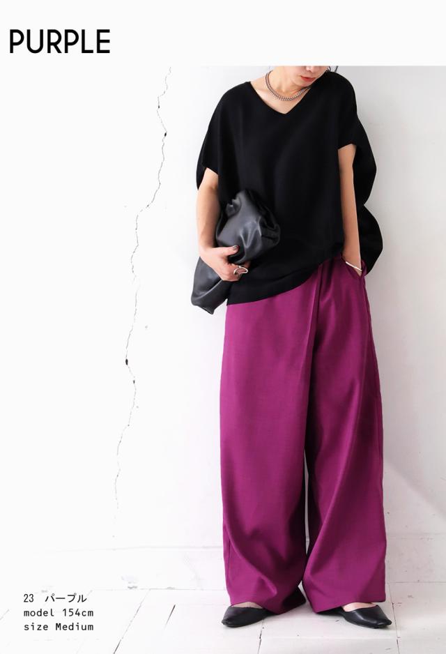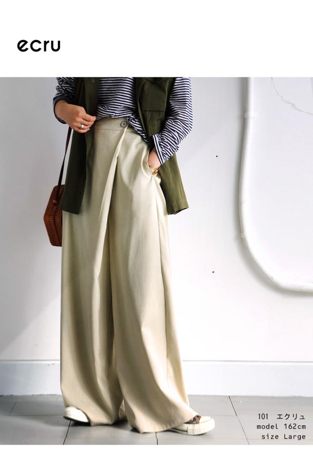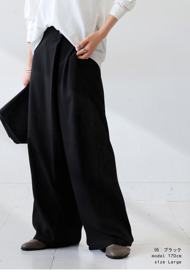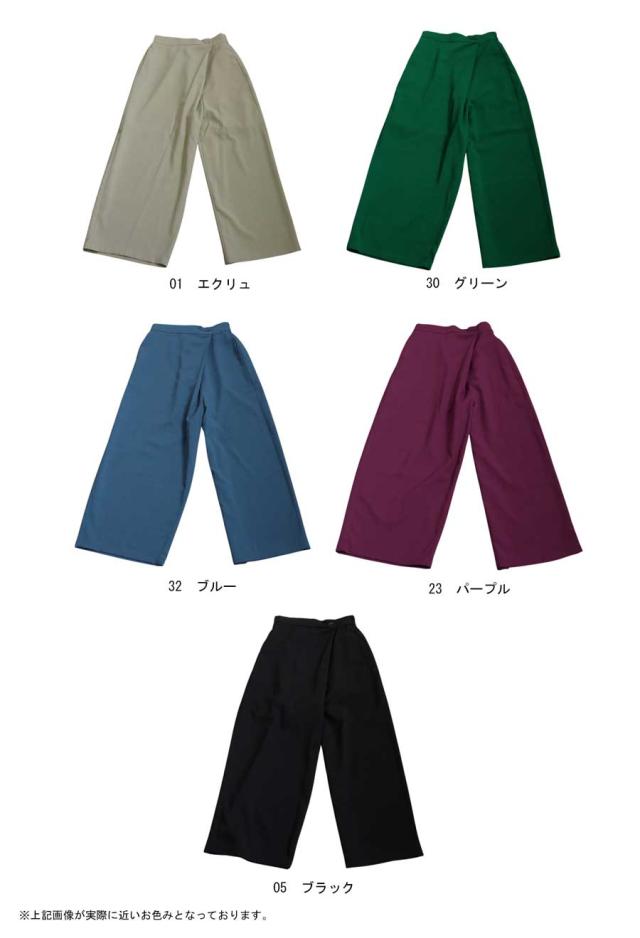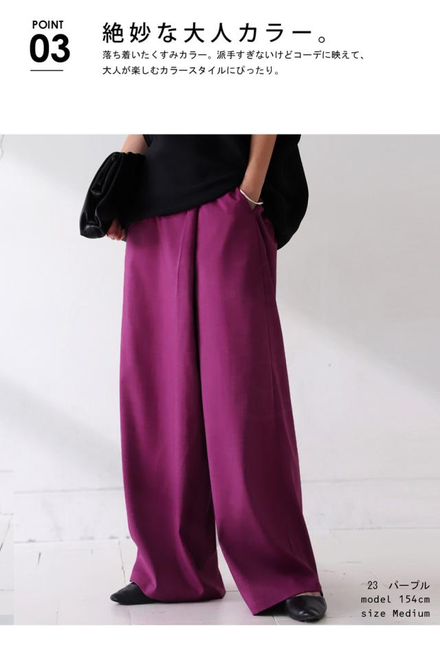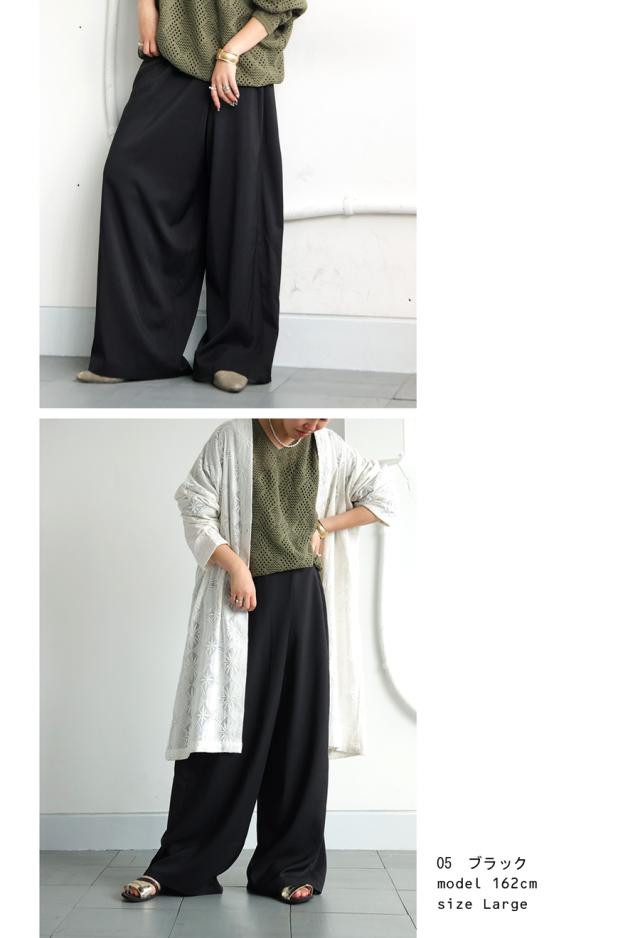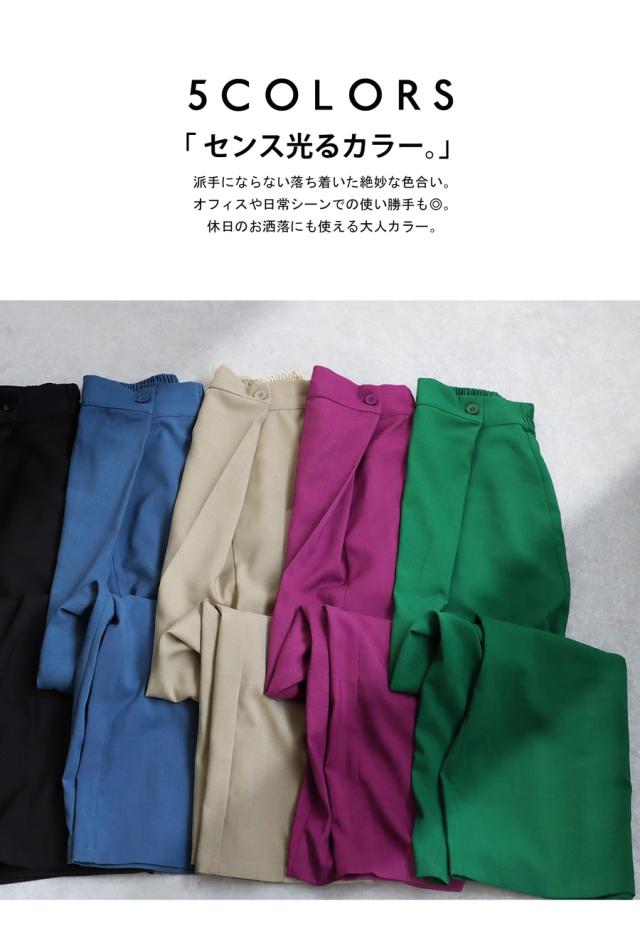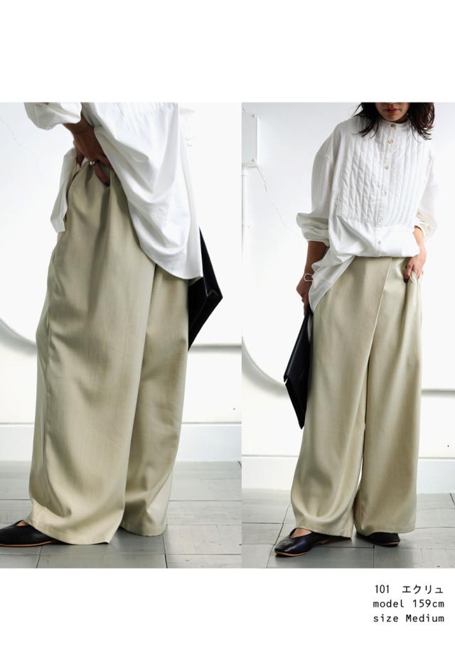 pk-01277 ロング クロスデザイン ワイドストレート ウエストゴム サイズ展開 Medium Large ポケット付き 裏地付き ゆったり シンプル きれいめ 上品 高級感 体型カバー