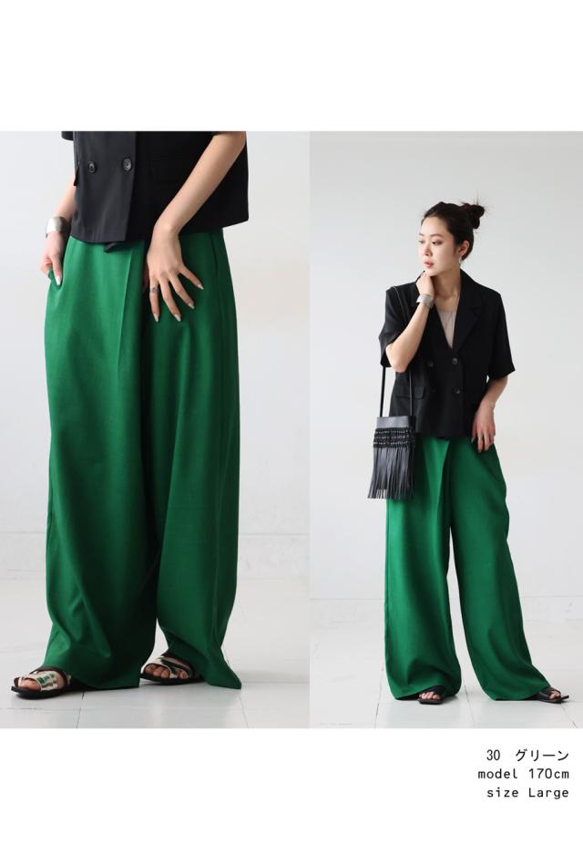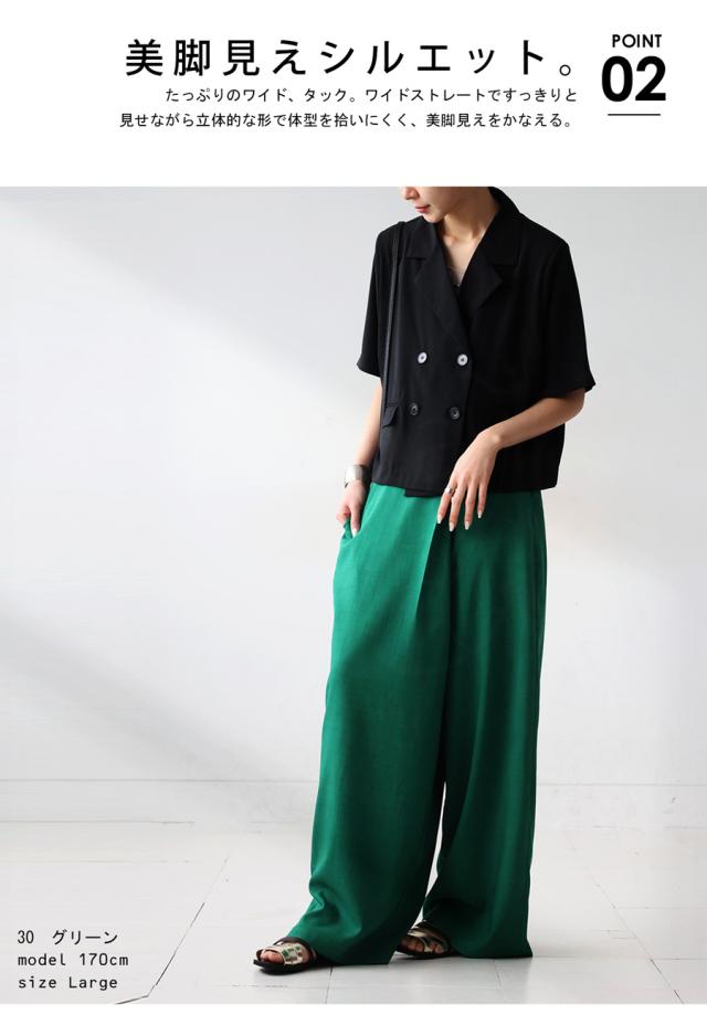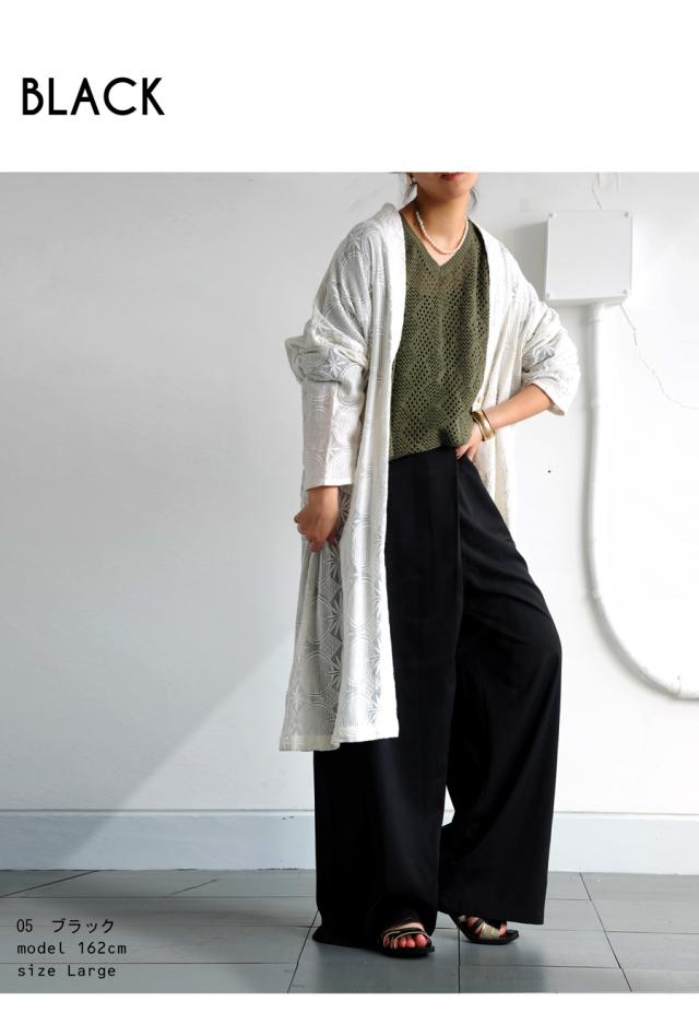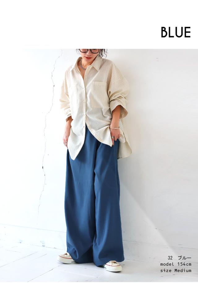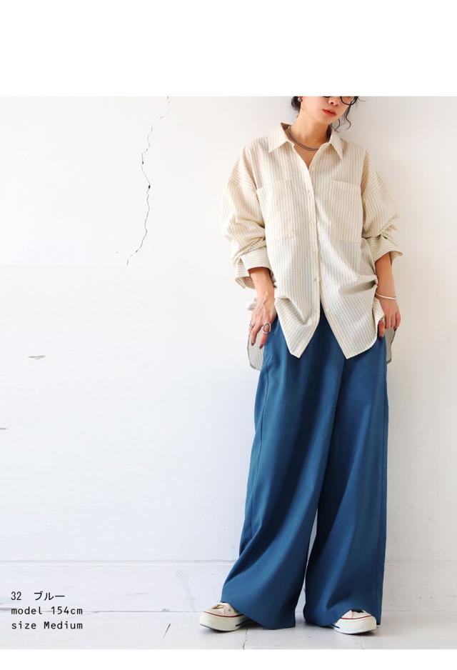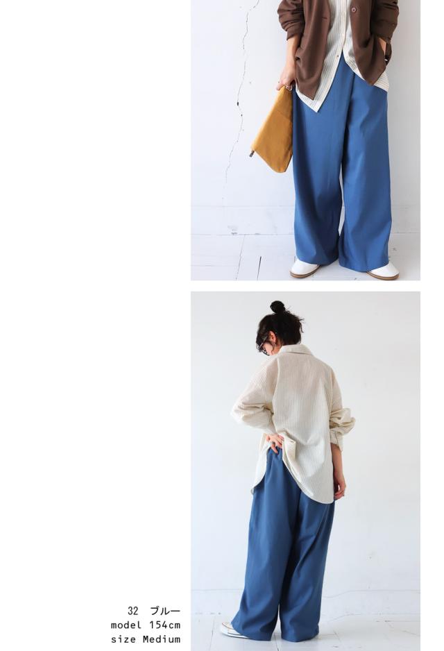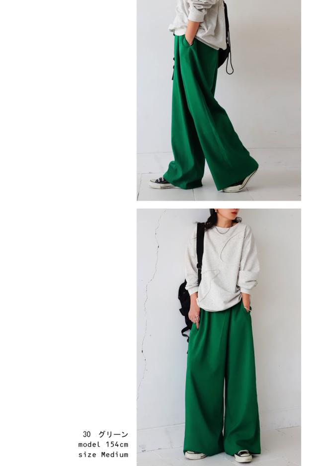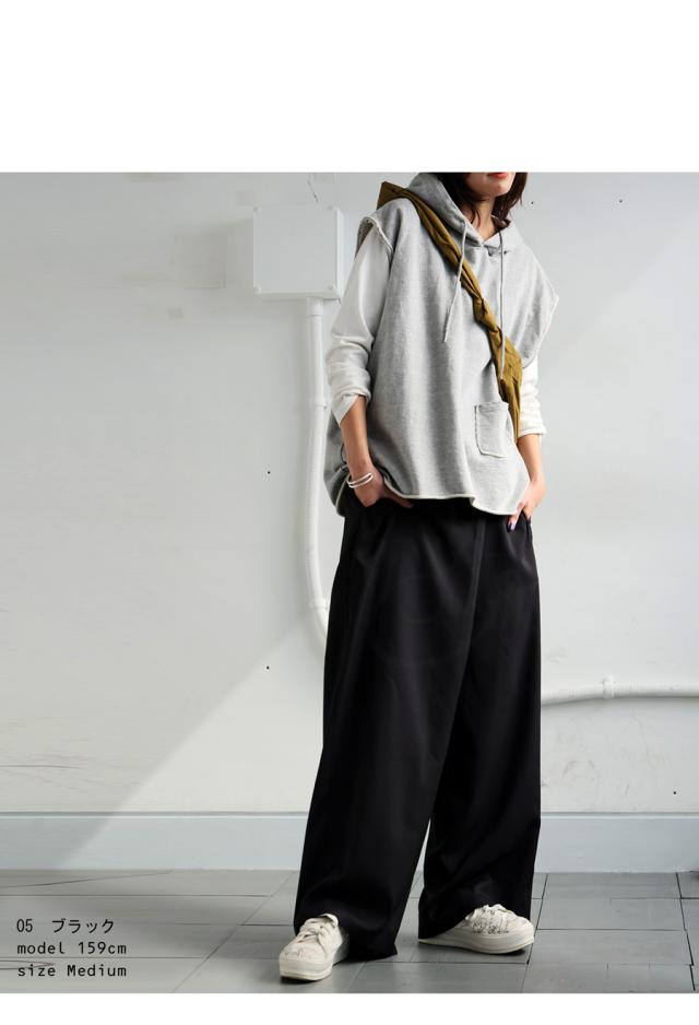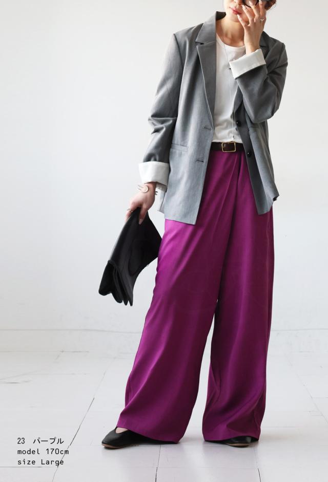 pk-01277 ロング クロスデザイン ワイドストレート ウエストゴム サイズ展開 Medium Large ポケット付き 裏地付き ゆったり シンプル きれいめ 上品 高級感 体型カバー