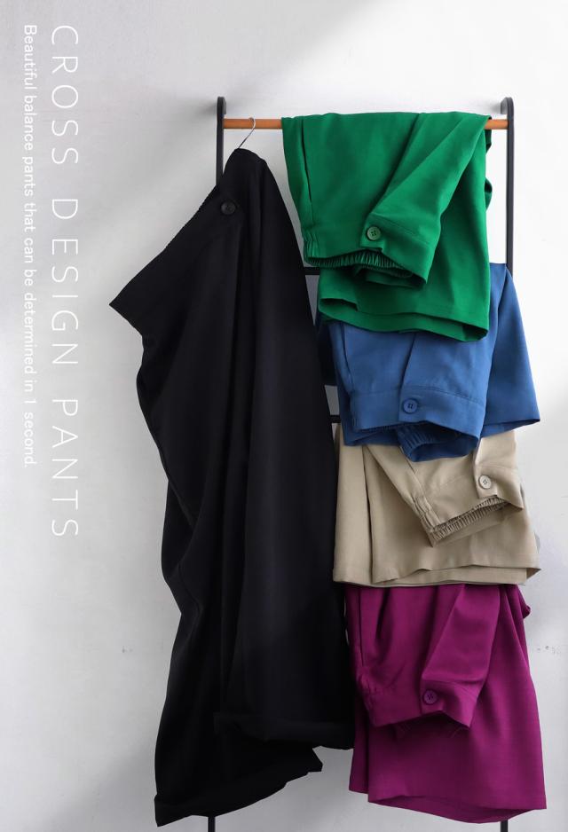 いつもと一味違うお洒落が叶うクロスデザインパンツ。