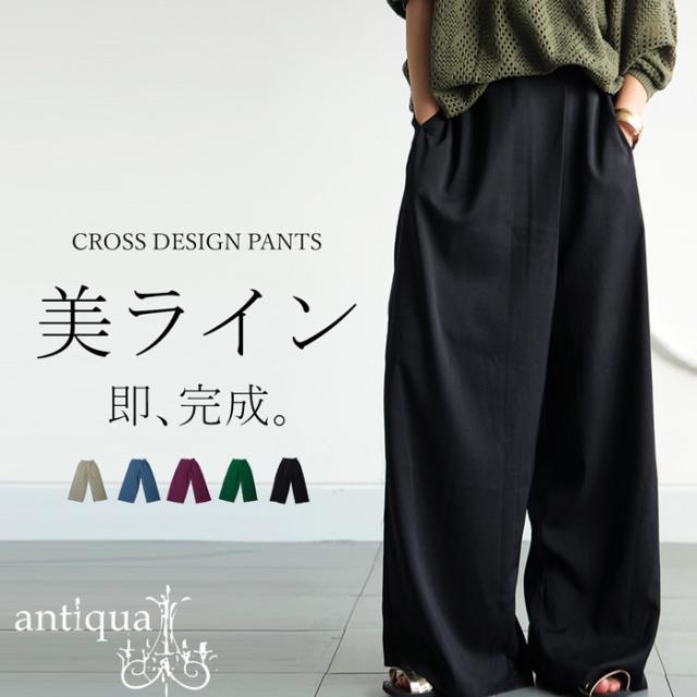 【検索ワード】クロスデザインパンツ パンツ レディース ボトムス ロング クロスデザイン ワイドストレート ウエストゴム サイズ展開 Medium Large ポケット付き ゆったり シンプル きれいめ 上品 高級感 体型カバー 細見え 着痩せ 大きめ 大きいサイズ antiqua アンティカ 大人 おしゃれ 10代 20代 30代 40代 50代 60代 春 夏 秋 冬 オールシーズン お洒落 カジュアル かわいい かっこいい あんてぃか