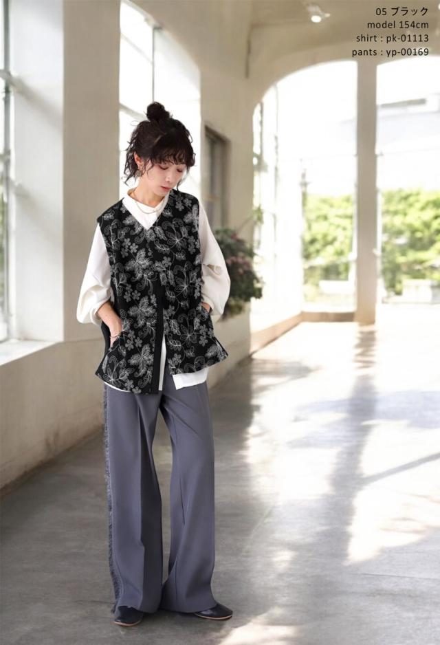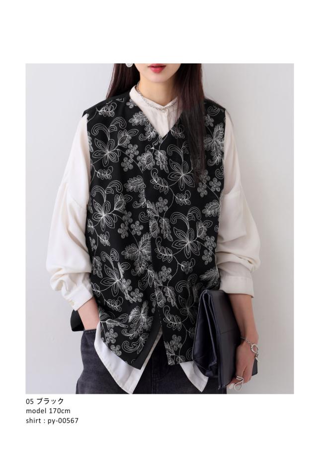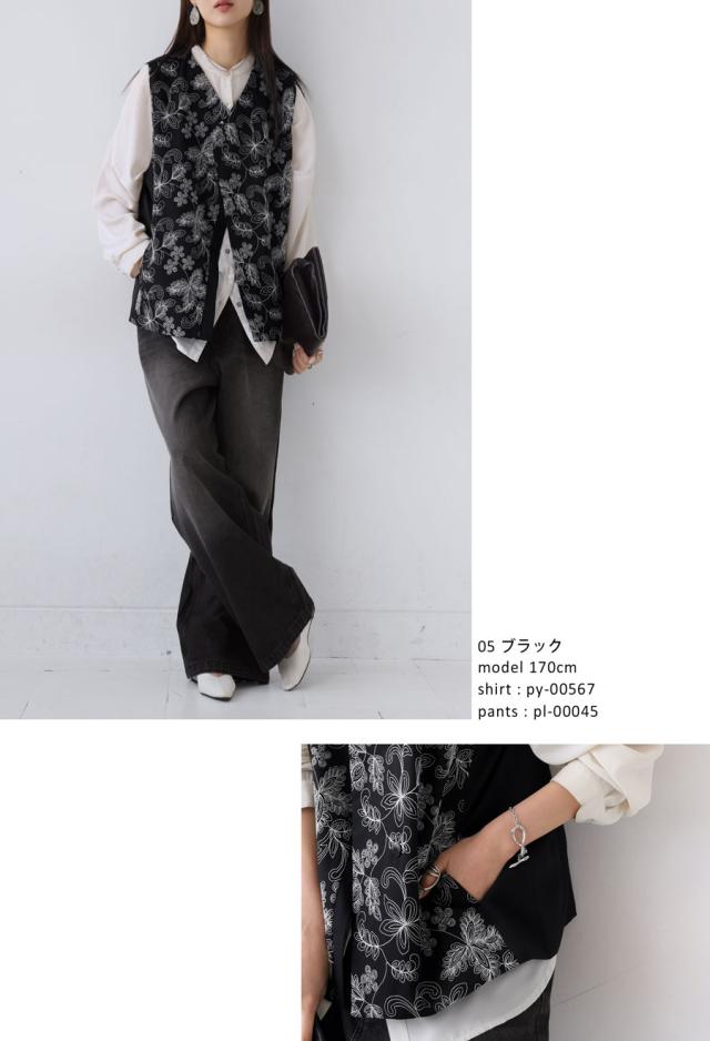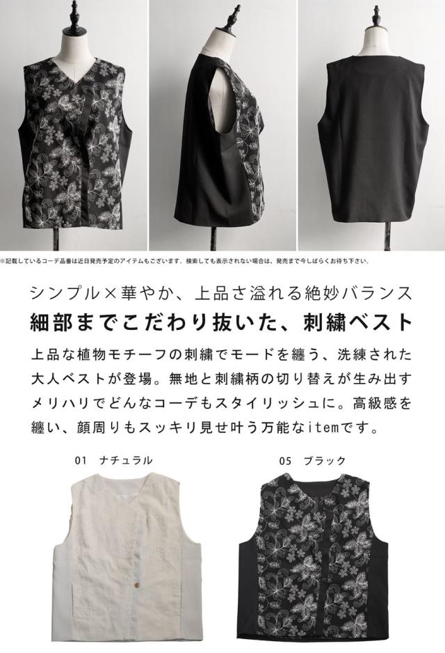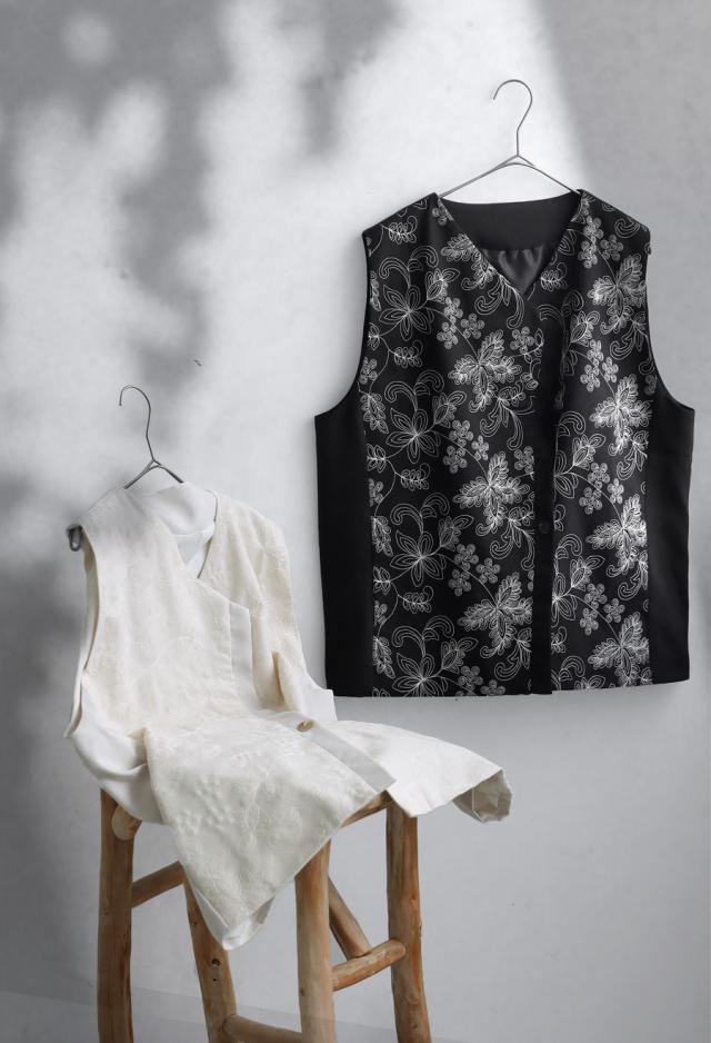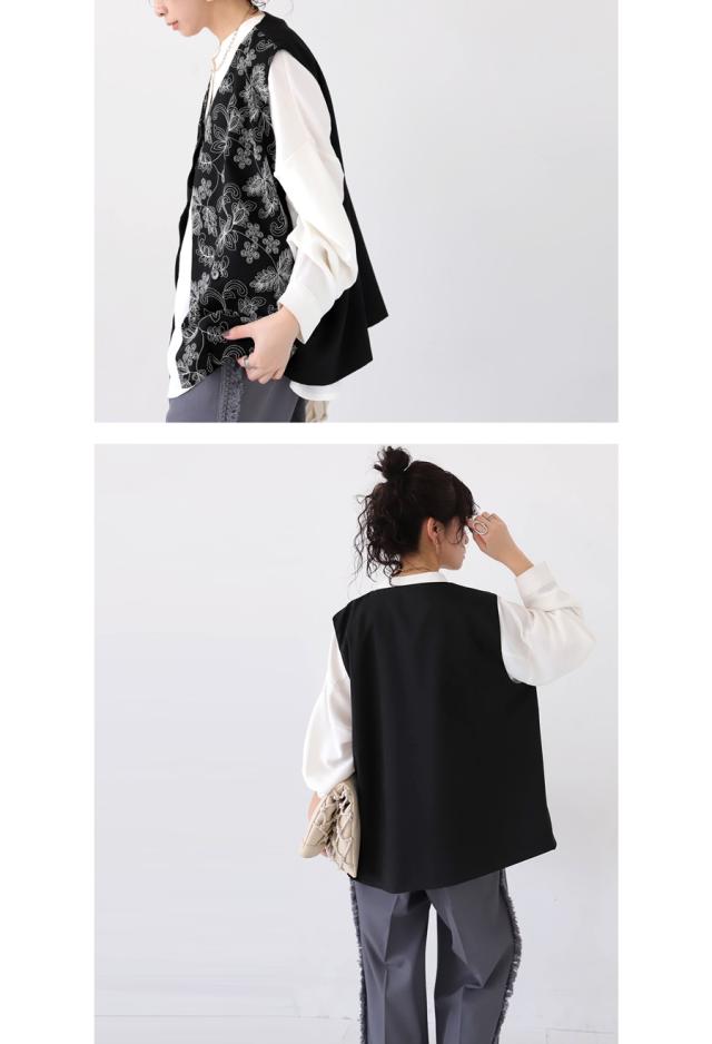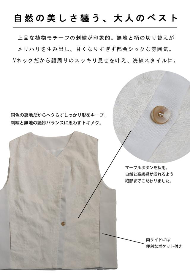 植物モチーフの刺繍でモードを纏う、洗練された大人ベスト。