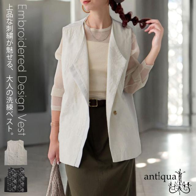 【検索ワード】刺繍ベスト ベスト レディース トップス ノースリーブ 刺繍 柄 ボタニカル 花 無地 切り替え Vネック 前開き マーブルボタン レイヤード 重ね着 ポケット付き 裏地付き ゆったり 綿 コットン 麻 シンプル レトロ モード 体型カバー 細見え 着痩せ 大きめ 大きいサイズ antiqua アンティカ 大人 おしゃれ 10代 20代 30代 40代 50代 60代 春 夏 秋 冬 オールシーズン お洒落 カジュアル かわいい かっこいい あんてぃか
