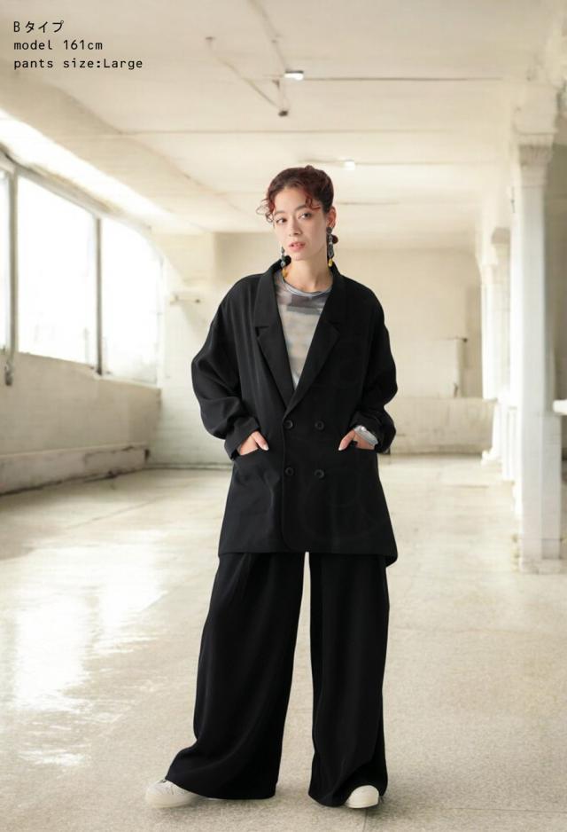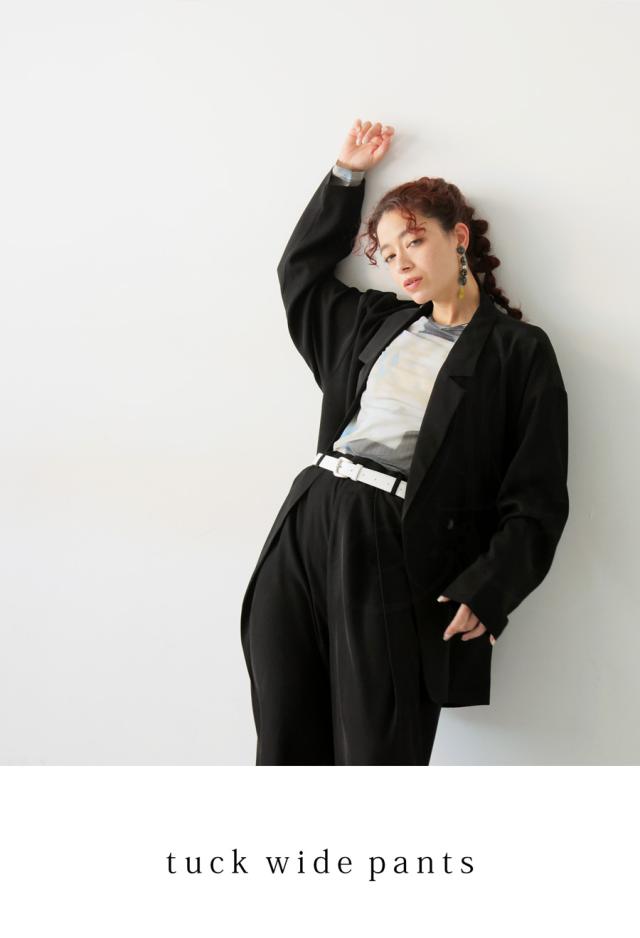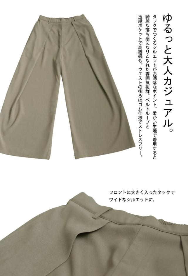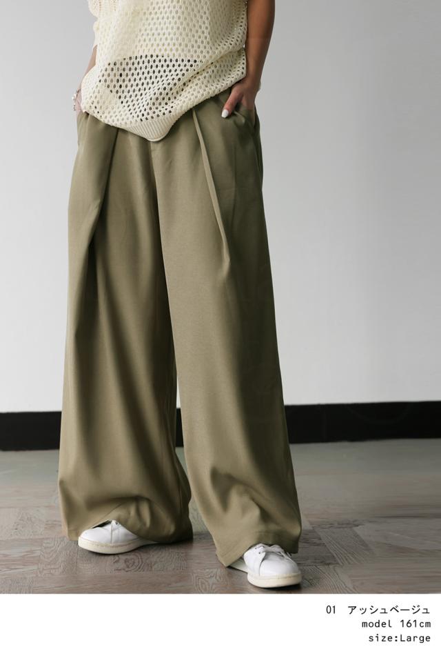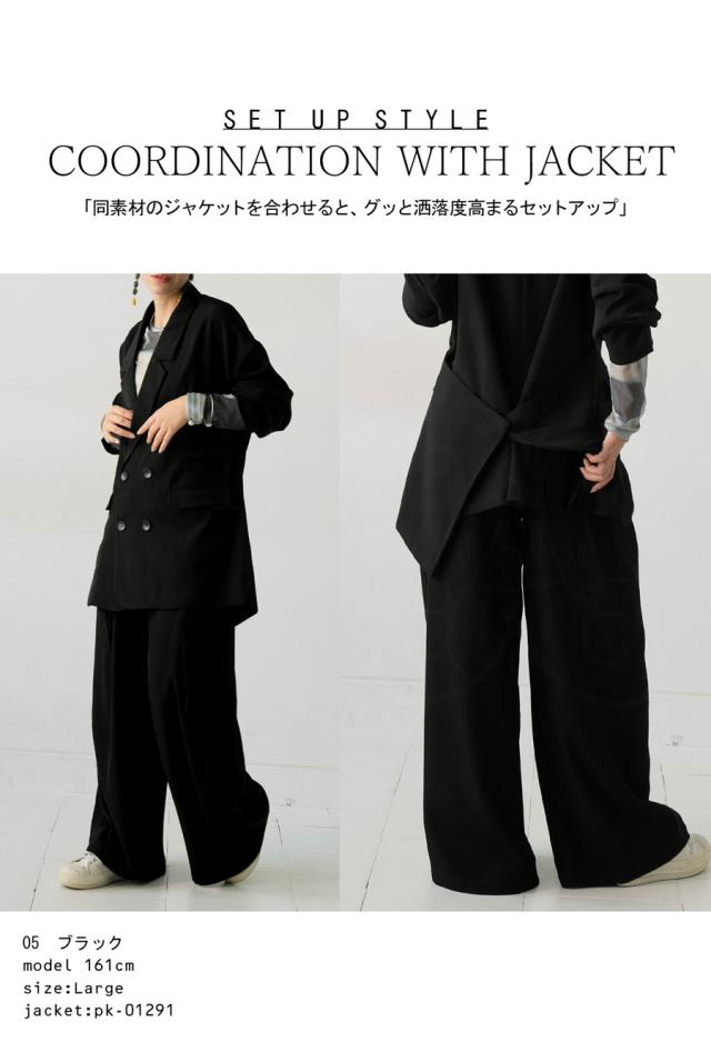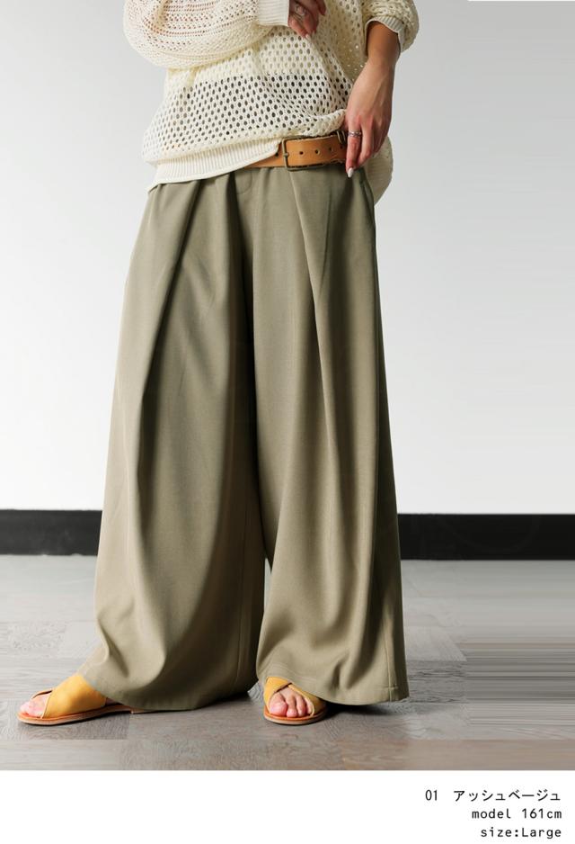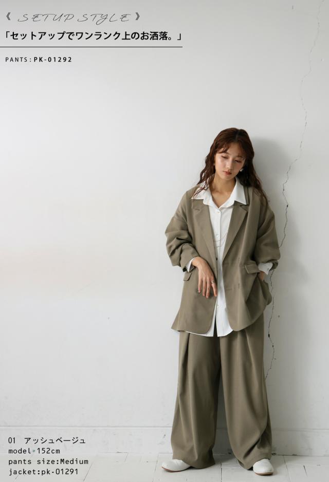 pk-01292 セットアップ ワイドパンツ タック ロング ポケット付き ベルトループ 美シルエット ワイドストレート サイズ展開 Medium Large ゆったり シンプル きれいめ