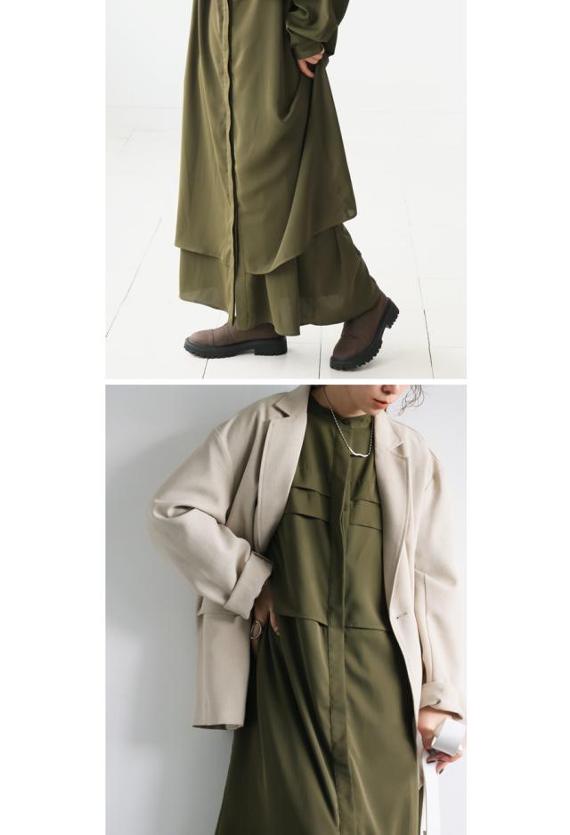 長袖仕様で着用シーズンも幅広く、ロング丈が体型カバーにも一役。