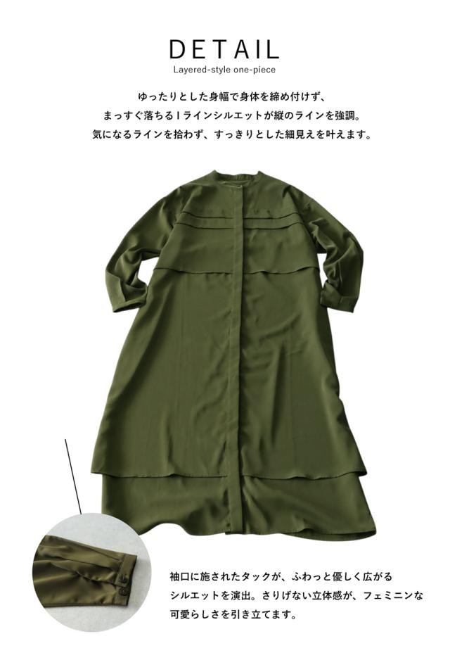 まるでレイヤードしているかのようなユニークなデザインが魅力のワンピースです。
