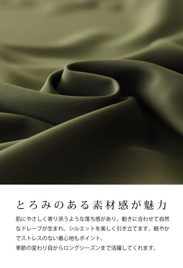 とろみのある素材が動きに合わせて自然なドレープを生み出し、美しい落ち感を演出します。