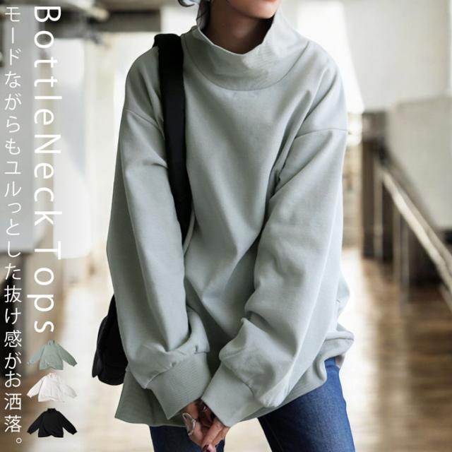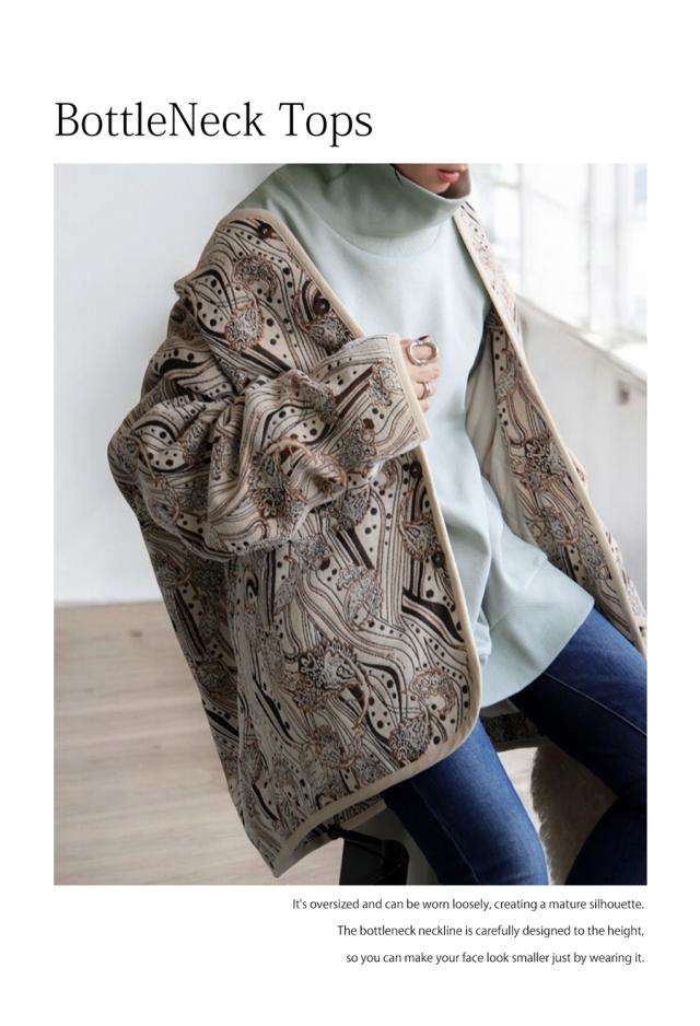 こなれ感たっぷりなシルエットを演出してくれるボトルネックトップス。