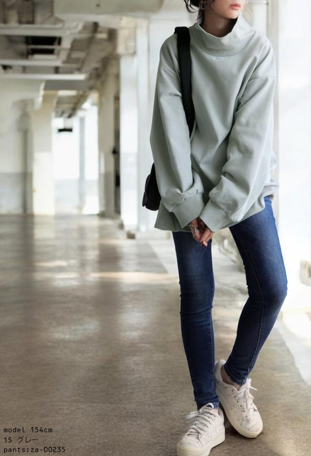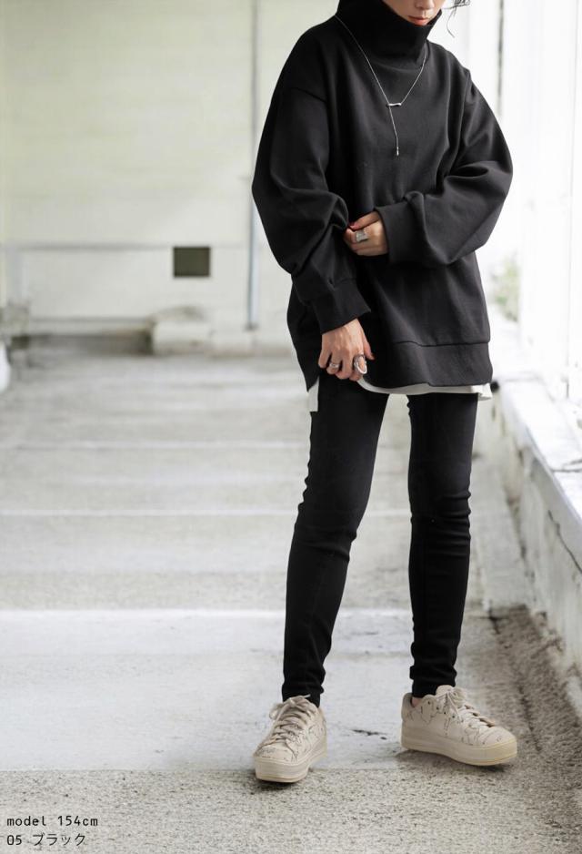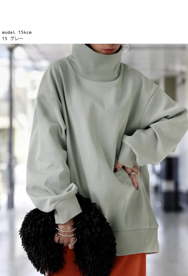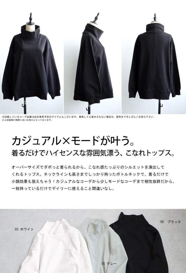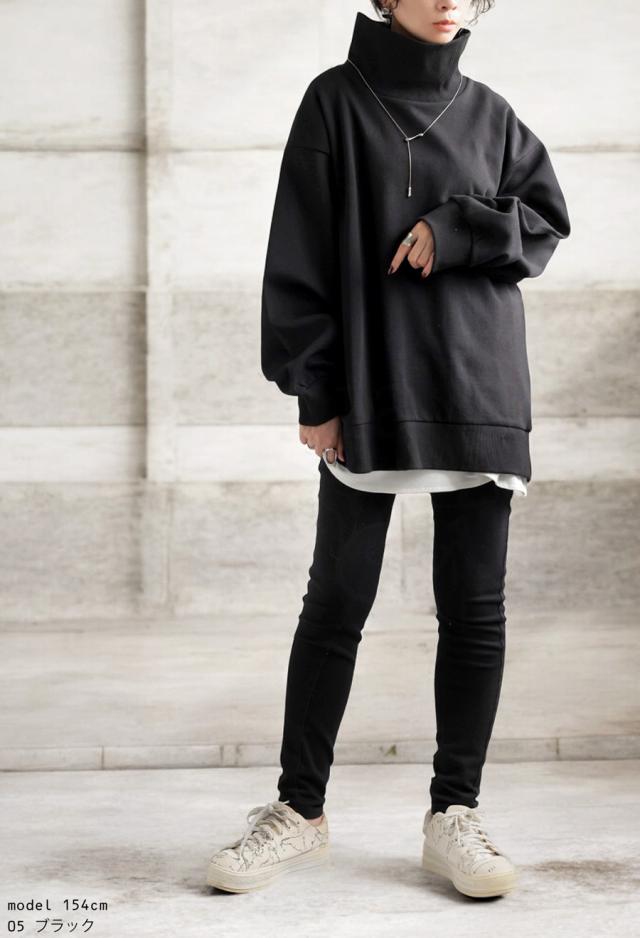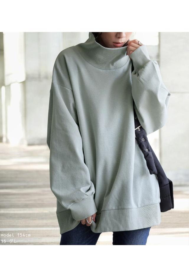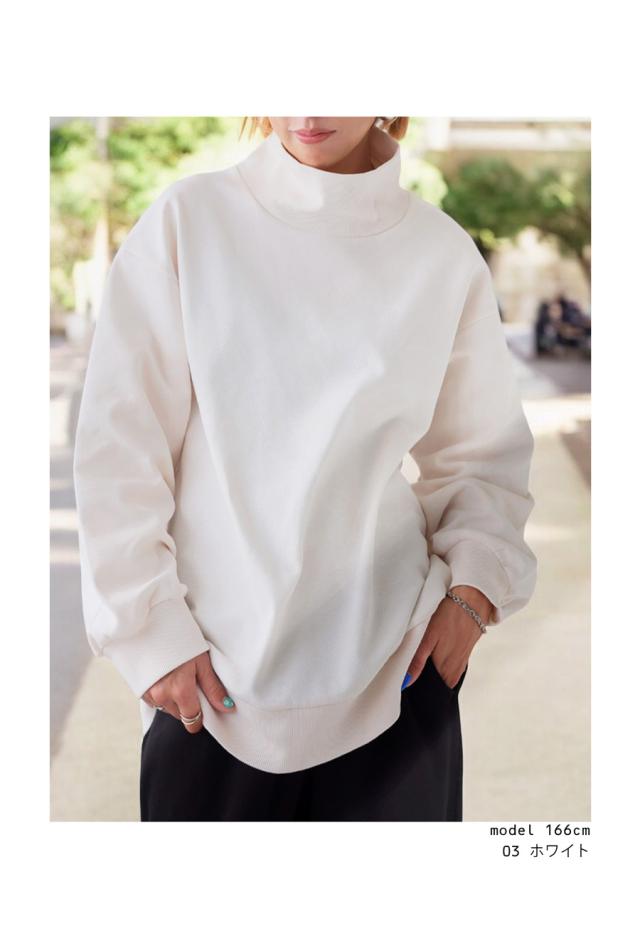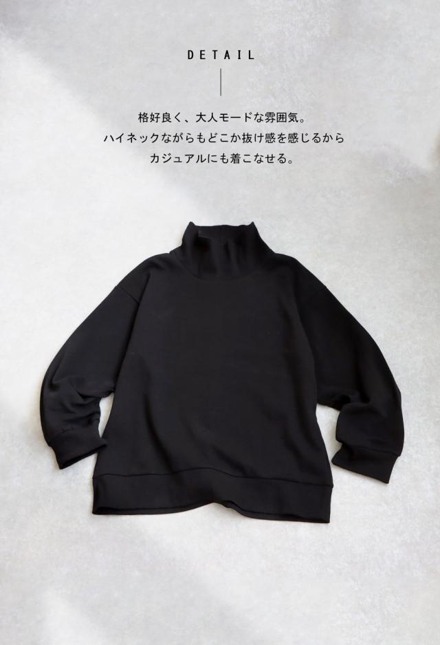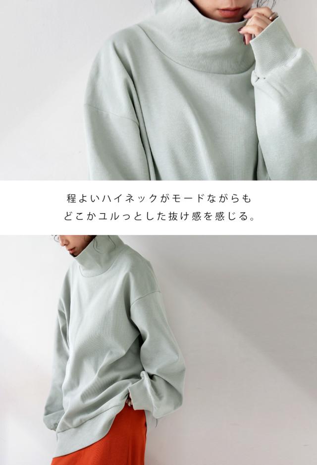 pn-00517 無地 ハイネック ゆったり プルオーバー シンプル 綿混 ワイド ワイドトップス ネックデザイン 立体 ハイセンス 細見え 着痩せ 体型カバー 大きめ 大きいサイズ