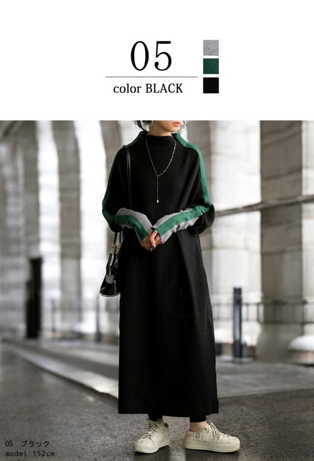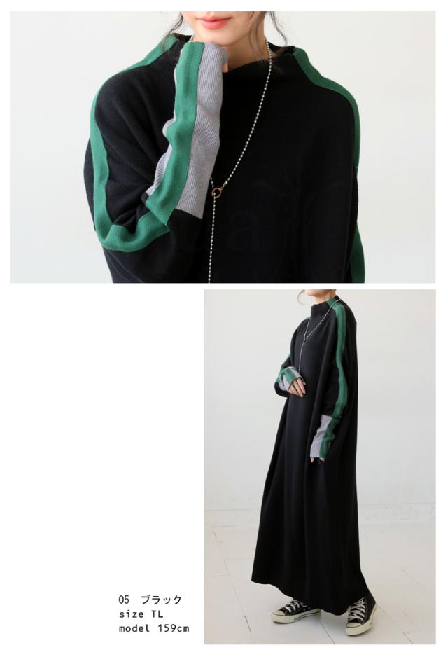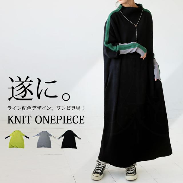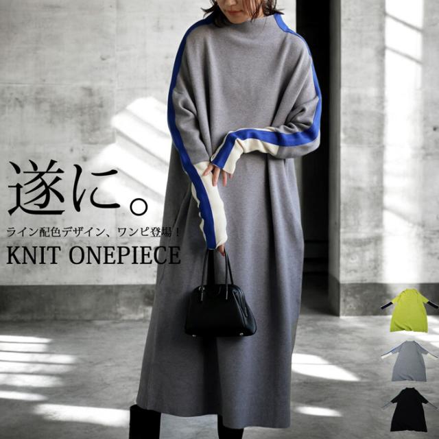 配色ニットワンピース ワンピース レディース ロング 送料無料・再入荷 メール便不可