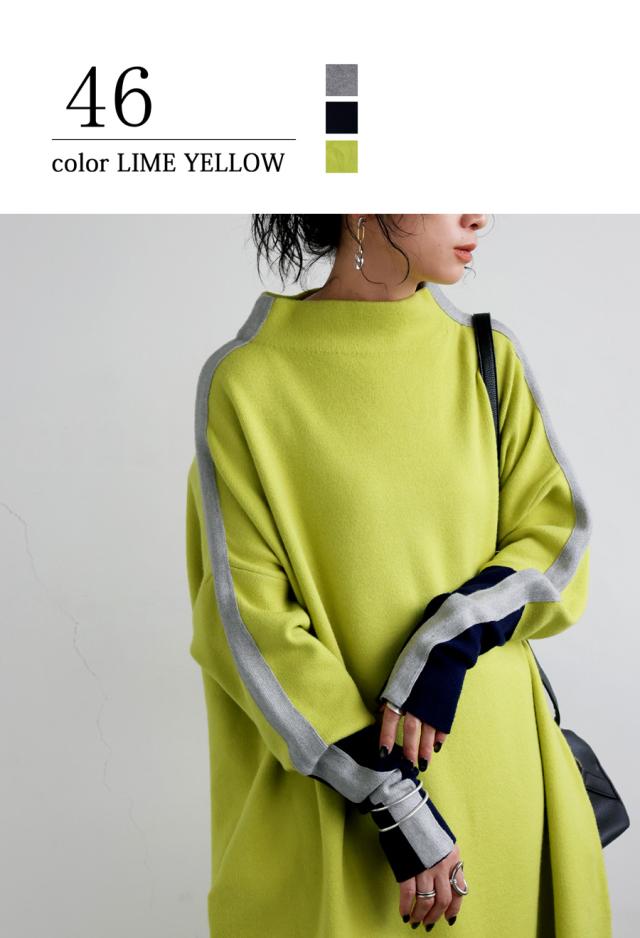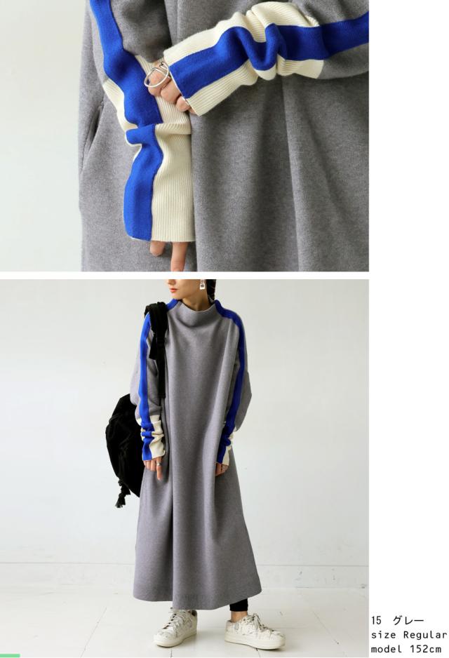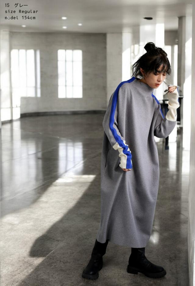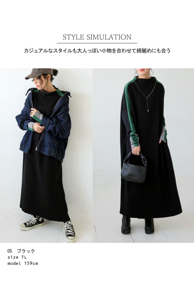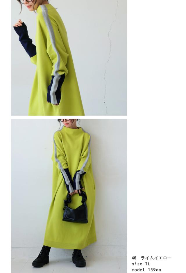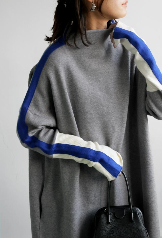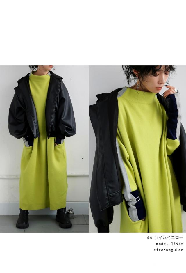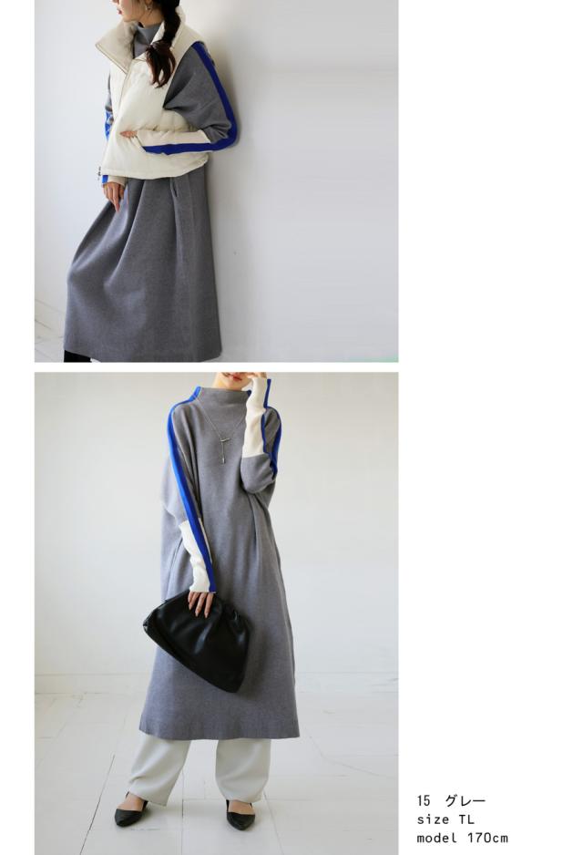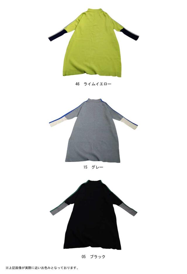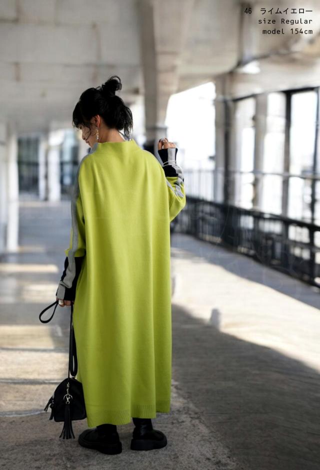 pn-00533 長袖 ライン配色 ゆったり ボトルネック ハイネック マシュマロタッチ ニット ニットワンピ ニットワンピース きれいめ プルオーバー シンプル 高級感 ダブルジャガード