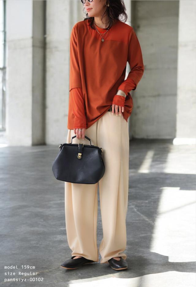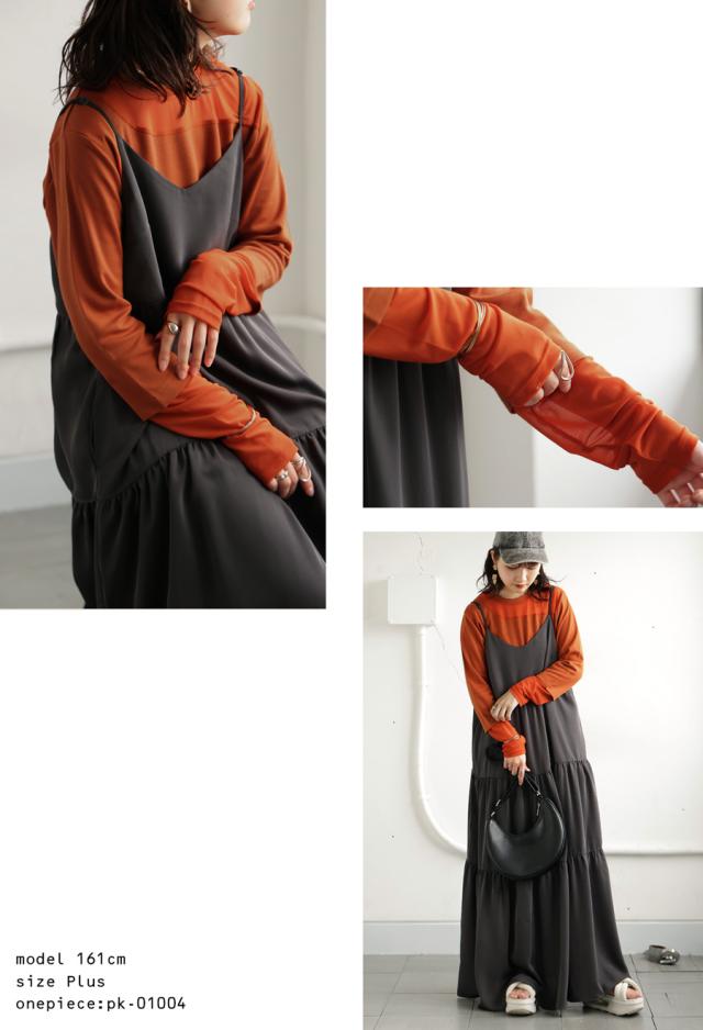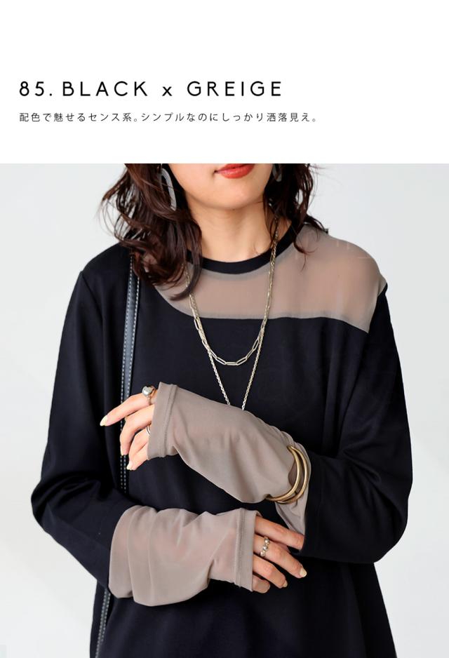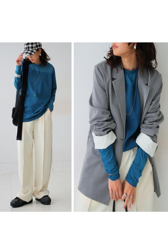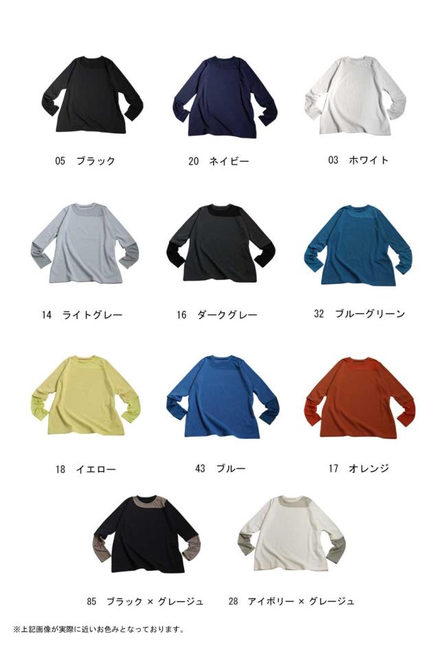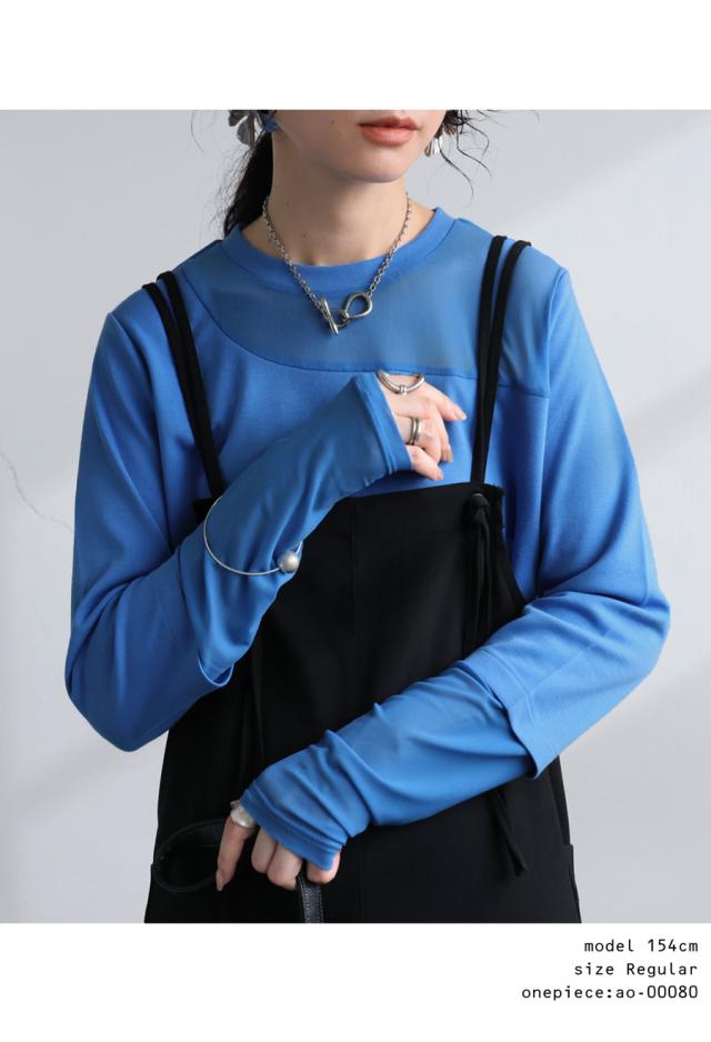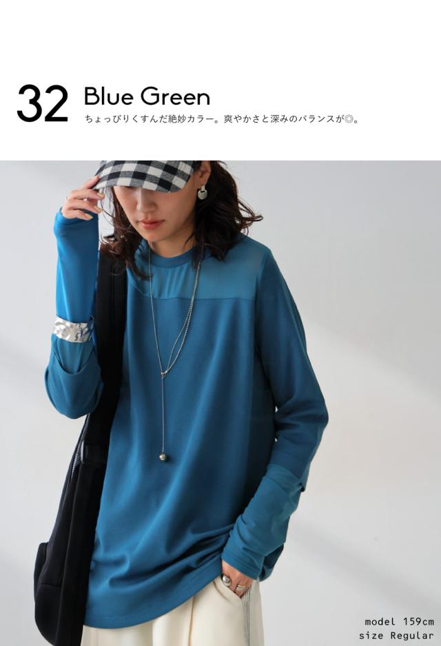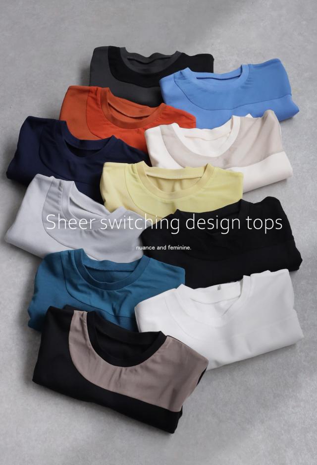 pn-00545 切り替え 異素材 ドッキング シアー 綿 コットン 丸首 クルーネック シンプル 着回し アレンジ デイリー使い レイヤード 抜け感 透け感 肌見せ ヘルシー オーバーサイズ
