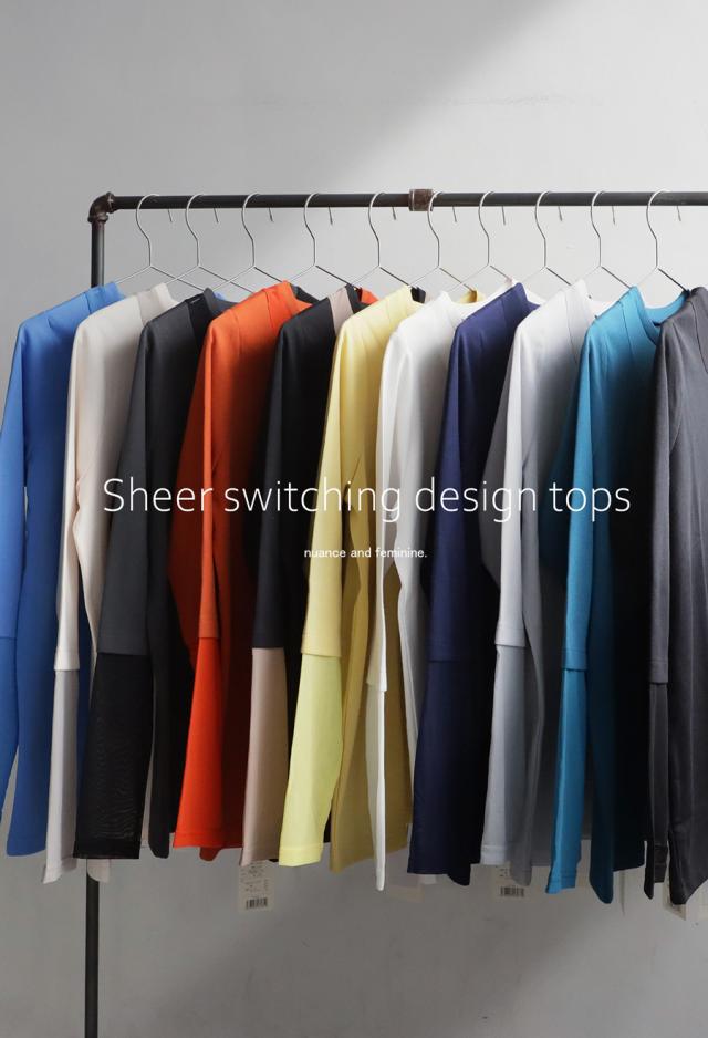 特別送料無料 シアー切り替えトップス ロンT レディース 長袖・再入荷 (100)メール便可