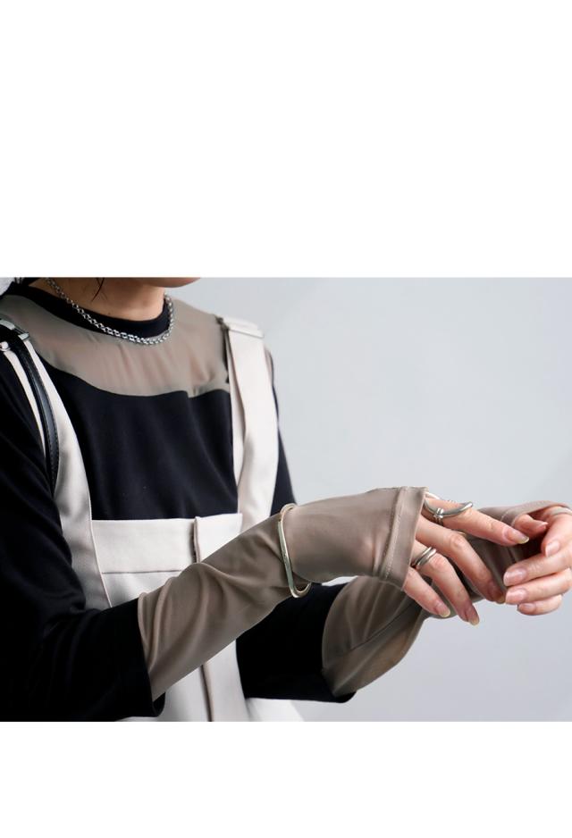 袖と片方のフロントの肩回りがシアーになったデザイントップス。