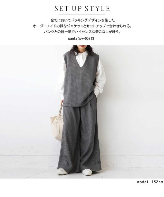 py-00714 セットアップ きれいめ 高級感 上品 ノースリーブ 重ね着 レイヤード 前後差 スリット レーヨン混 総柄 チェック 大きめ 大きいサイズ 着痩せ 体型カバー 細見え 通勤